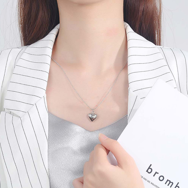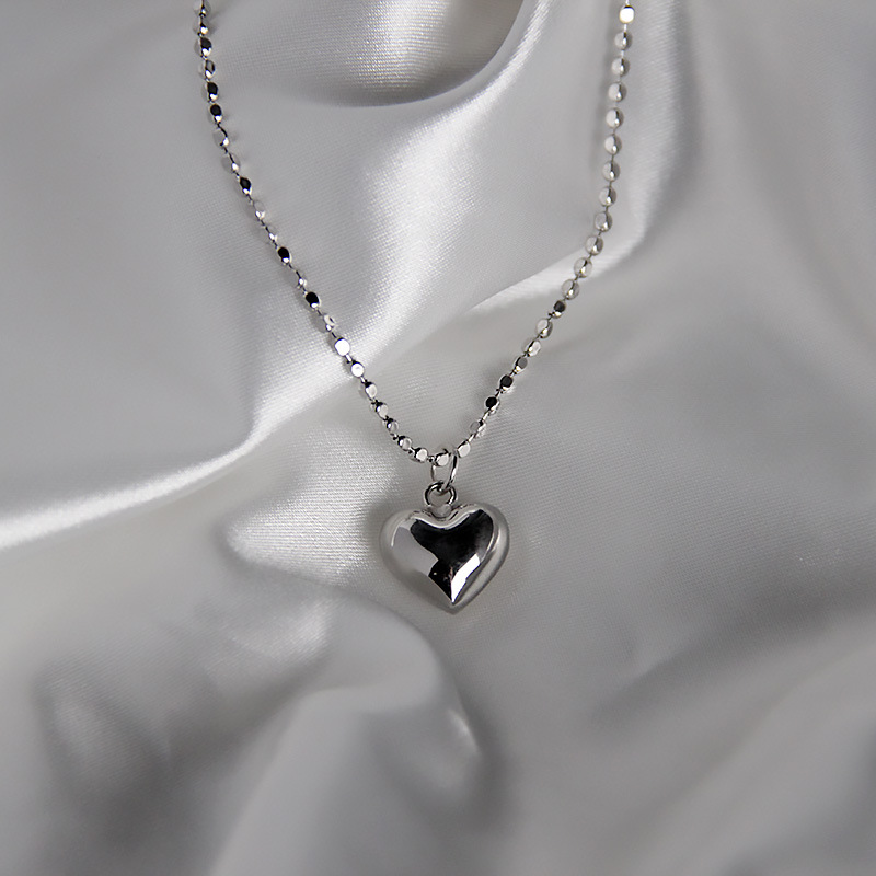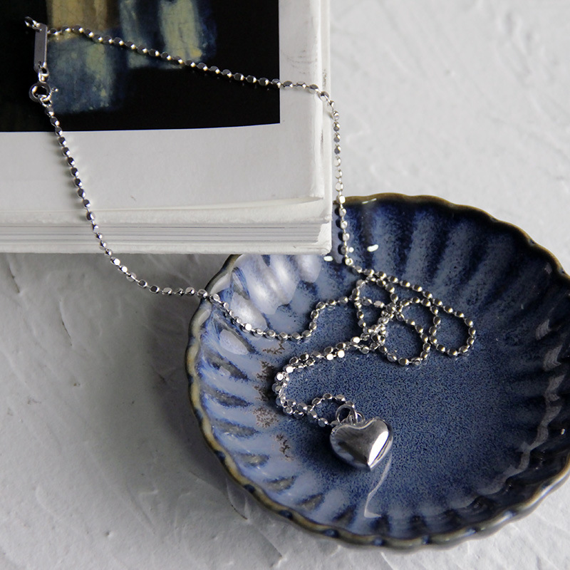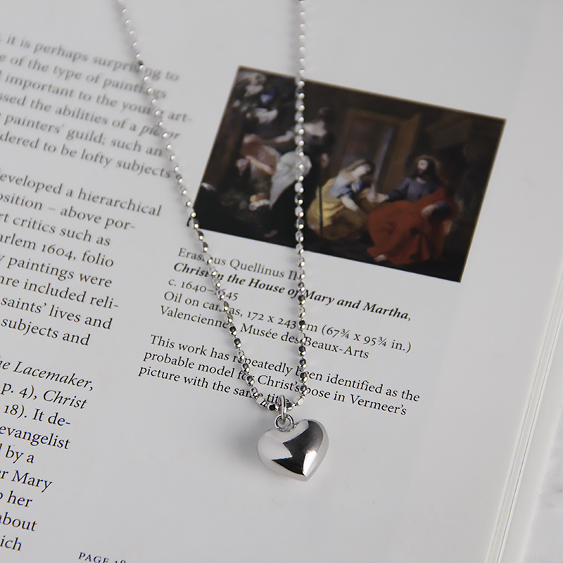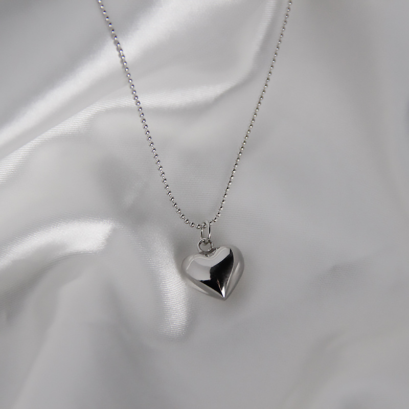 S925純銀輕奢簡約優雅立體愛心吊墜手工圓珠鍊項鍊鎖骨鍊