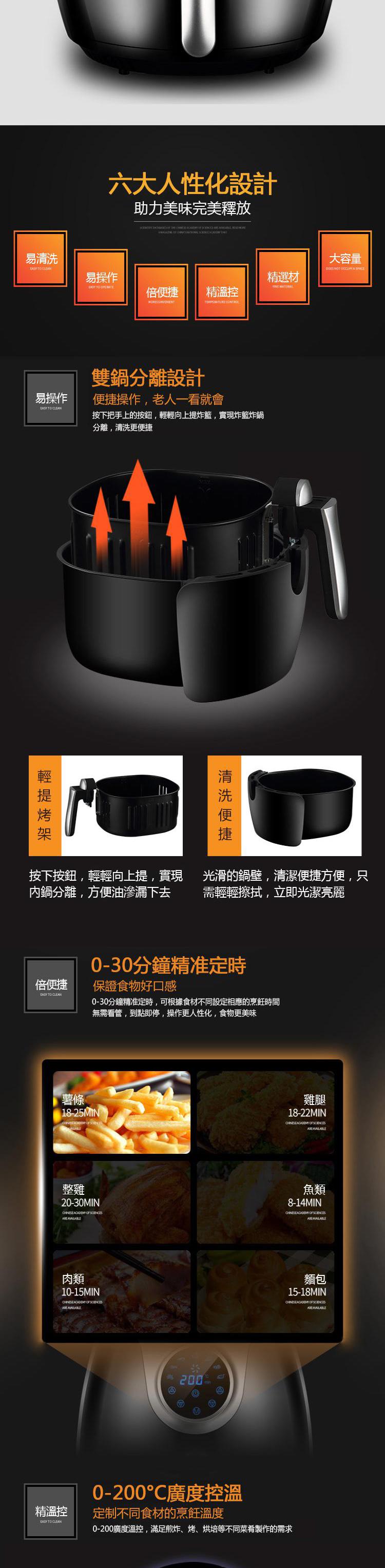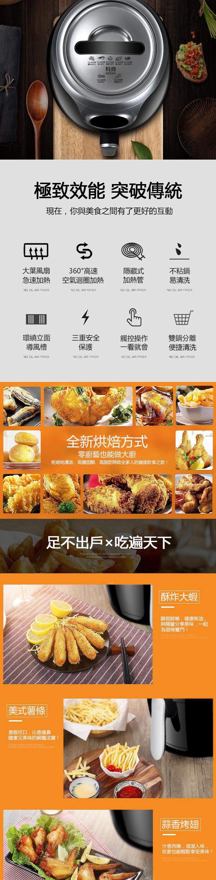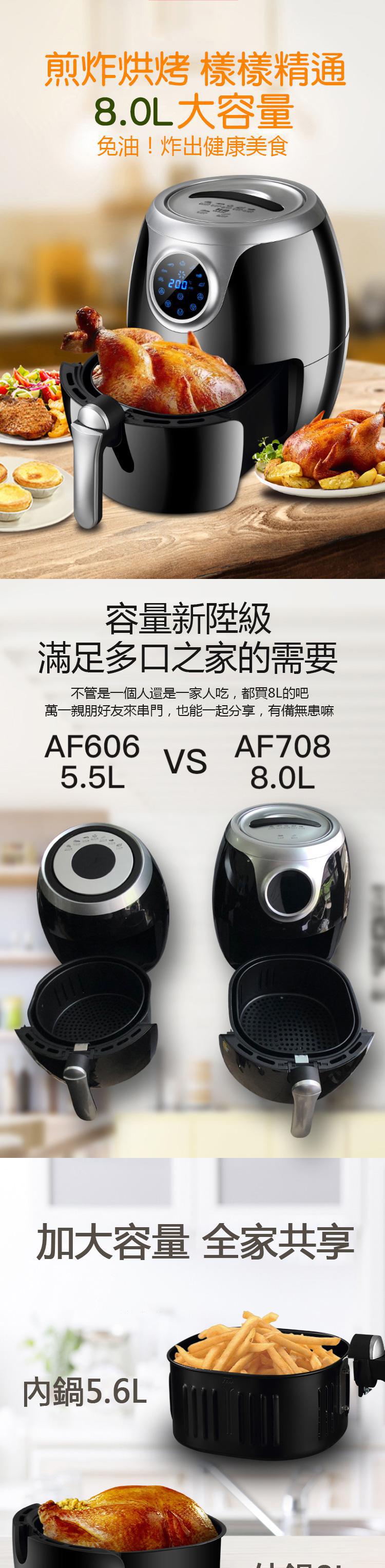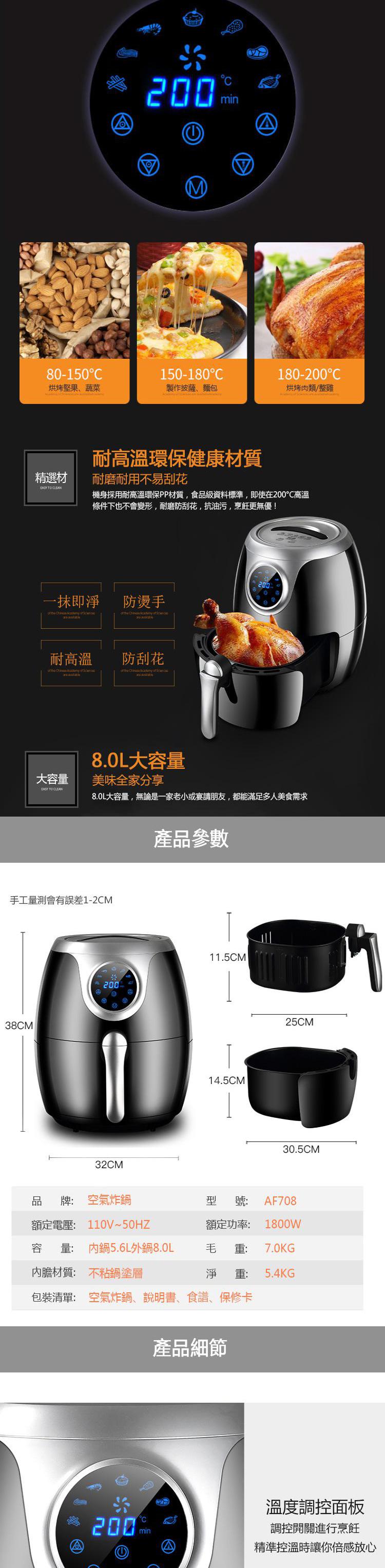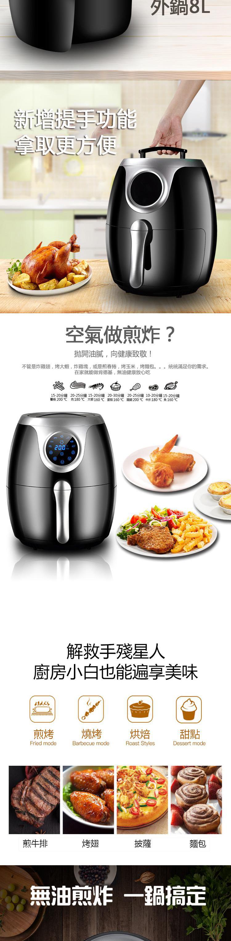 【8.0L全功能旗艦】【極致加熱效能】【智慧微電腦觸屏菜單】【不粘雙鍋設計】科帥旗艦級8.0L全功能極致效能智慧雙鍋無油氣炸鍋