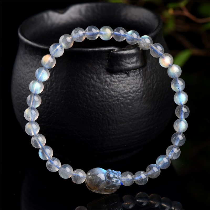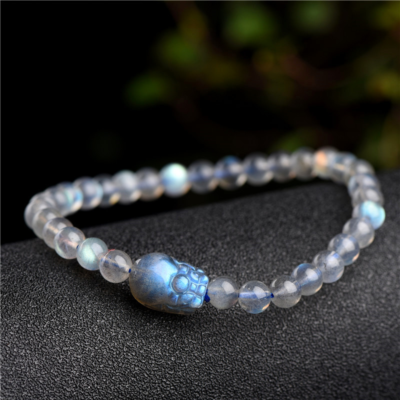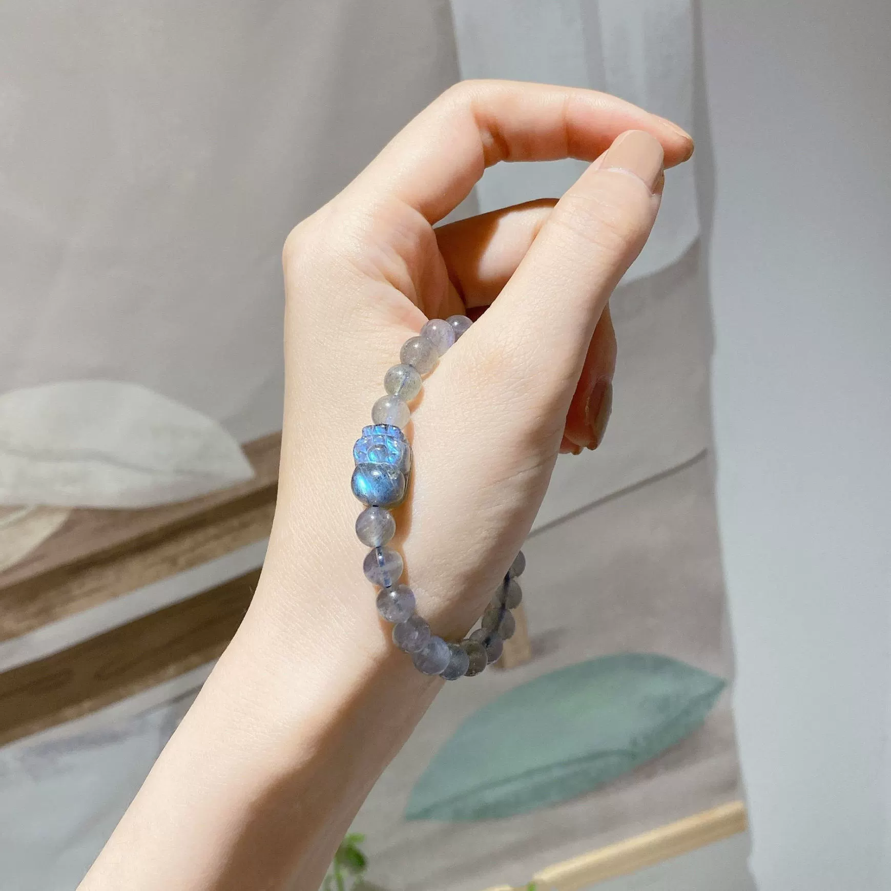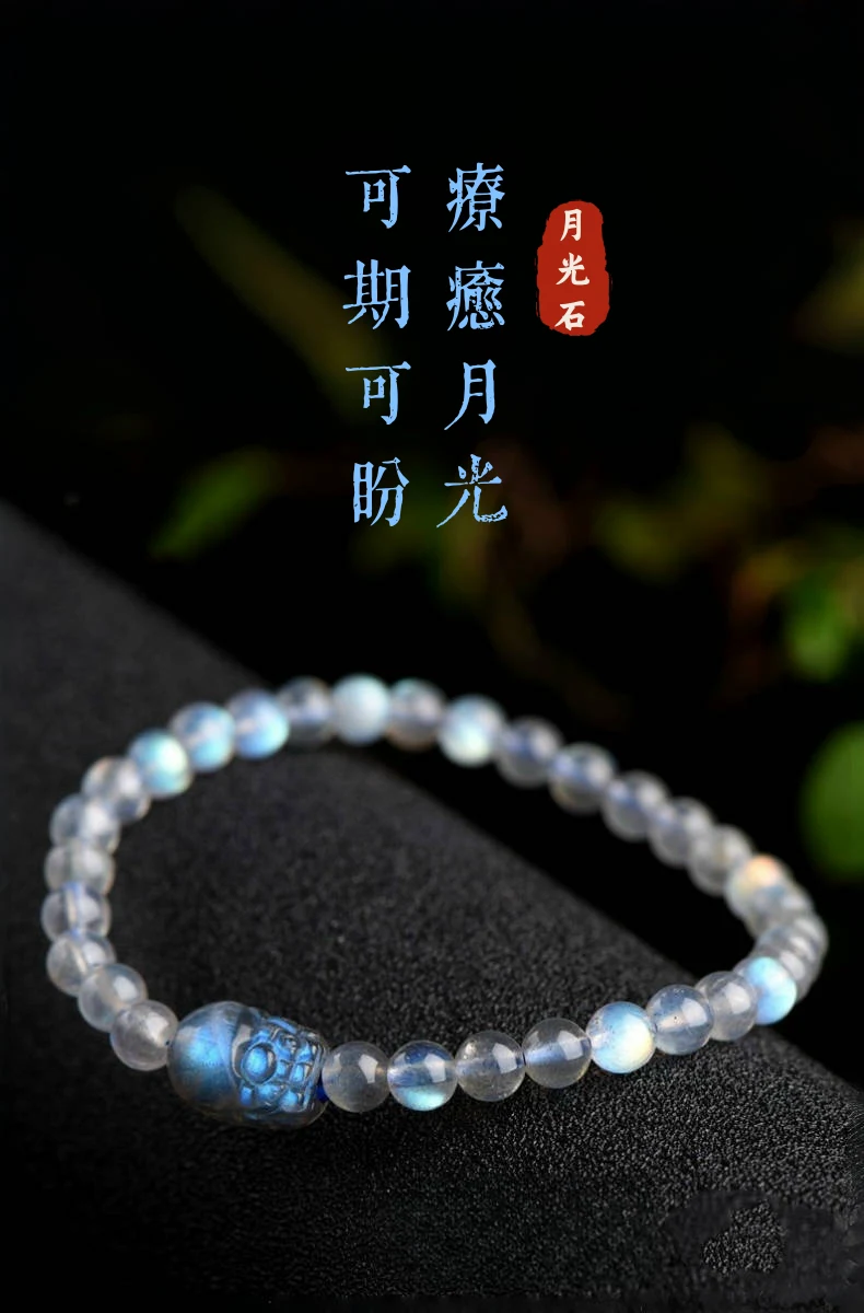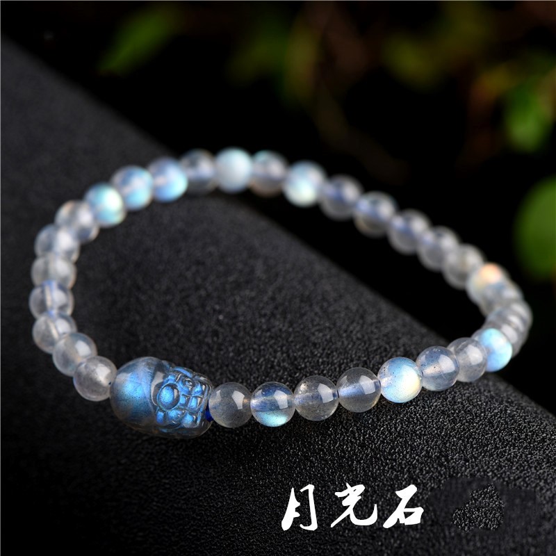 療癒月光 | 財愛皆有 | 天然夢幻藍月光石貔貅手鍊 | 斯里蘭卡寶石級月光石 | 手工精雕招財貔貅 | 2025開運招財天然月光石招財貔貅手鍊手串