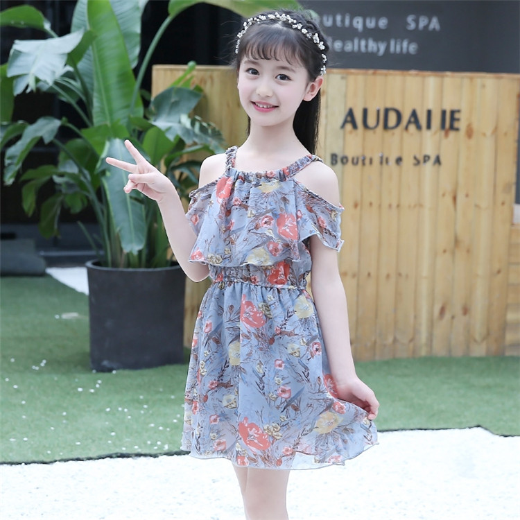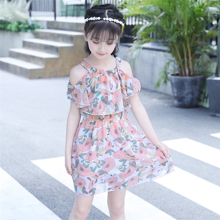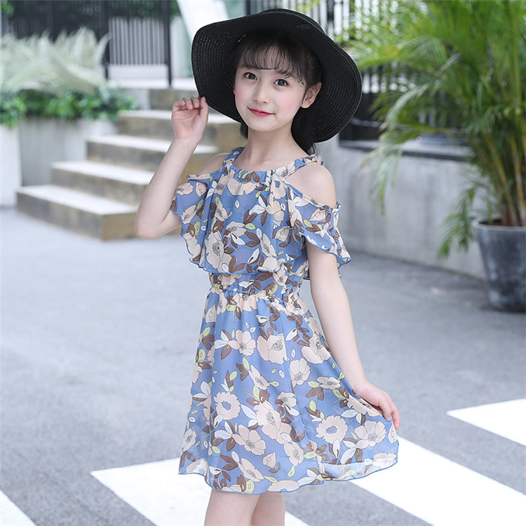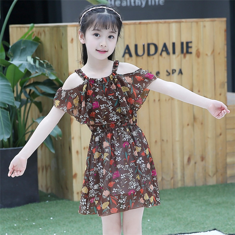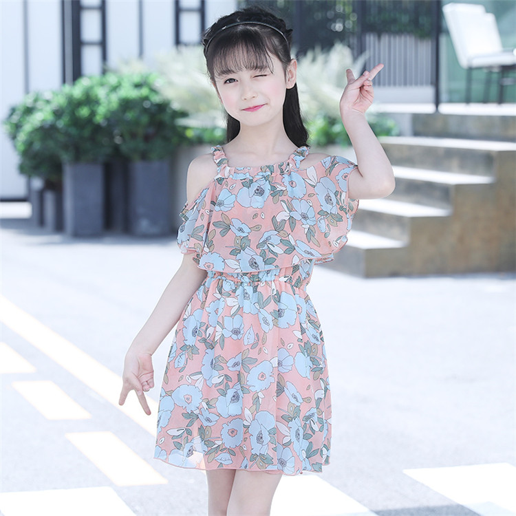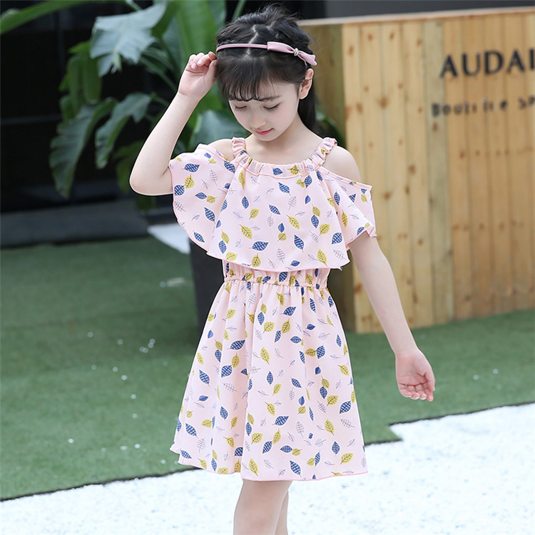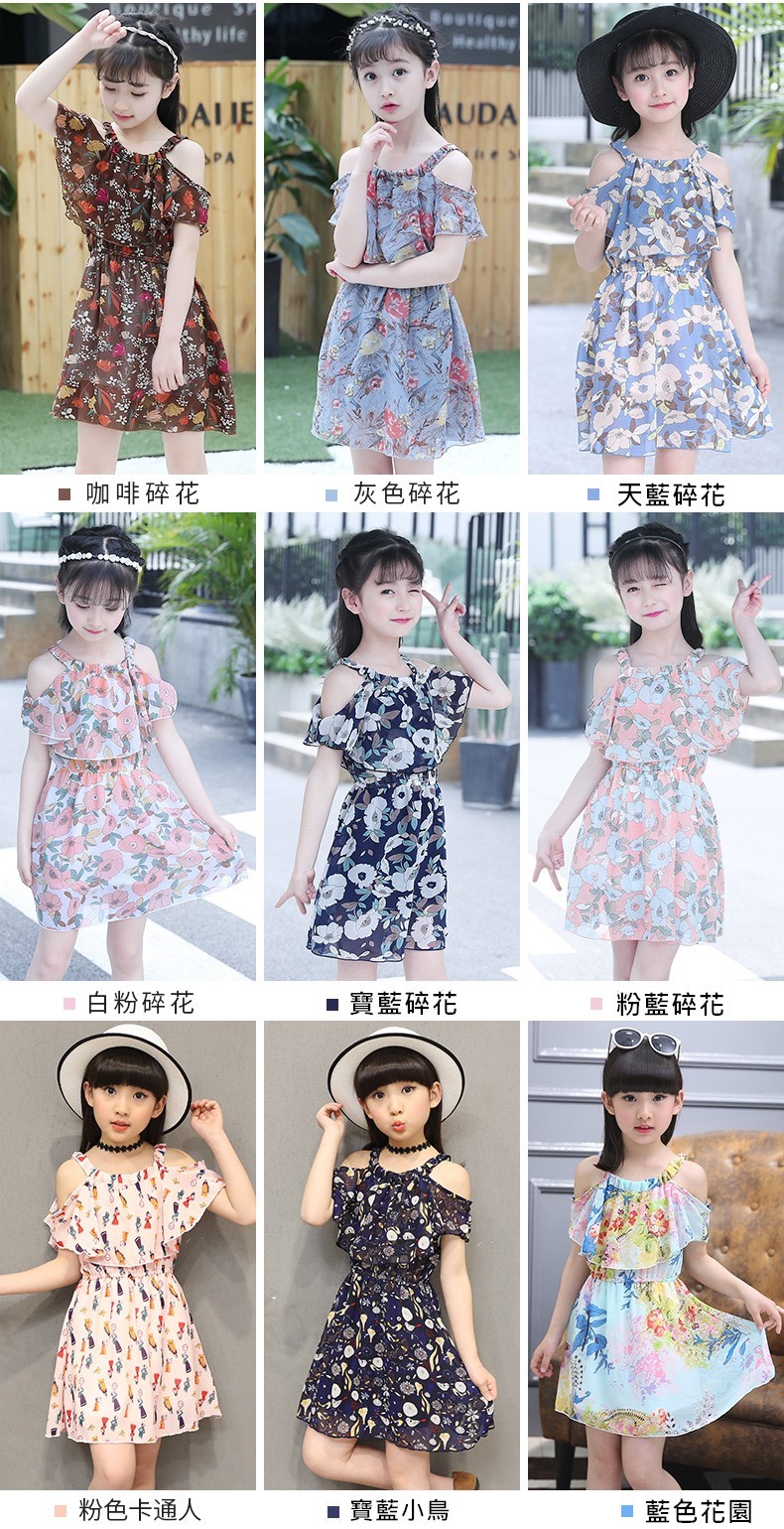 【碎花洋裝】韓國爆賣超甜美優雅女童簡約露肩碎花洋裝安全親膚面料透氣垂感