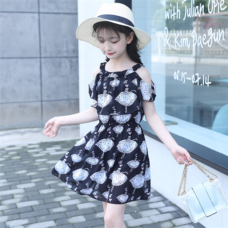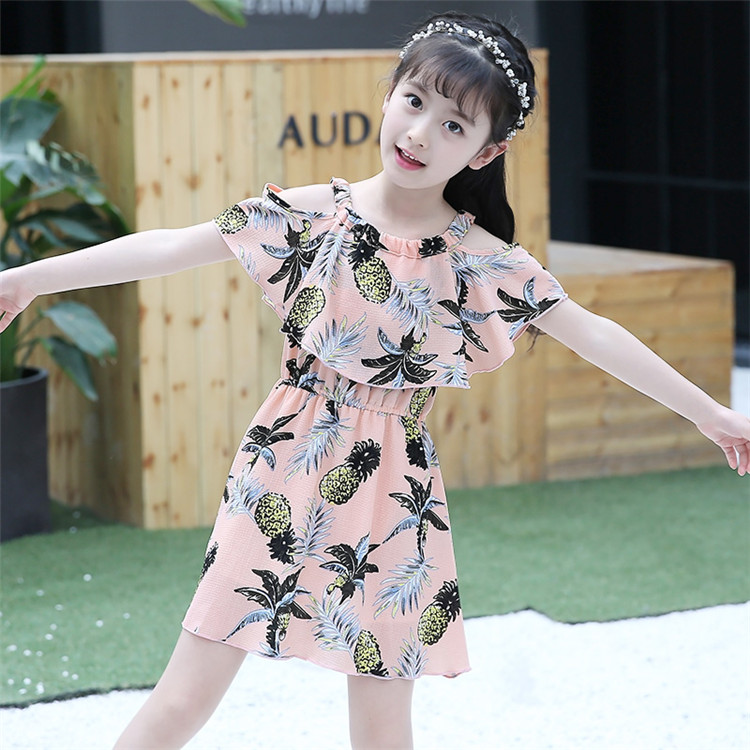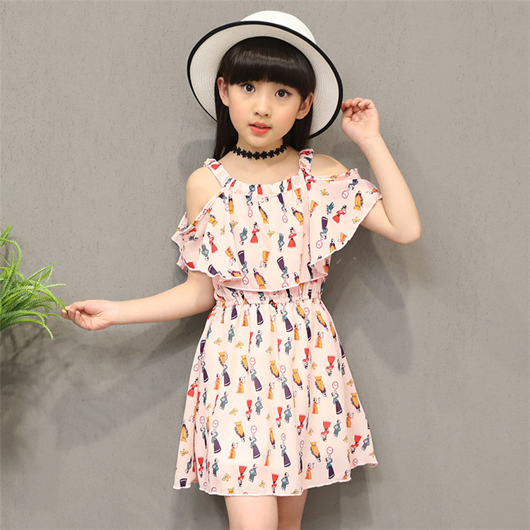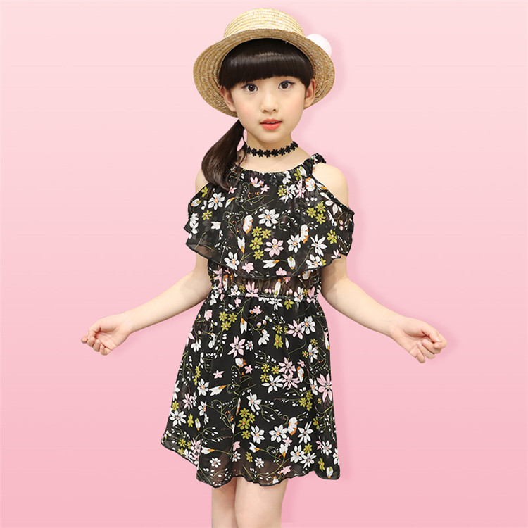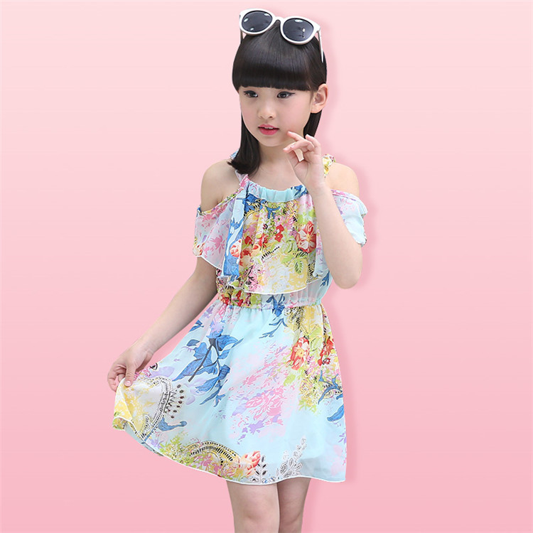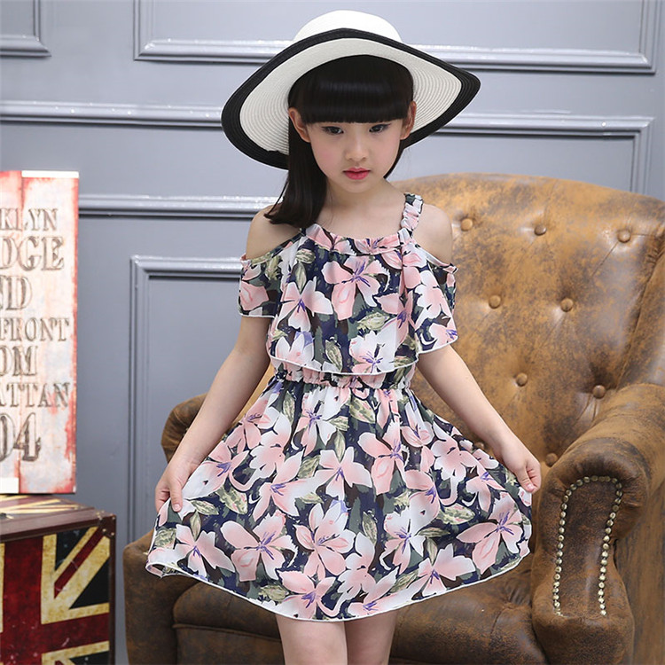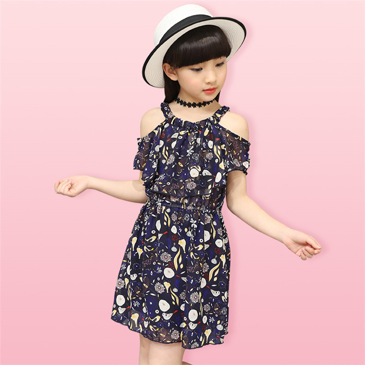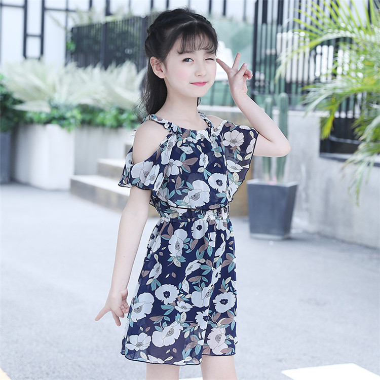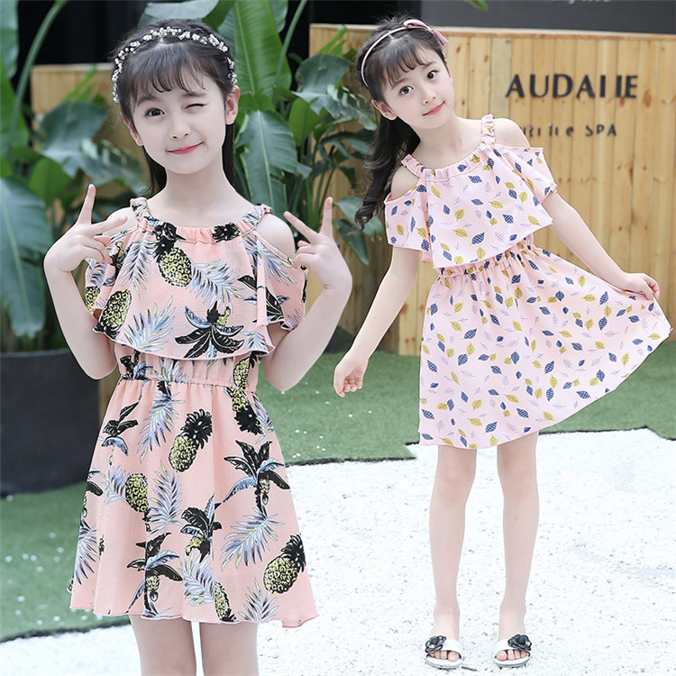 【碎花洋裝】韓國爆賣超甜美優雅女童簡約露肩碎花洋裝安全親膚面料透氣垂感
