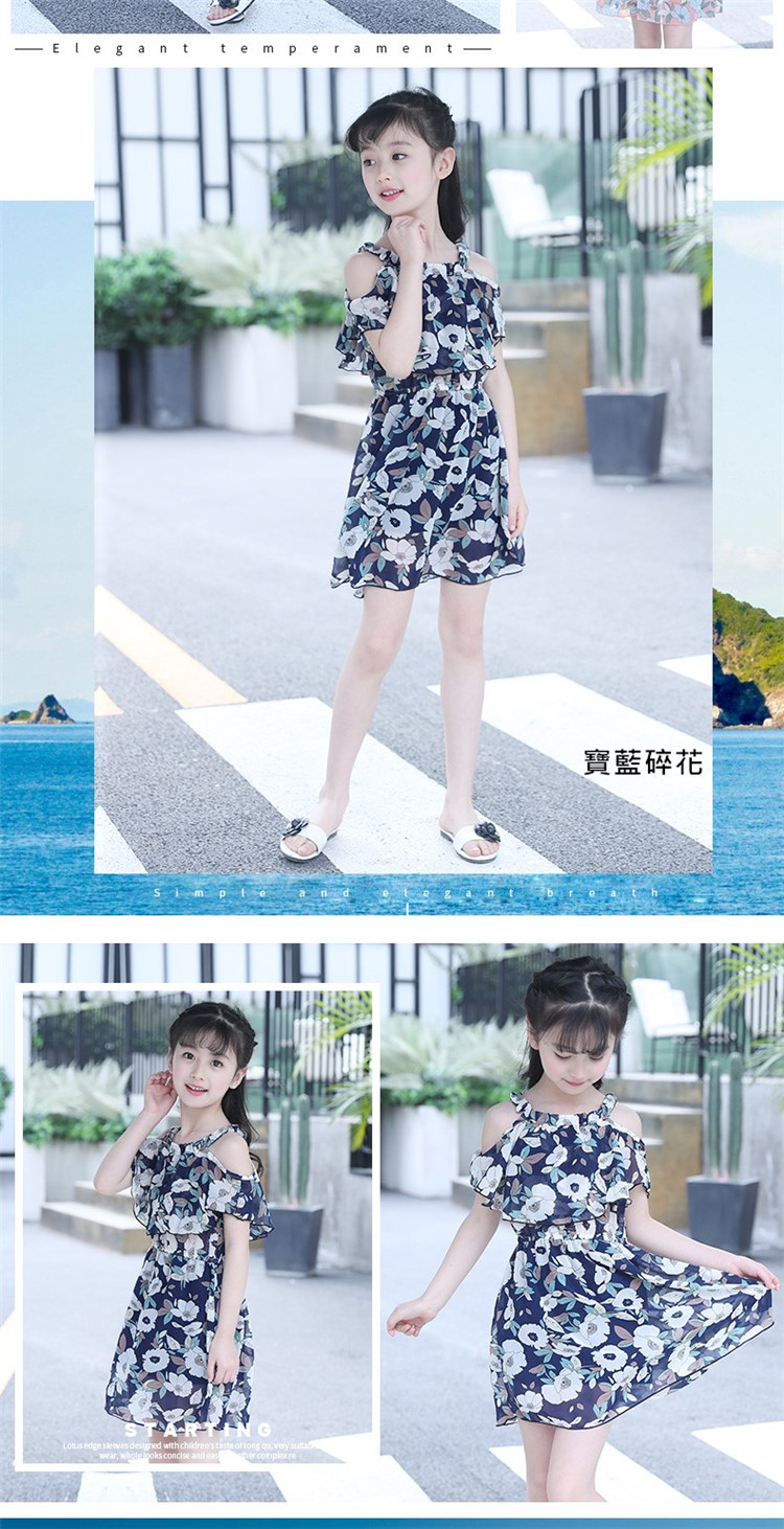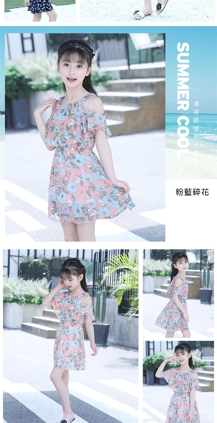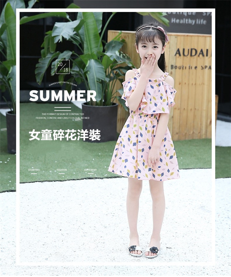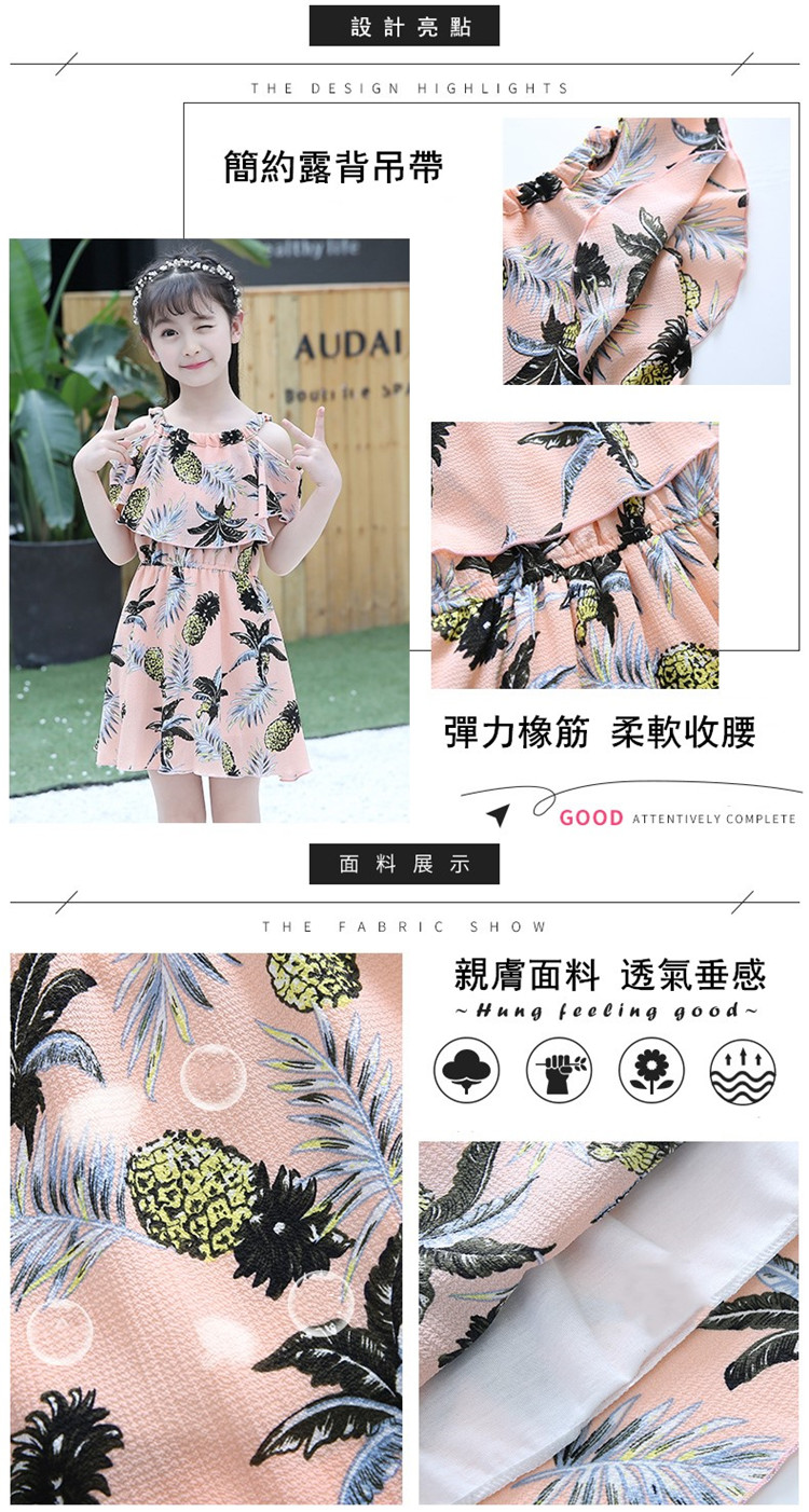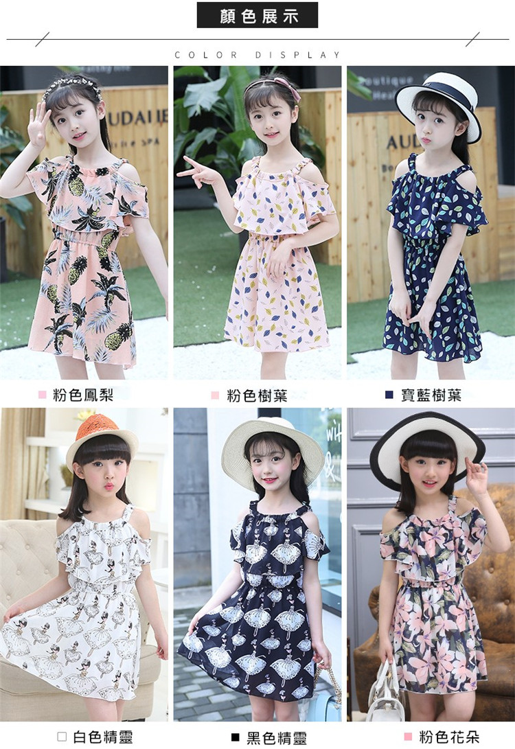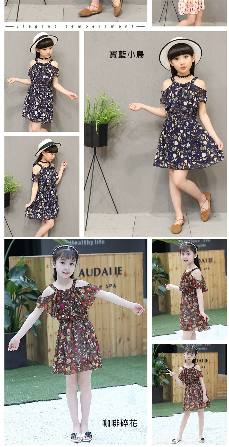 【碎花洋裝】韓國爆賣超甜美優雅女童簡約露肩碎花洋裝安全親膚面料透氣垂感