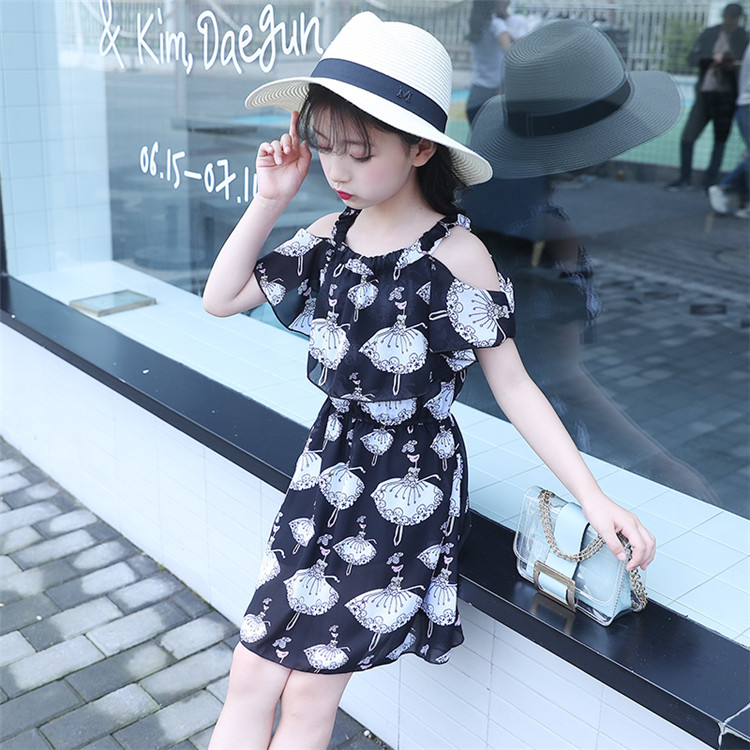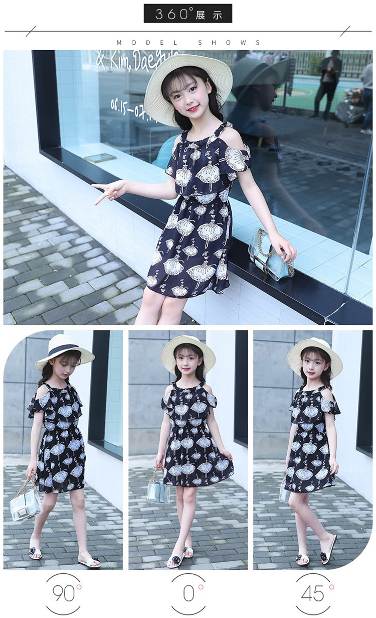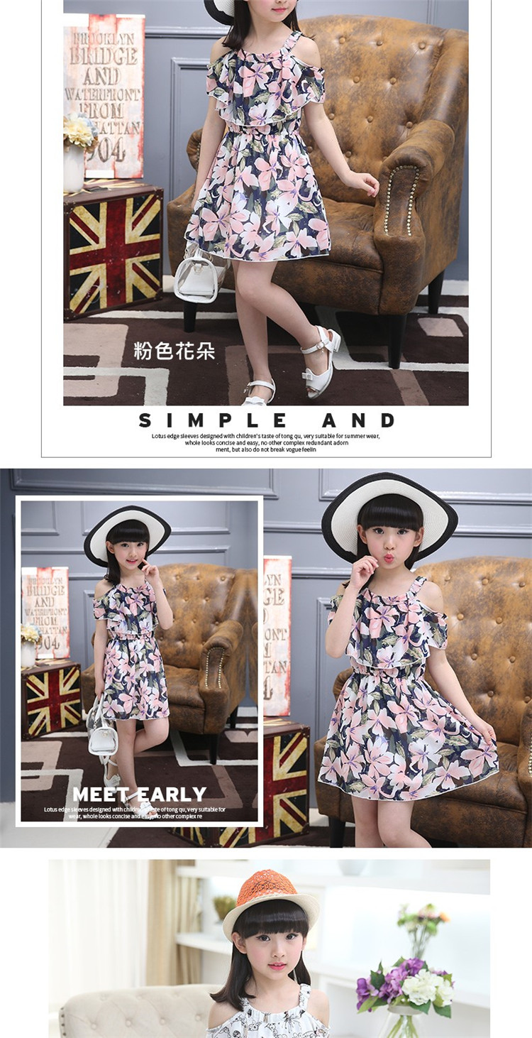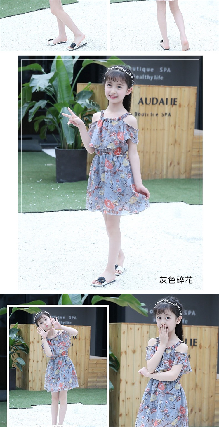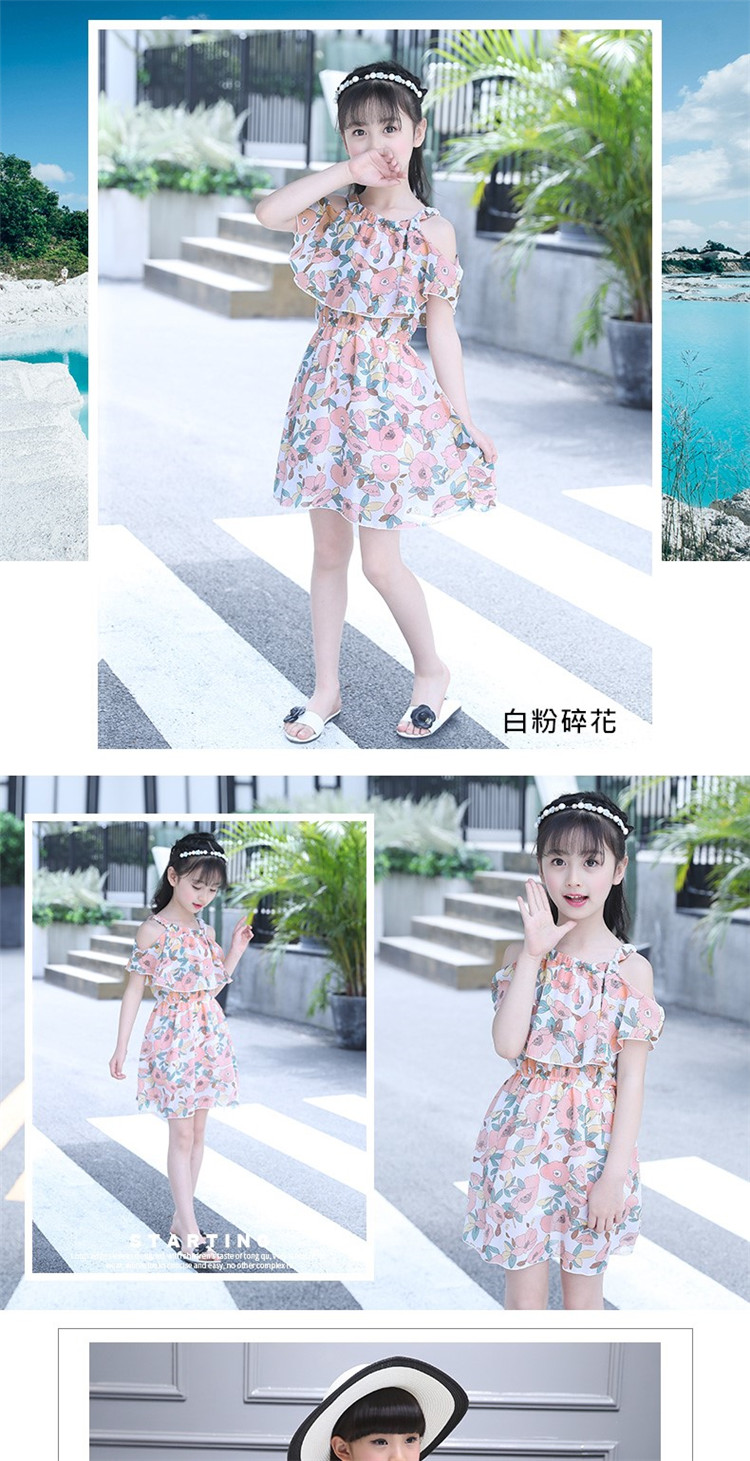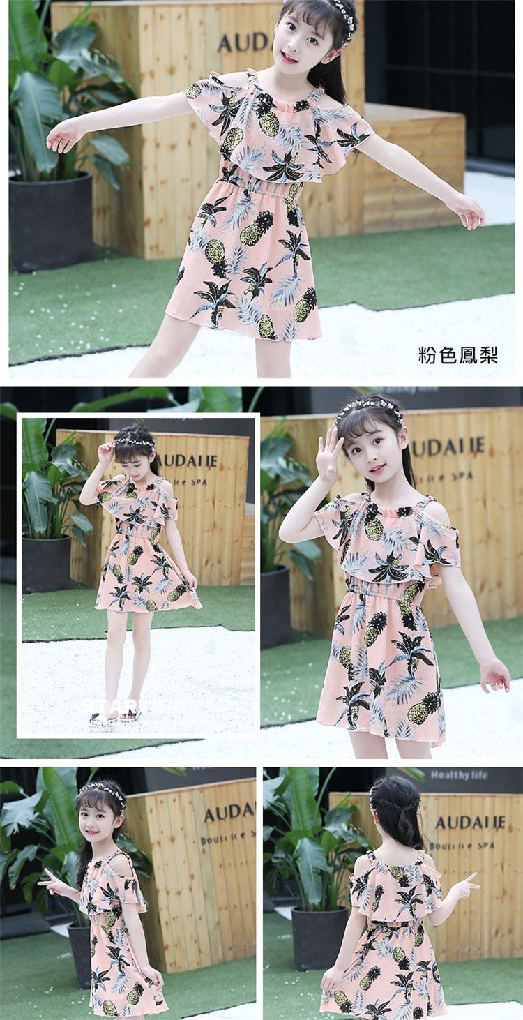 【碎花洋裝】韓國爆賣超甜美優雅女童簡約露肩碎花洋裝安全親膚面料透氣垂感