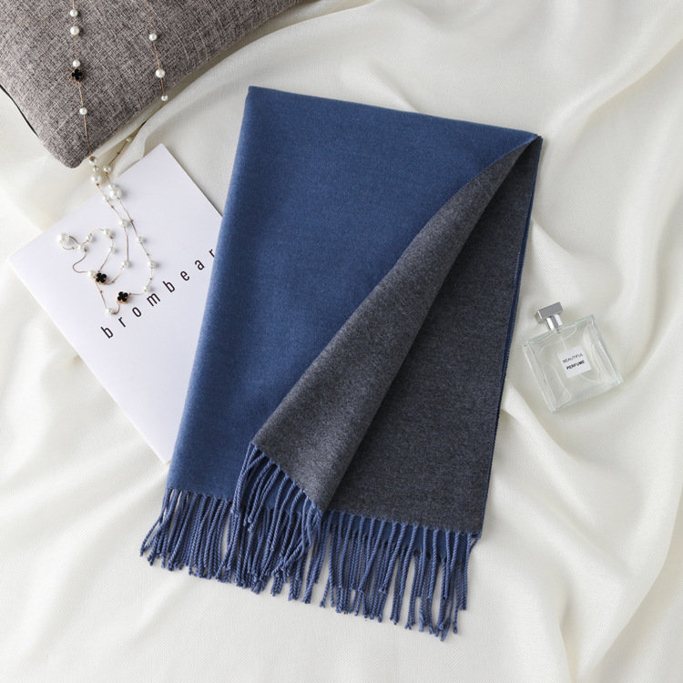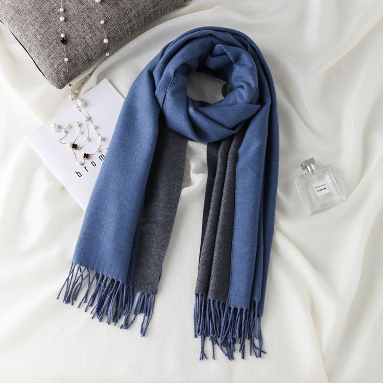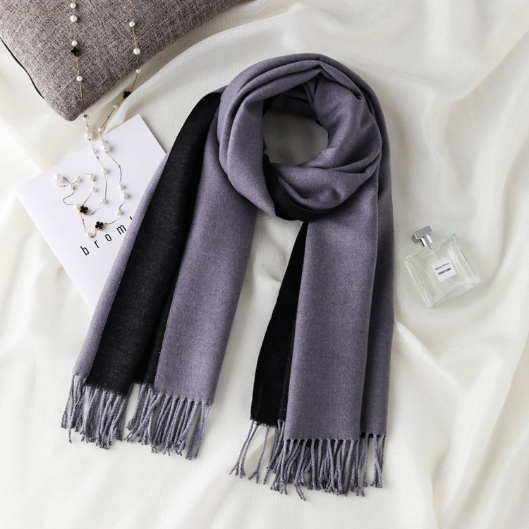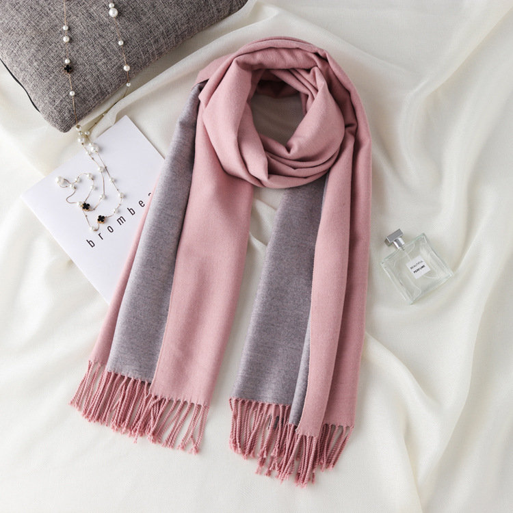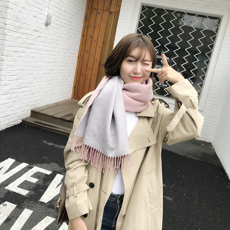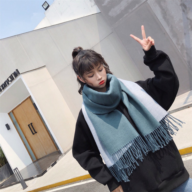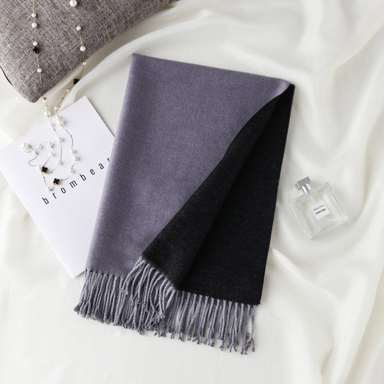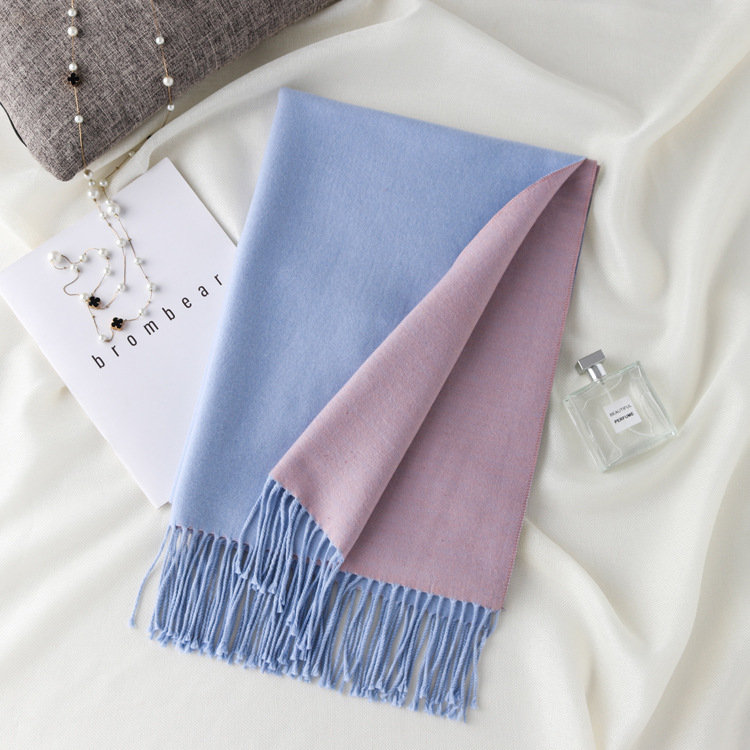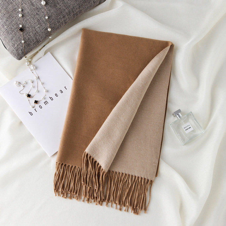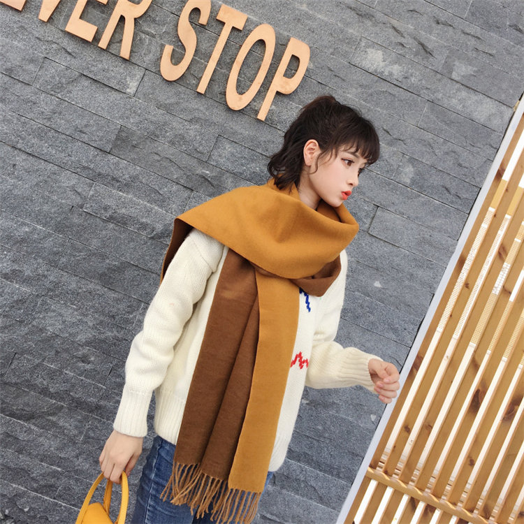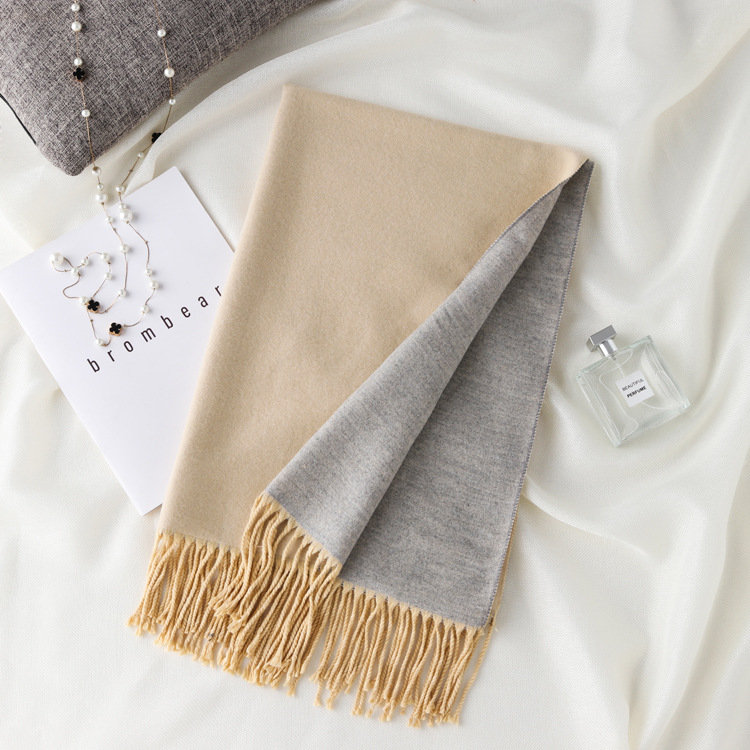 日式高級百搭雙面雙色圍巾 | 復合混紡羊絨手感 | 加大加寬可做披肩 | 厚實親膚透氣保暖 | 日系優雅百搭雙面拼色親膚保暖流蘇圍脖披肩圍巾