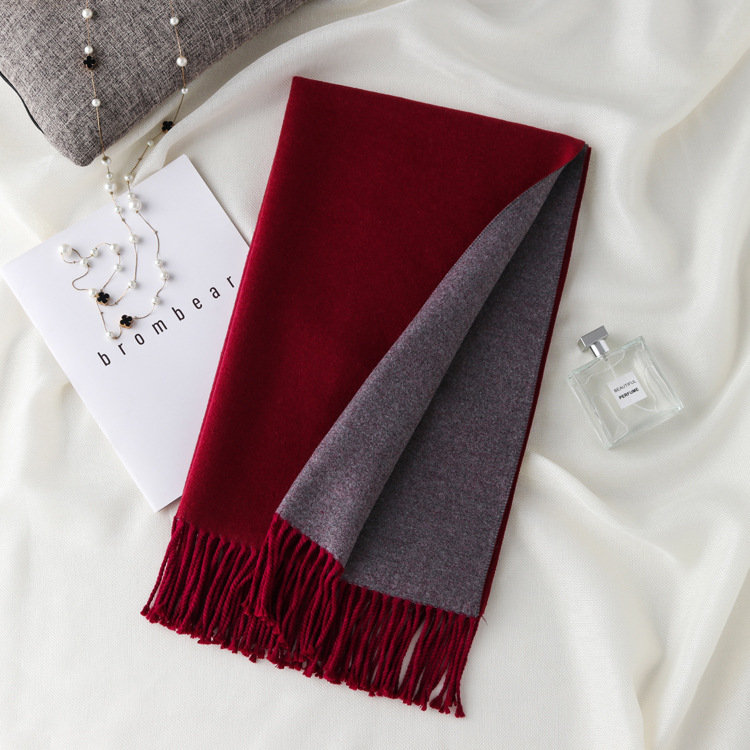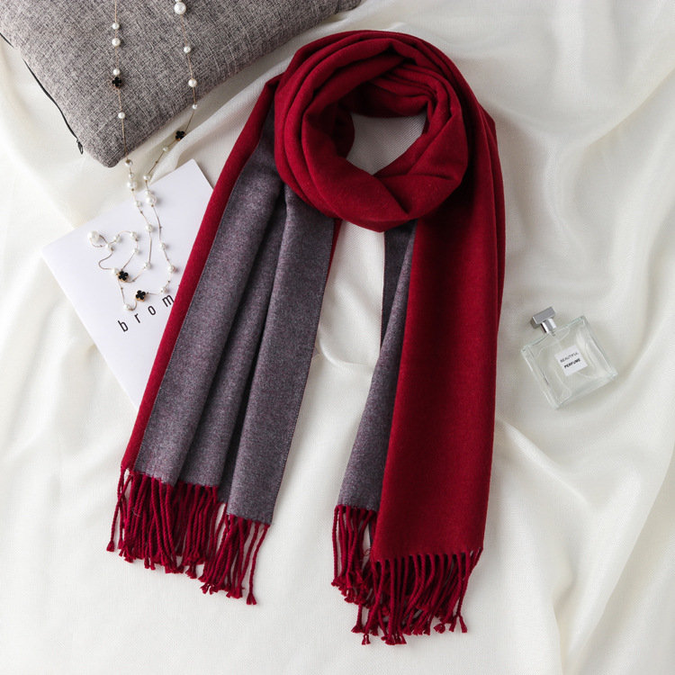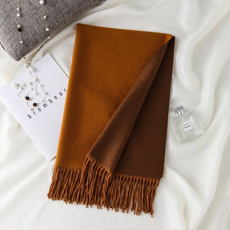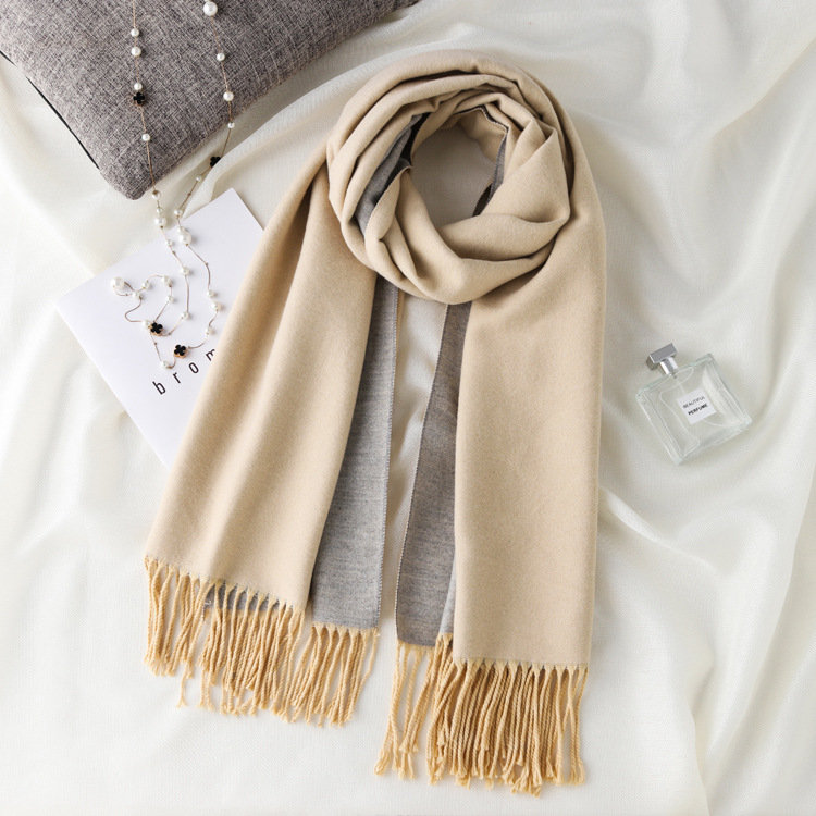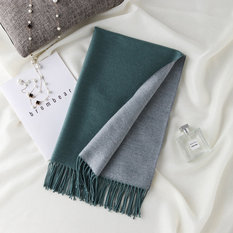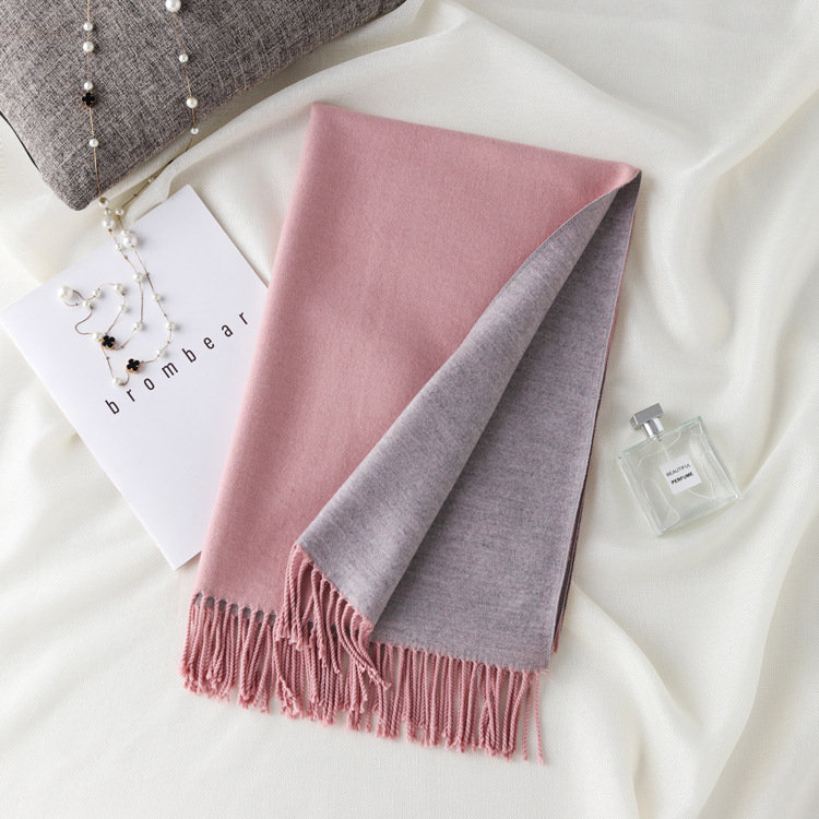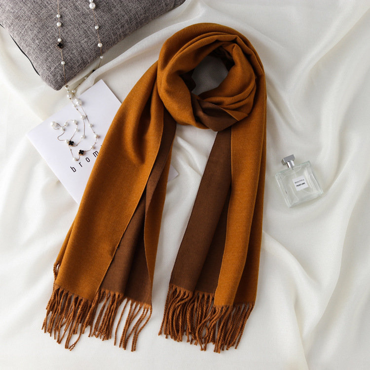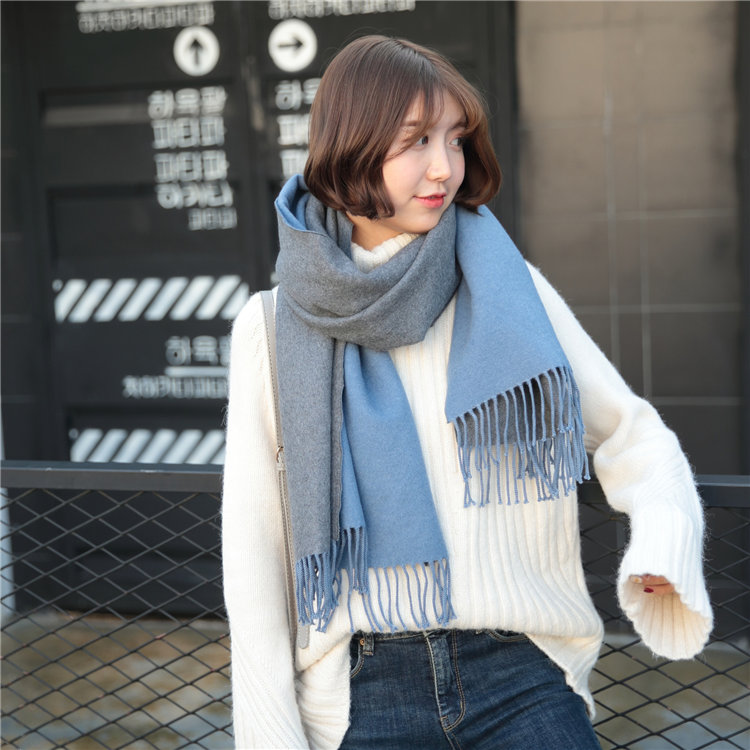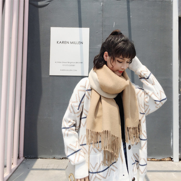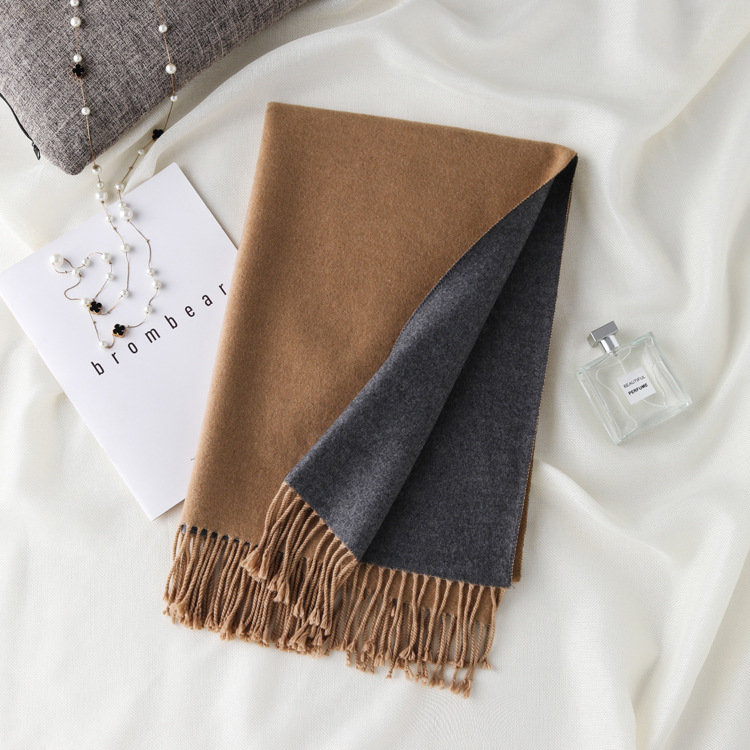 日式高級百搭雙面雙色圍巾 | 復合混紡羊絨手感 | 加大加寬可做披肩 | 厚實親膚透氣保暖 | 日系優雅百搭雙面拼色親膚保暖流蘇圍脖披肩圍巾