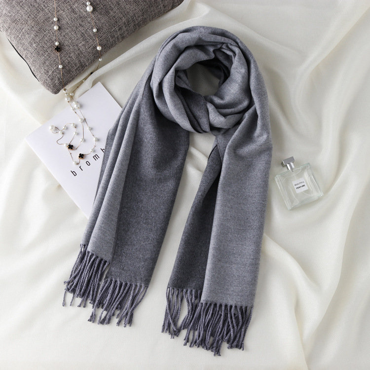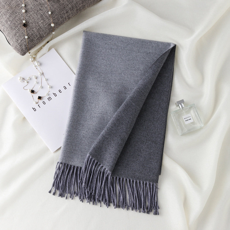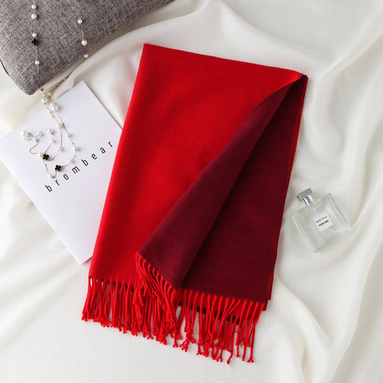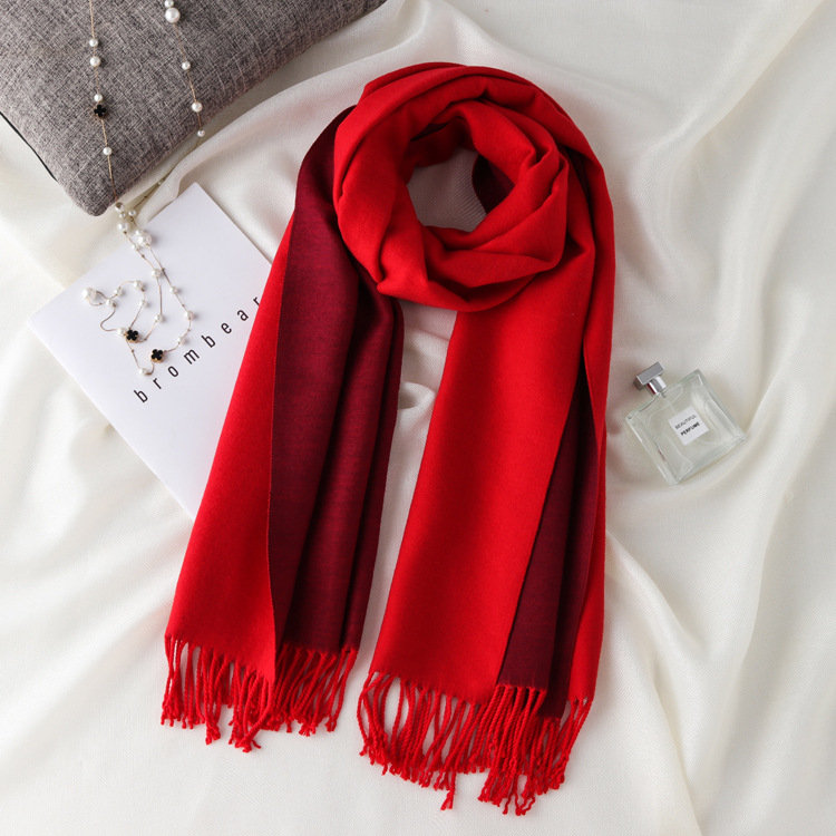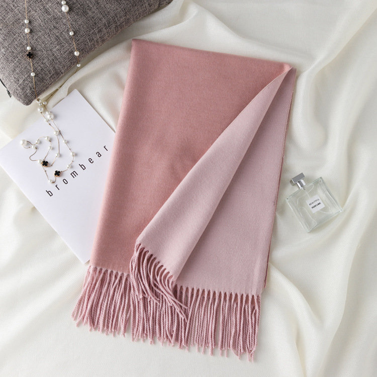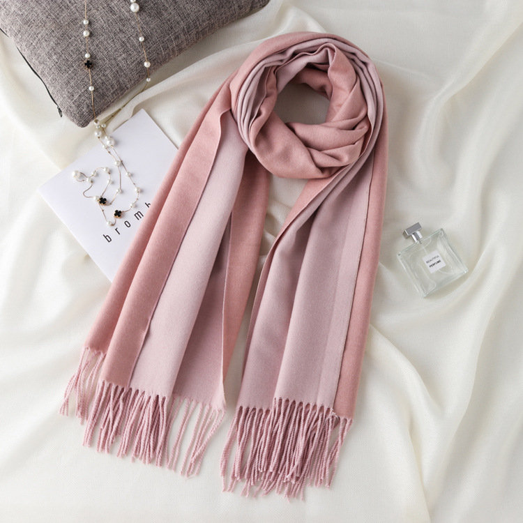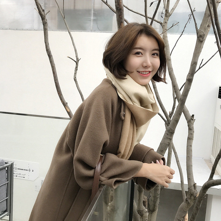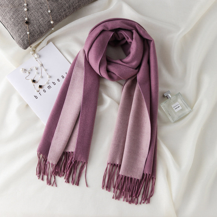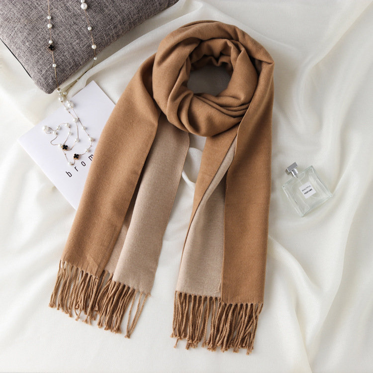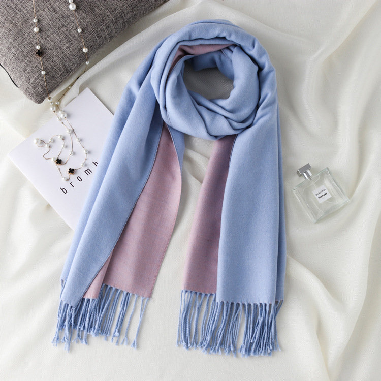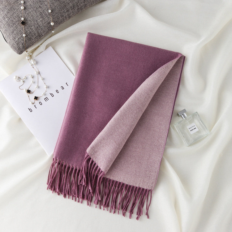 日式高級百搭雙面雙色圍巾 | 復合混紡羊絨手感 | 加大加寬可做披肩 | 厚實親膚透氣保暖 | 日系優雅百搭雙面拼色親膚保暖流蘇圍脖披肩圍巾