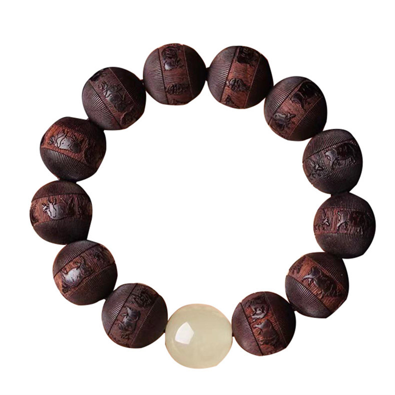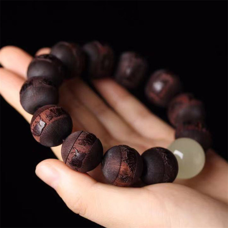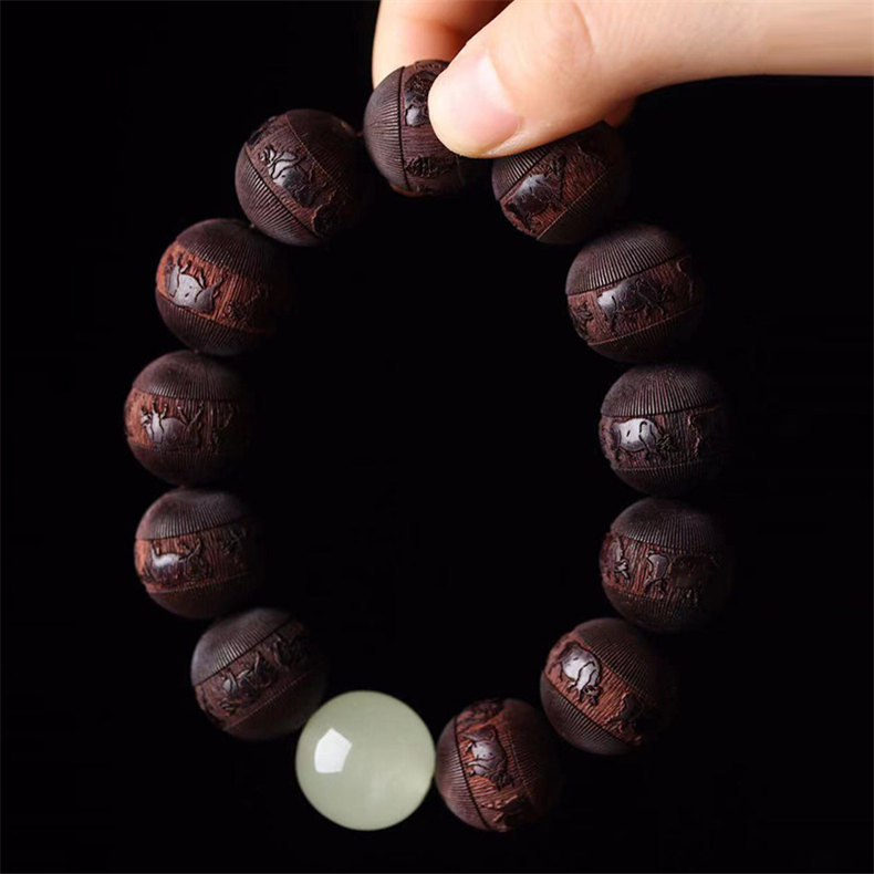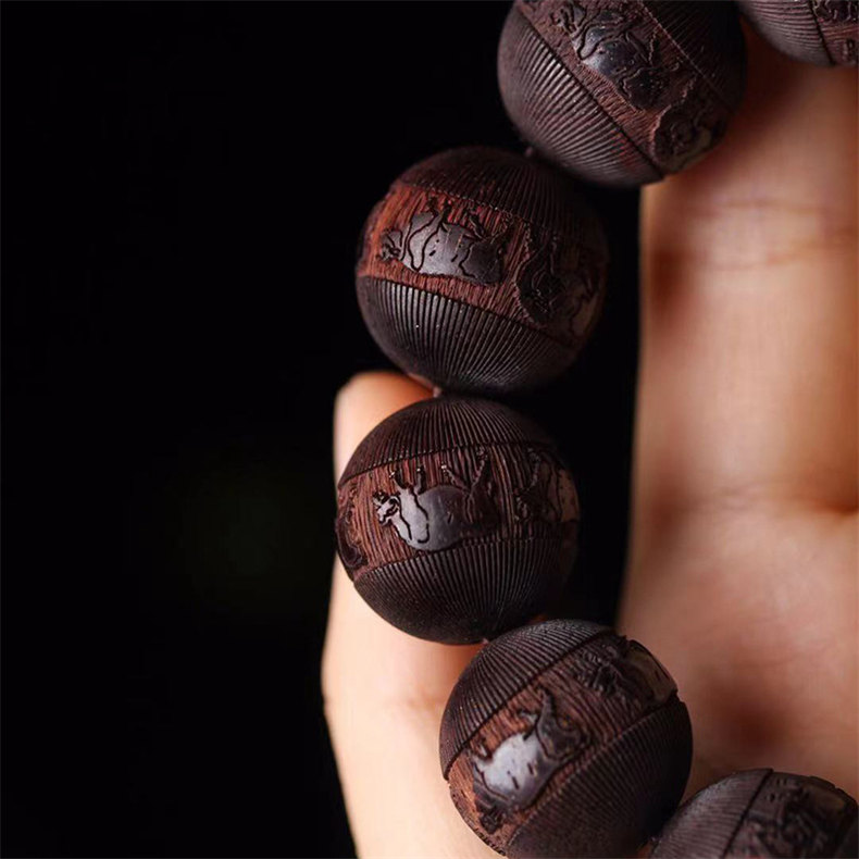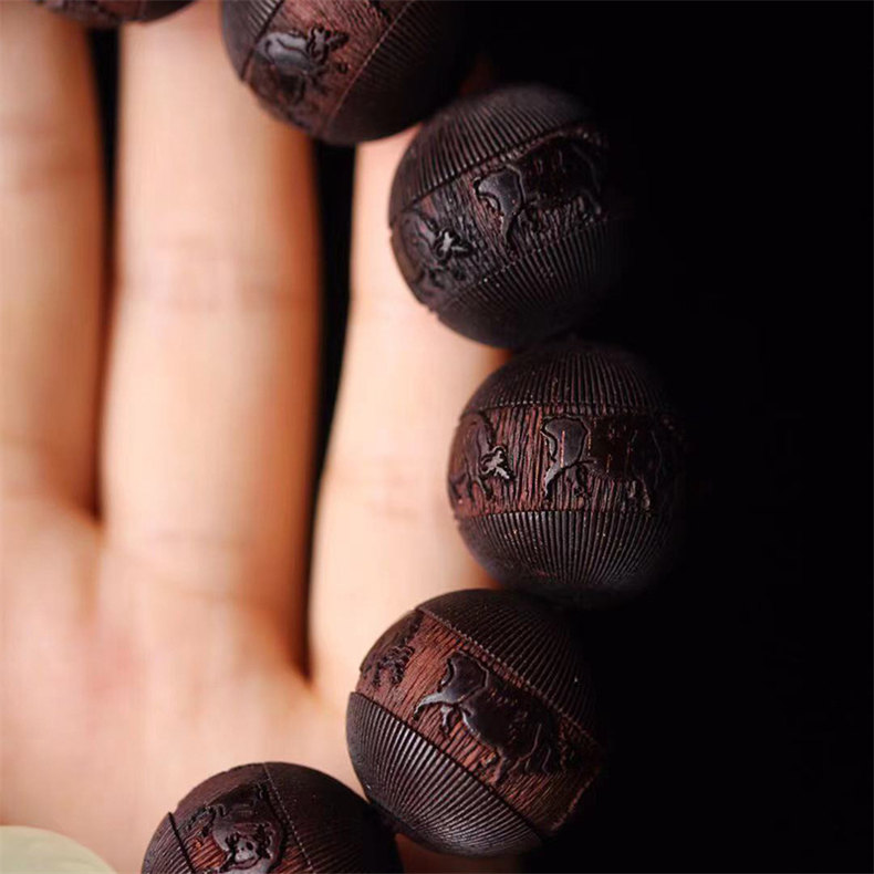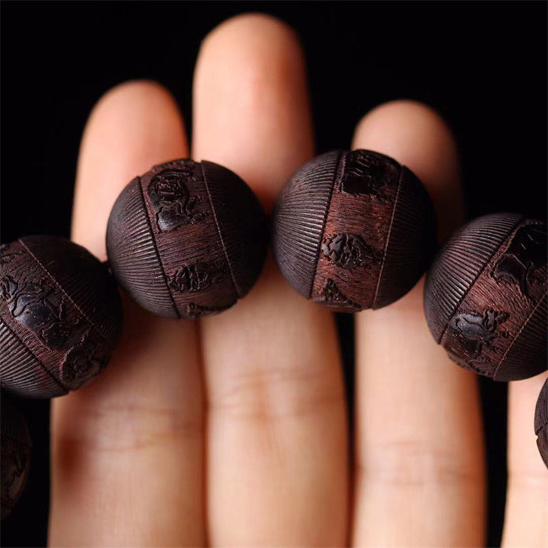 天然非洲小葉紫檀手串 | 五牛浮雕 | 配夜光珠 | 18mm木質文玩佛珠紫檀檀木男士佛珠手串