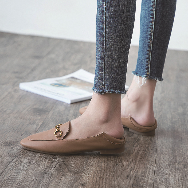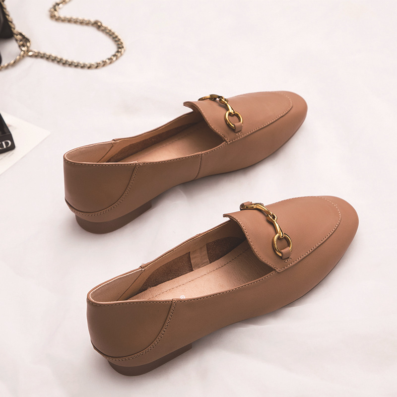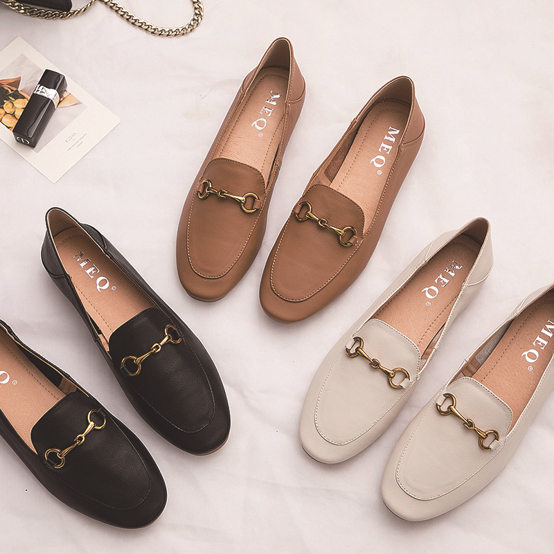 【頭層小牛皮】真皮英倫氣質平底女休閑百搭樂福鞋懶人鞋豆豆鞋