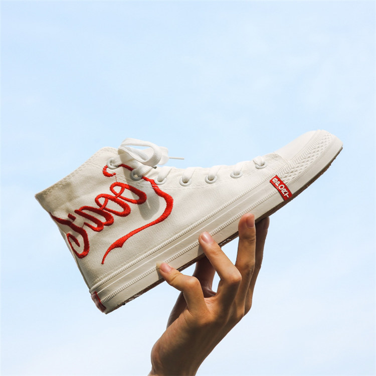 白色鞋面紅色刺繡
