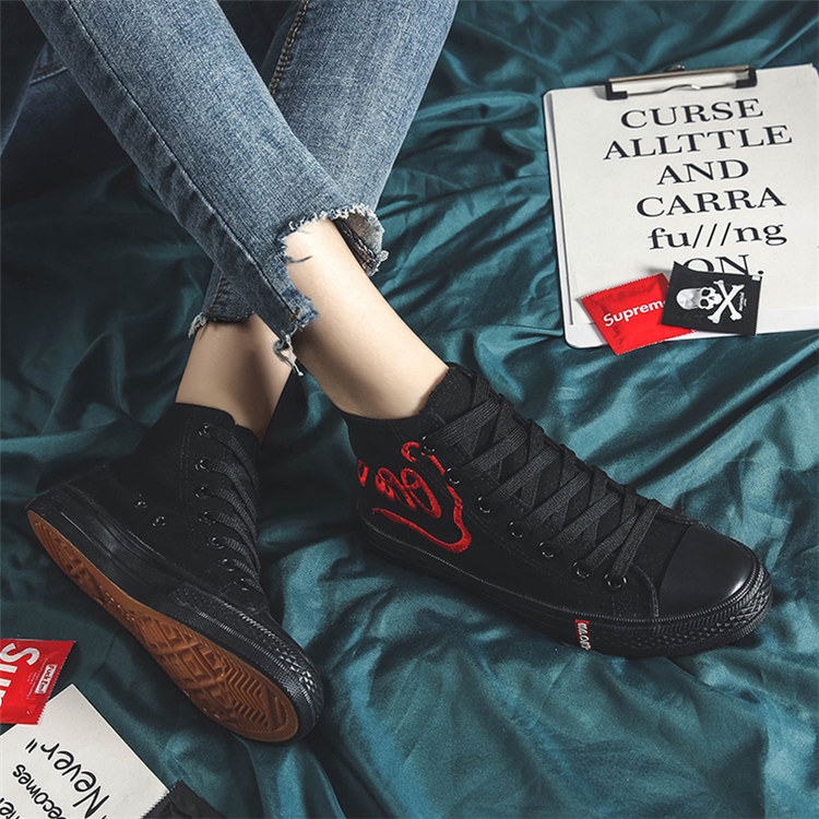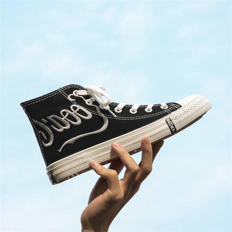 【手工刺繡】原創設計日系冷淡風格手工刺繡裝飾中幫女鞋帆布鞋