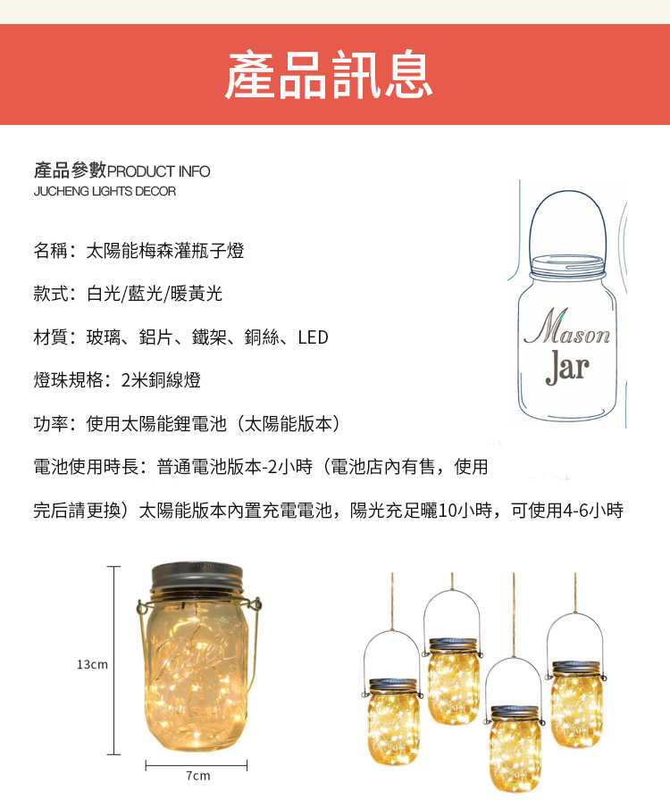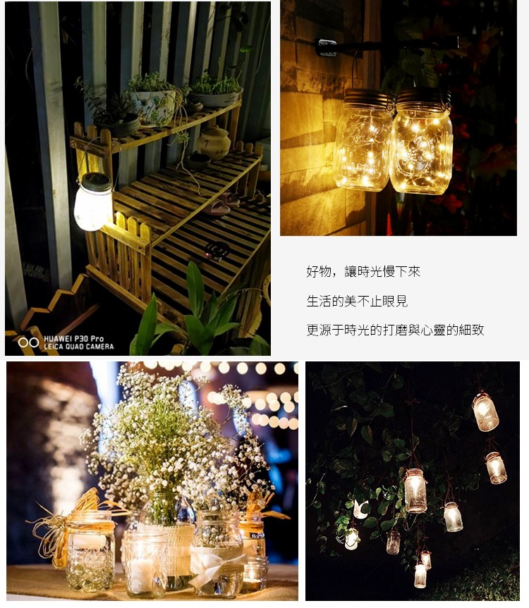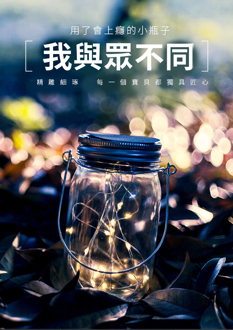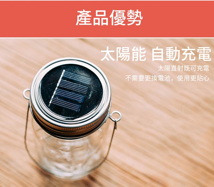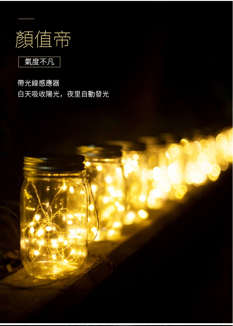 【太陽能梅森瓶燈】【光線感應】【防水設計】浪漫禮物第三代長效太陽能充電英式梅森瓶燈