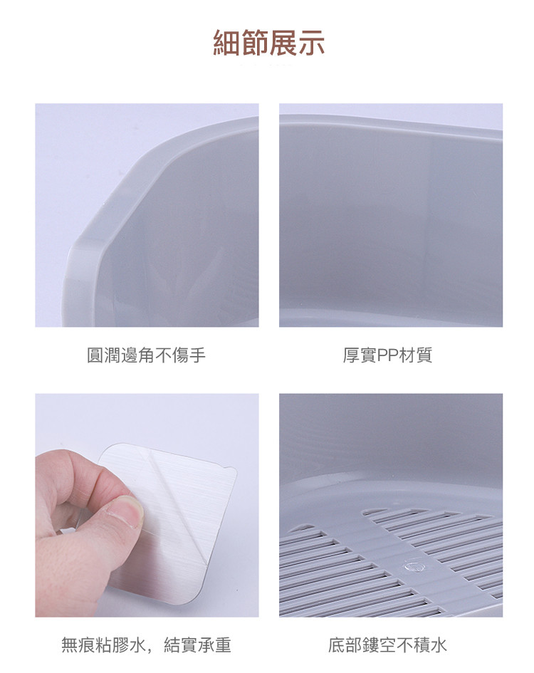 【二入】【無痕免釘多功能置物架】日式無痕粘貼免釘免打孔鏤空多功能廚房浴室瀝水置物架