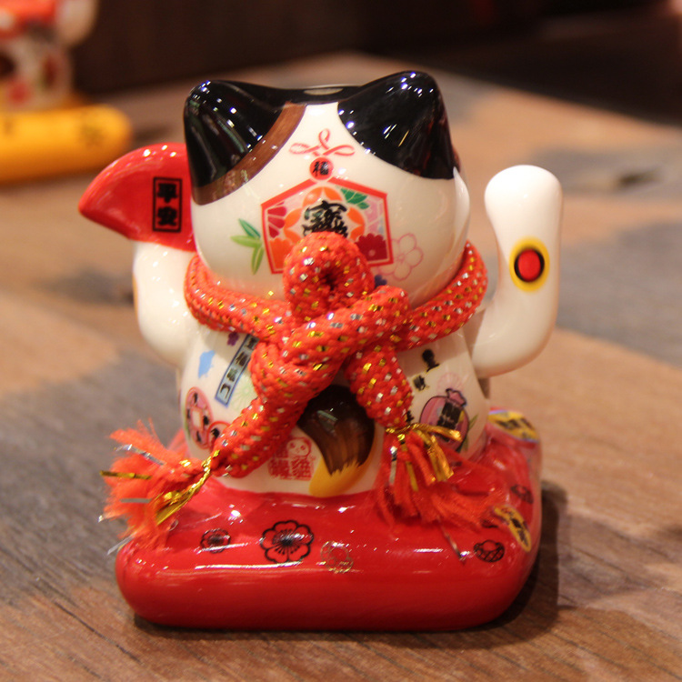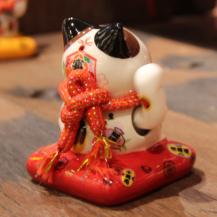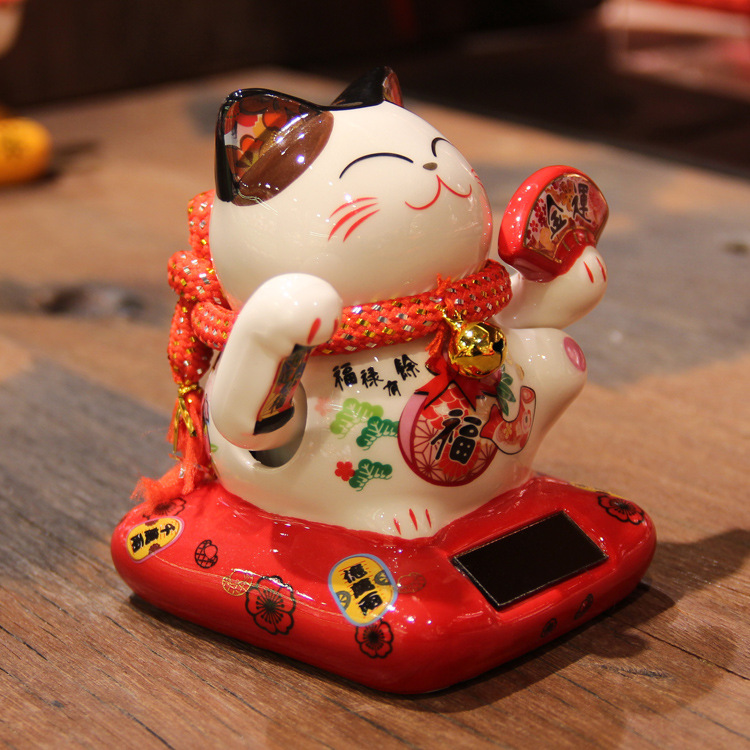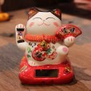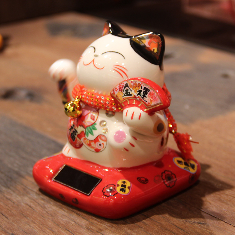 【太陽能搖手金運招財貓】【中小號】純手工製彩繪陶瓷日式金運太陽能搖手招財貓 (10*9*11cm)