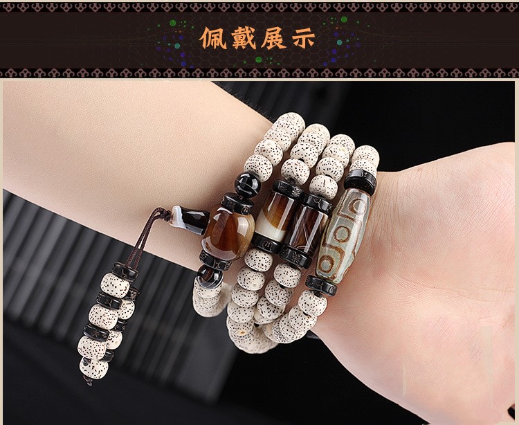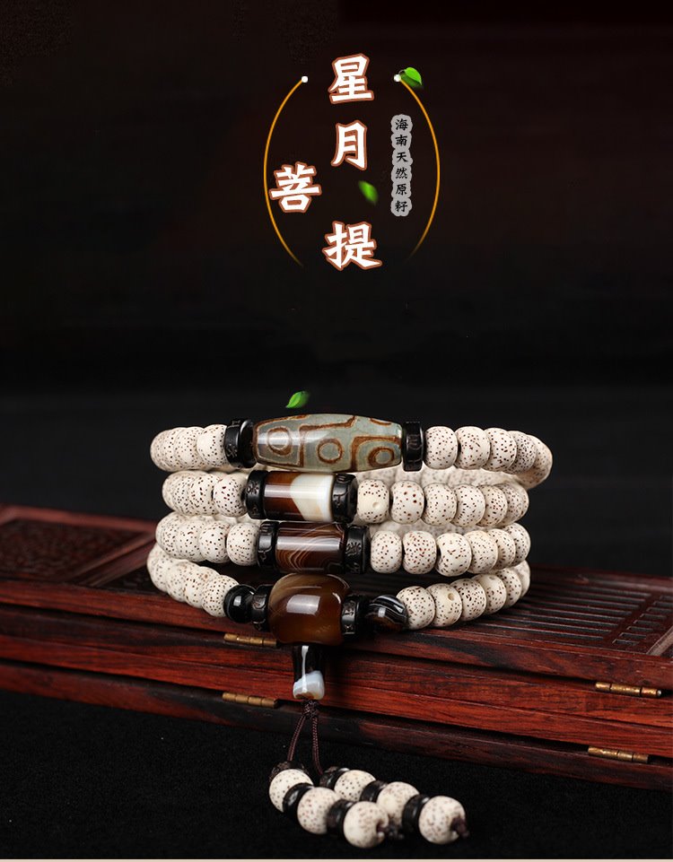 108顆順白星月菩提佛珠手串 | 極品選材高密沉水 | 天珠纏絲瑪瑙配飾 | 原創手作極品順白沉水星月菩提108顆念珠佛珠手串