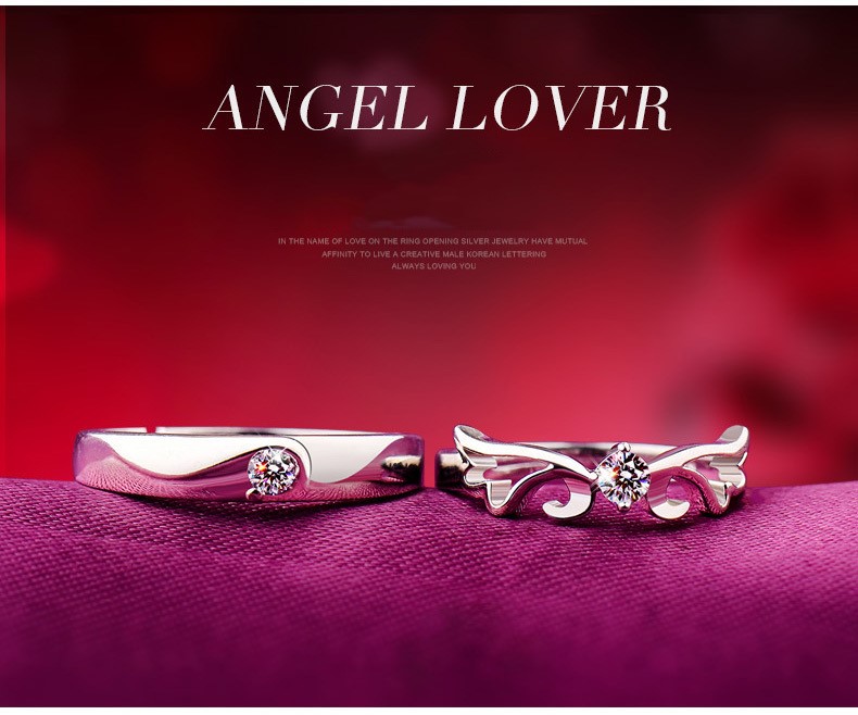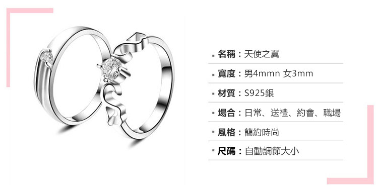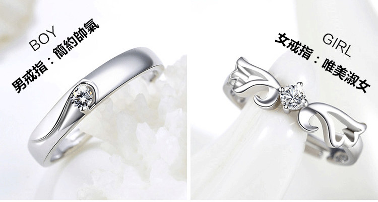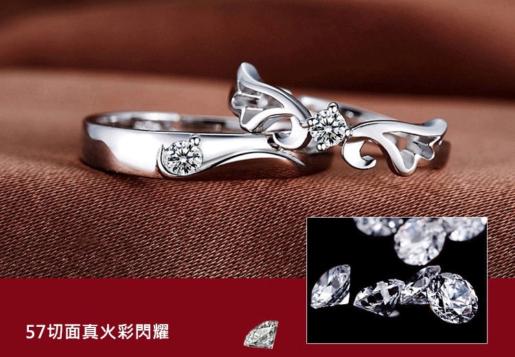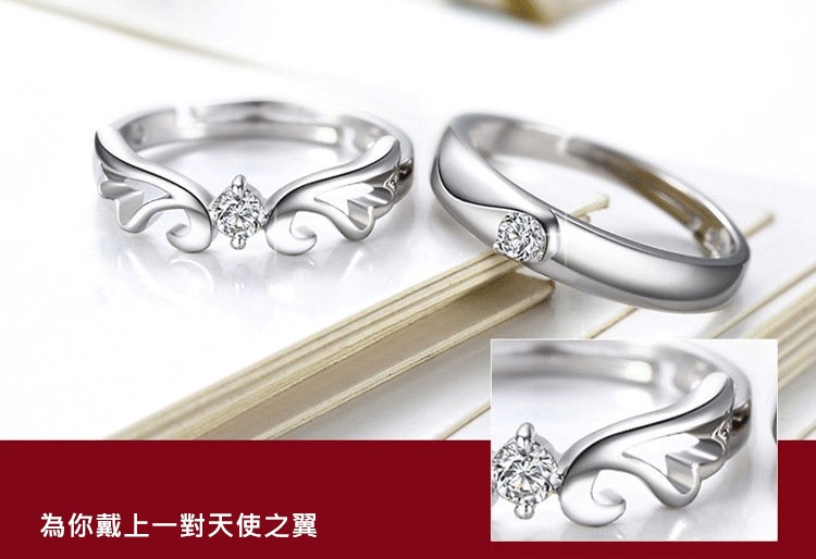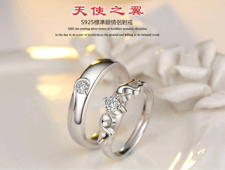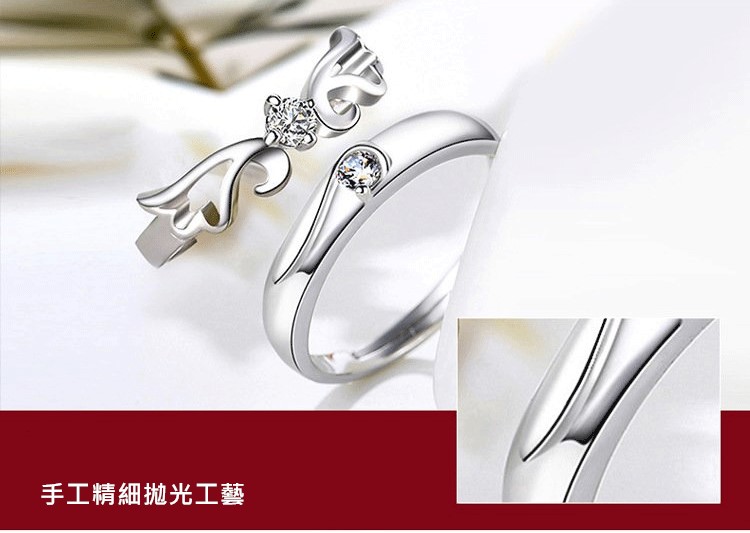 做我的天使 | S925純銀 | 原創設計唯美浪漫天使之翼純銀鑲嵌鋯鑽手工情侶開口對戒