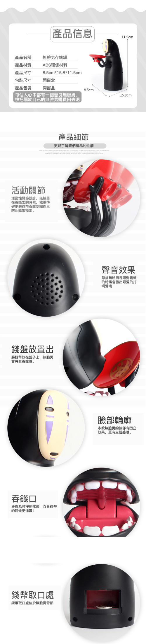 無臉男存錢筒貯金箱 | 重力感應自動吞錢 | 超逼真打嗝聲效 | 有趣男女閨蜜生日禮物限量打嗝版自動吞錢無臉男撲滿存錢筒貯金箱