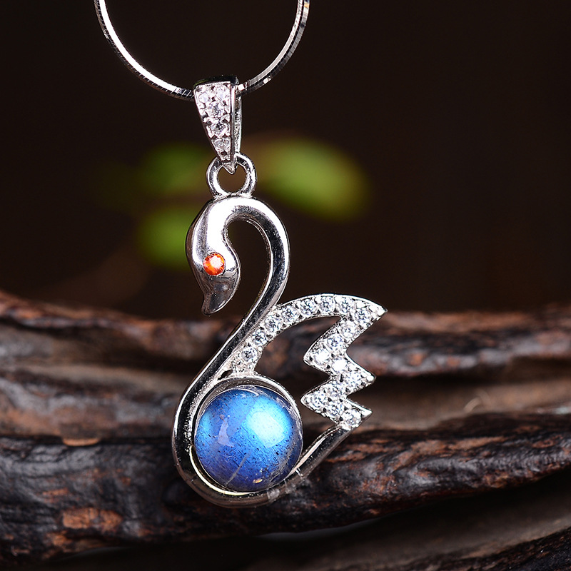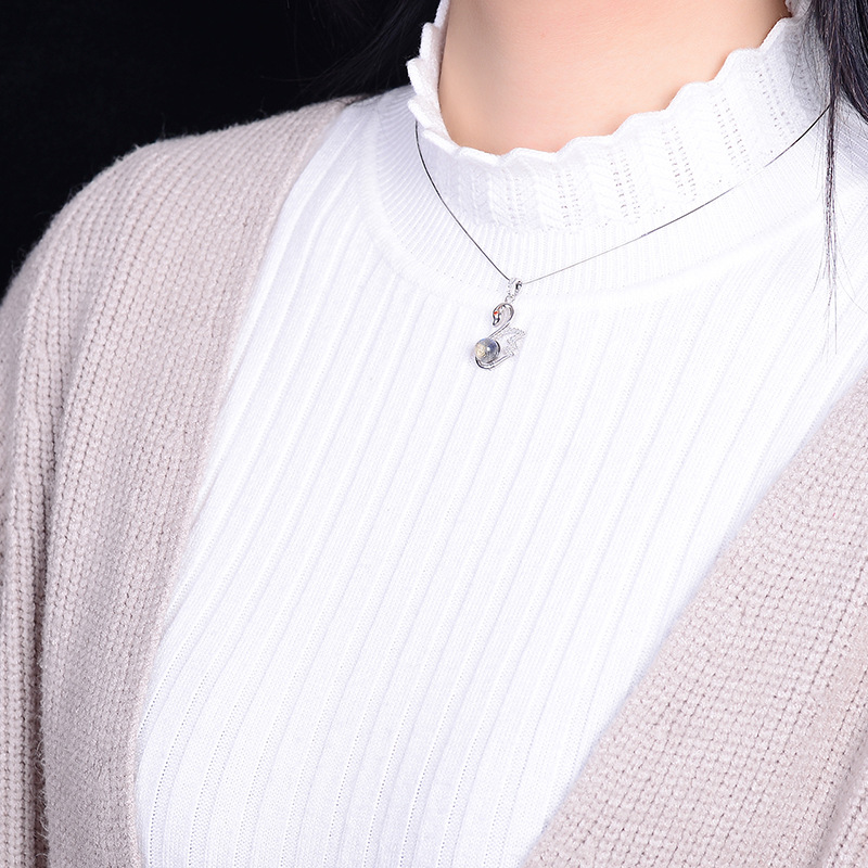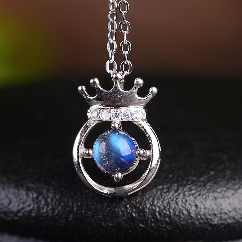 【斯里蘭卡月光石吊墜項鍊】【925純銀】原創手作奢華極品7A級天然斯里蘭卡月光石925純銀鑲鑽吊墜項鍊鎖骨鍊