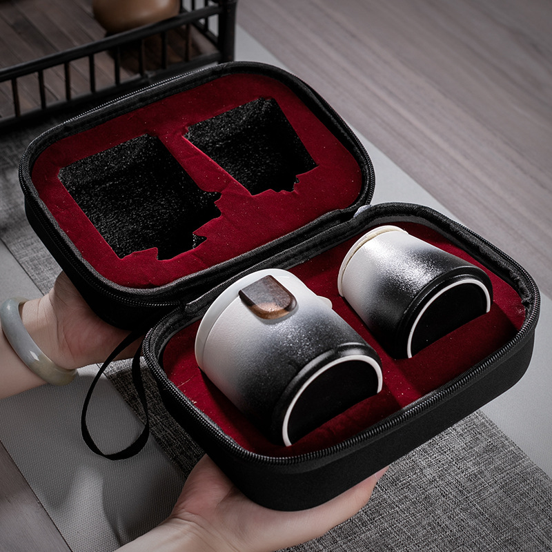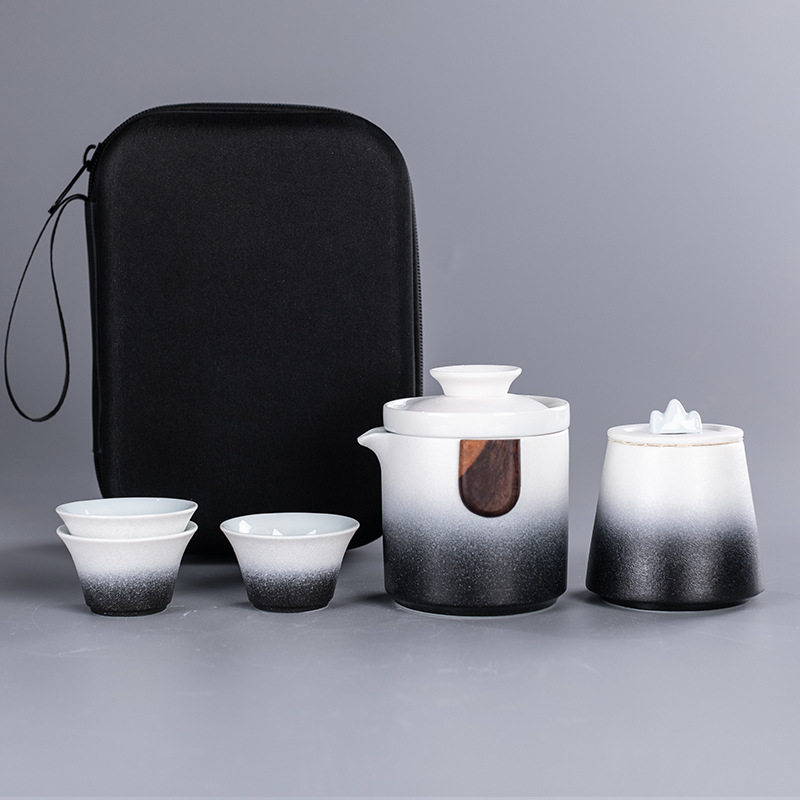 【日式旅行茶具套組】【漸變粗陶】日式手作一壺三杯帶茶葉罐漸變粗陶功夫茶具套組