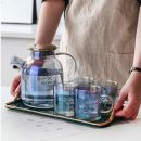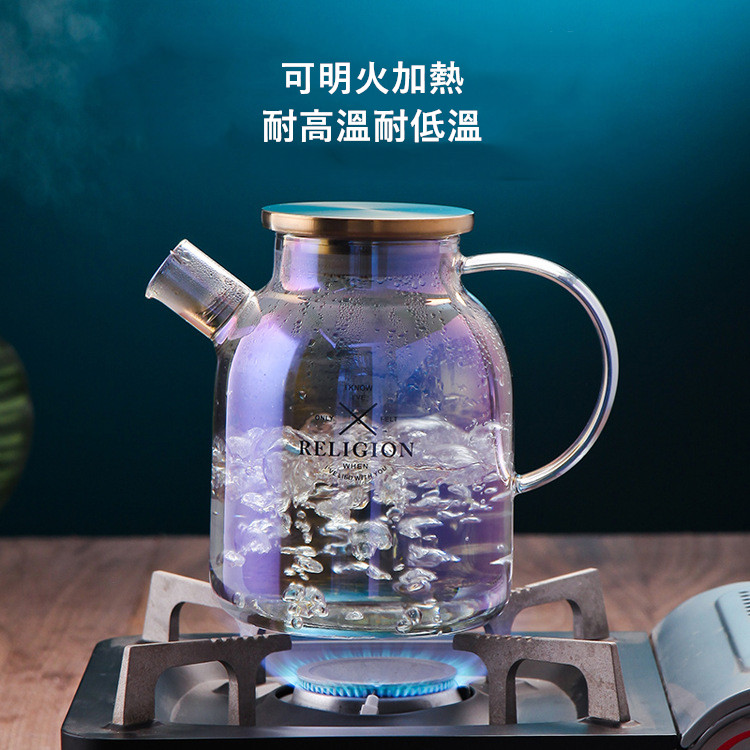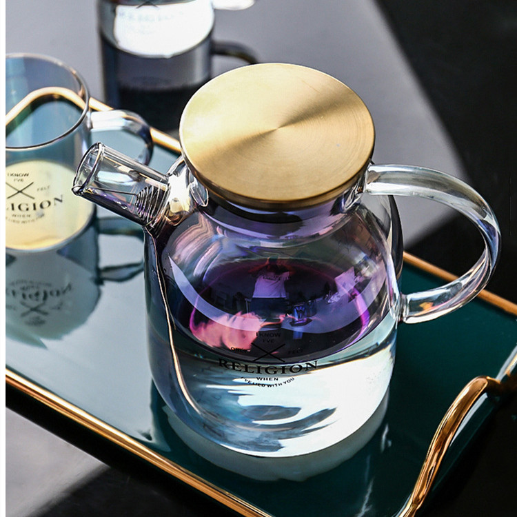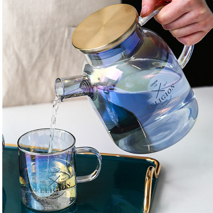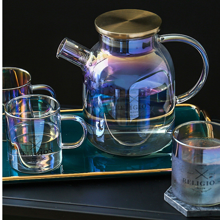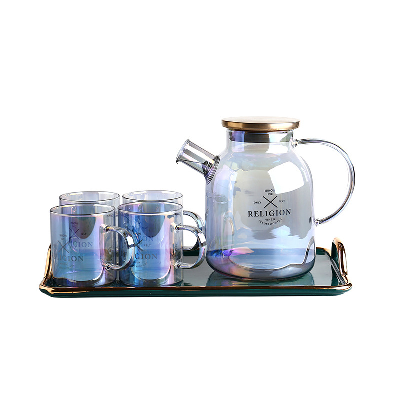 【美式幻彩水晶壺杯套組】【耐熱耐冷】高檔手工幻彩美式水晶玻璃可明火加熱一壺四杯茶器咖啡具套組