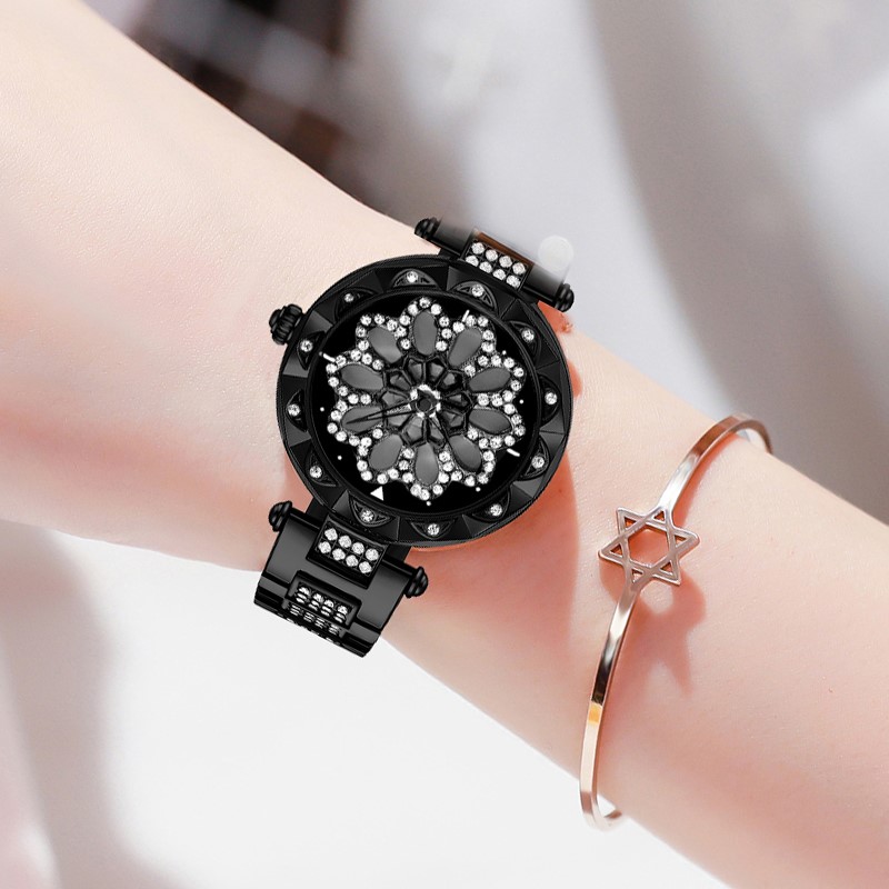 【時來運轉旋轉錶盤】【日本星辰機芯】【防水】ABORNY日本機芯高端輕奢時來運轉鑲鑽防水女手錶
