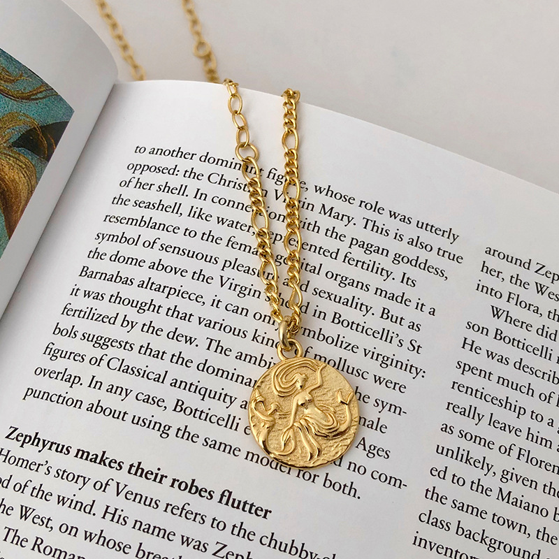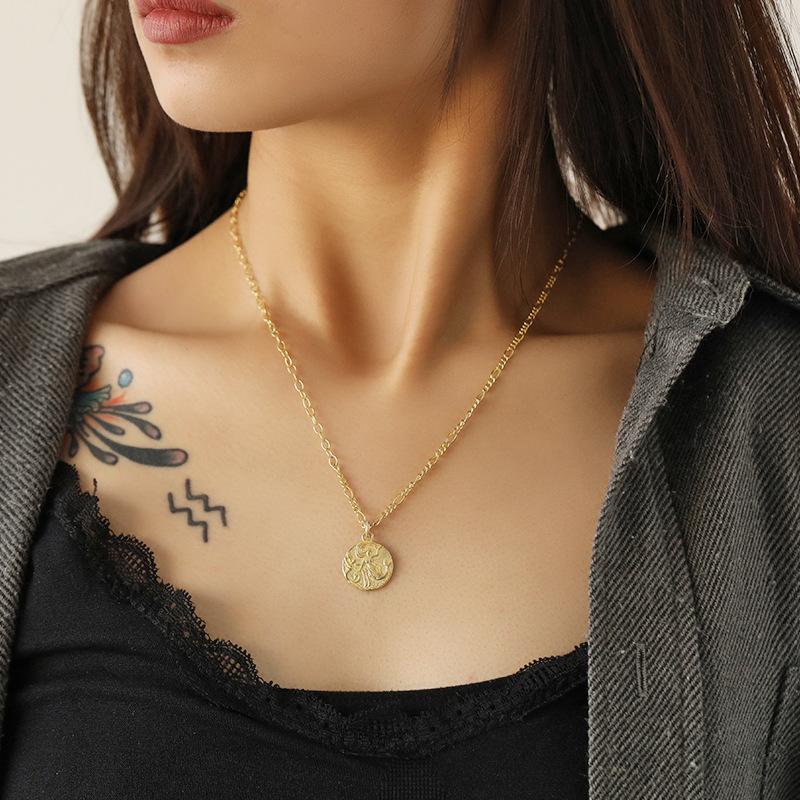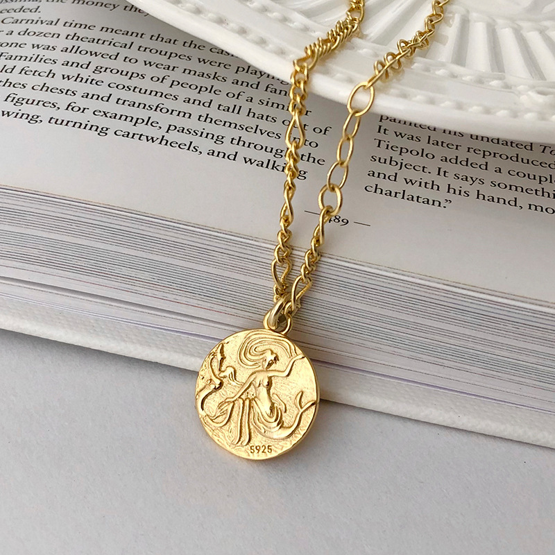 歐式宮廷風格輕奢復古s925純銀圓牌硬幣鎖骨鍊項鍊 (S925純銀 電鍍金)