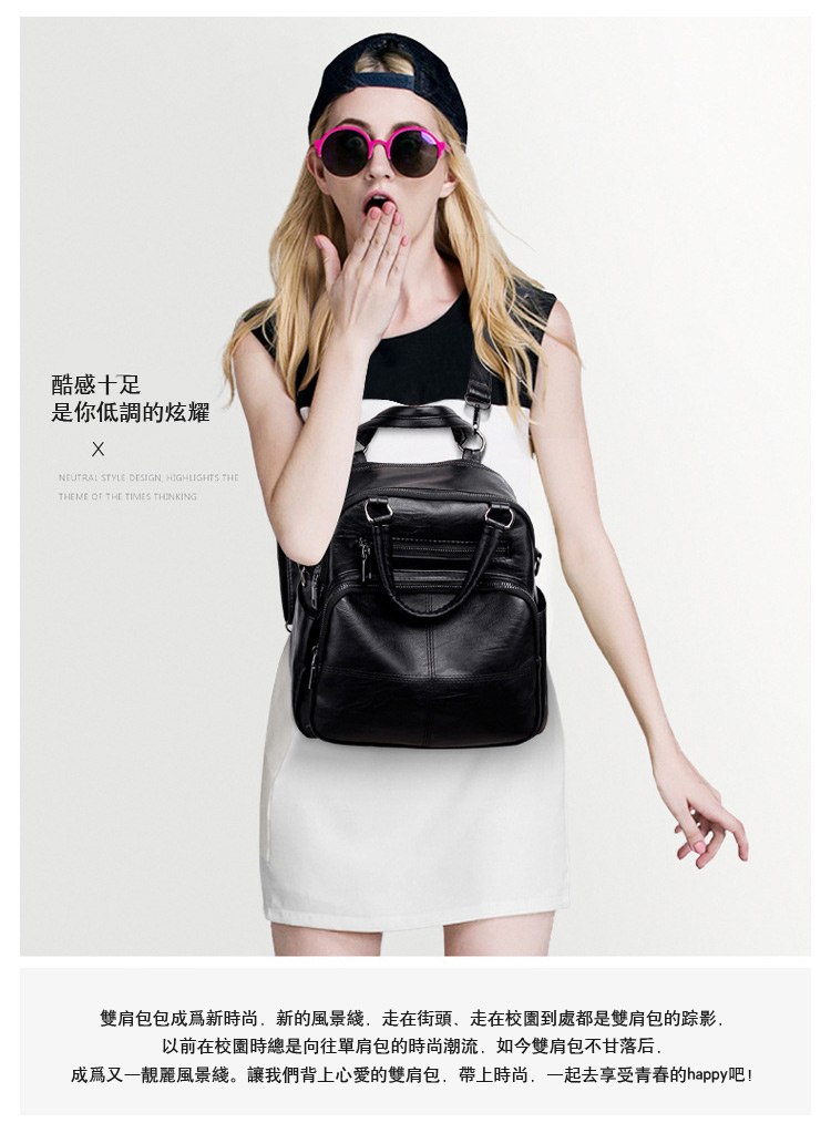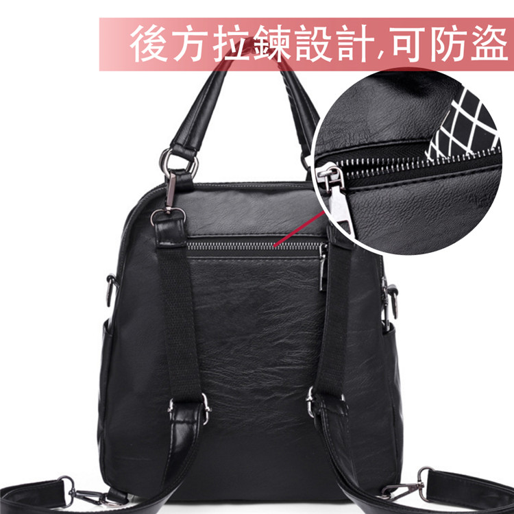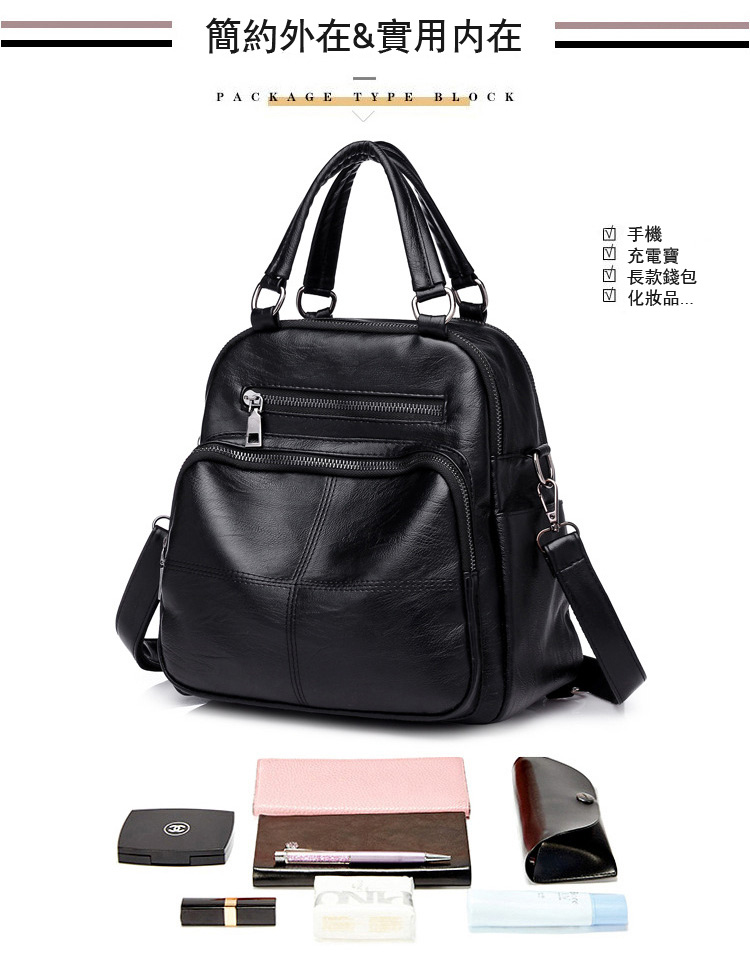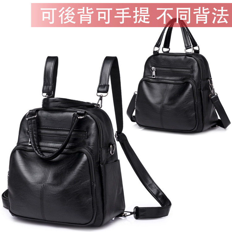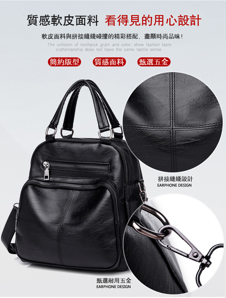 法式氣質個性純色質感水洗軟皮十字縫線大容量後背包