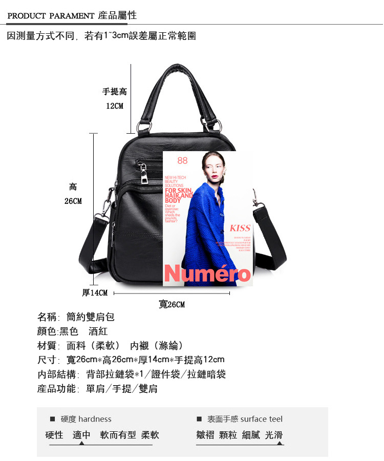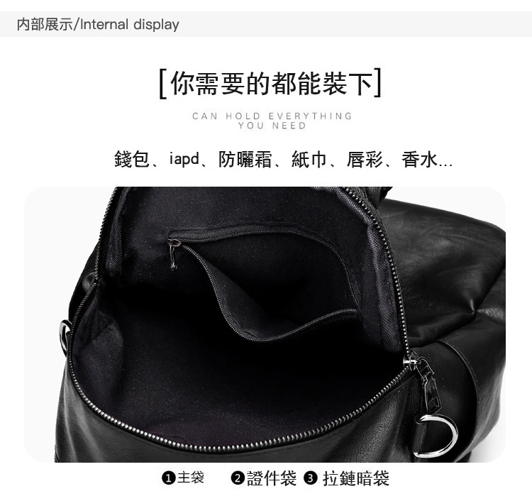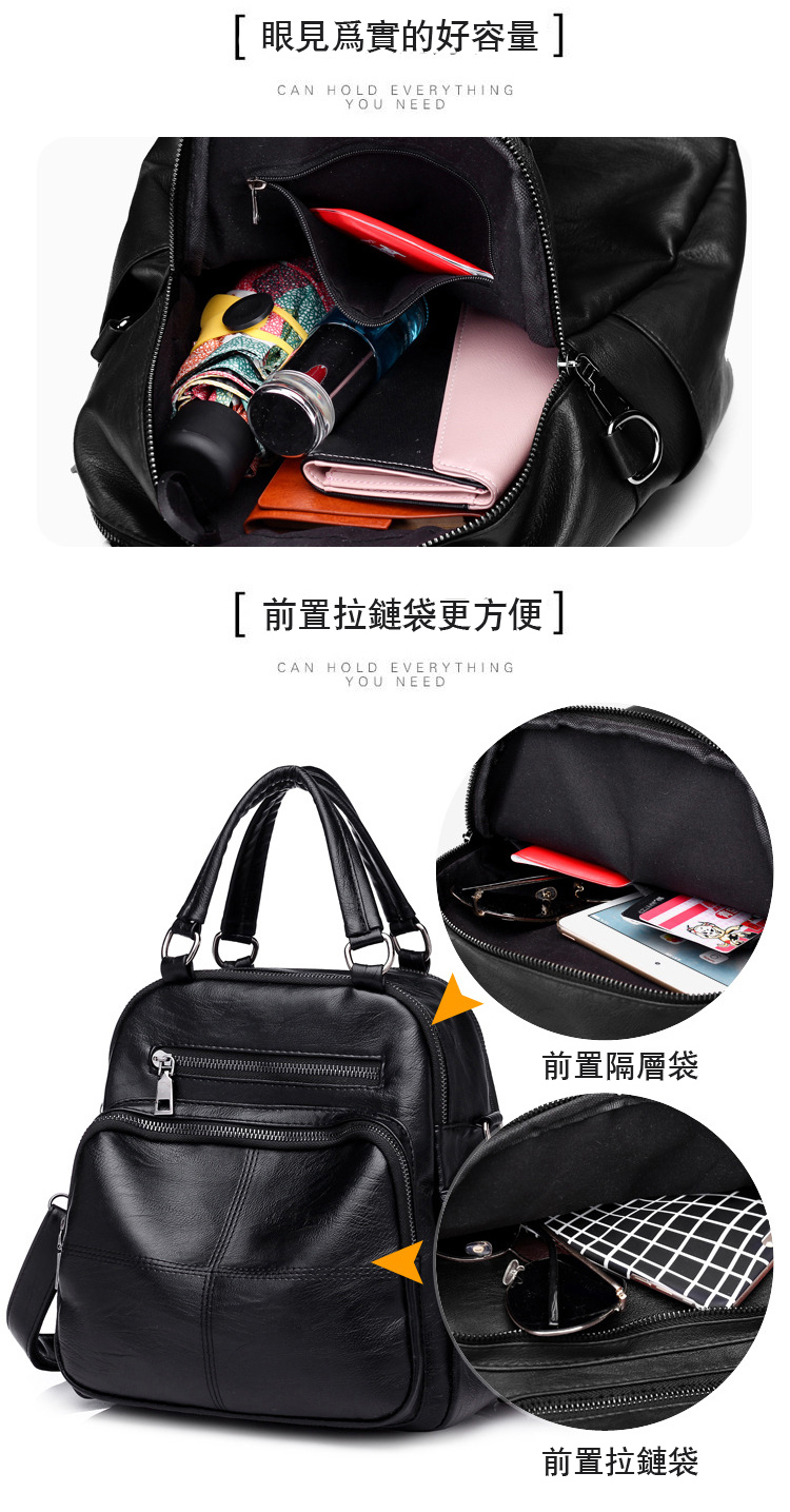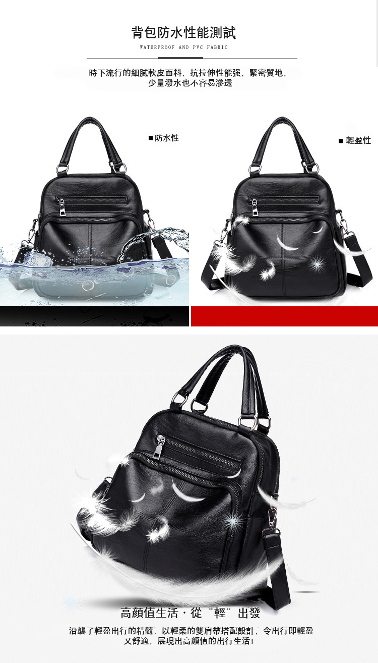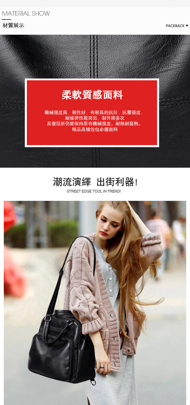 法式氣質個性純色質感水洗軟皮十字縫線大容量後背包