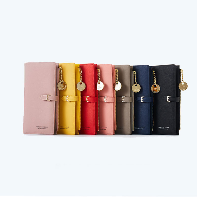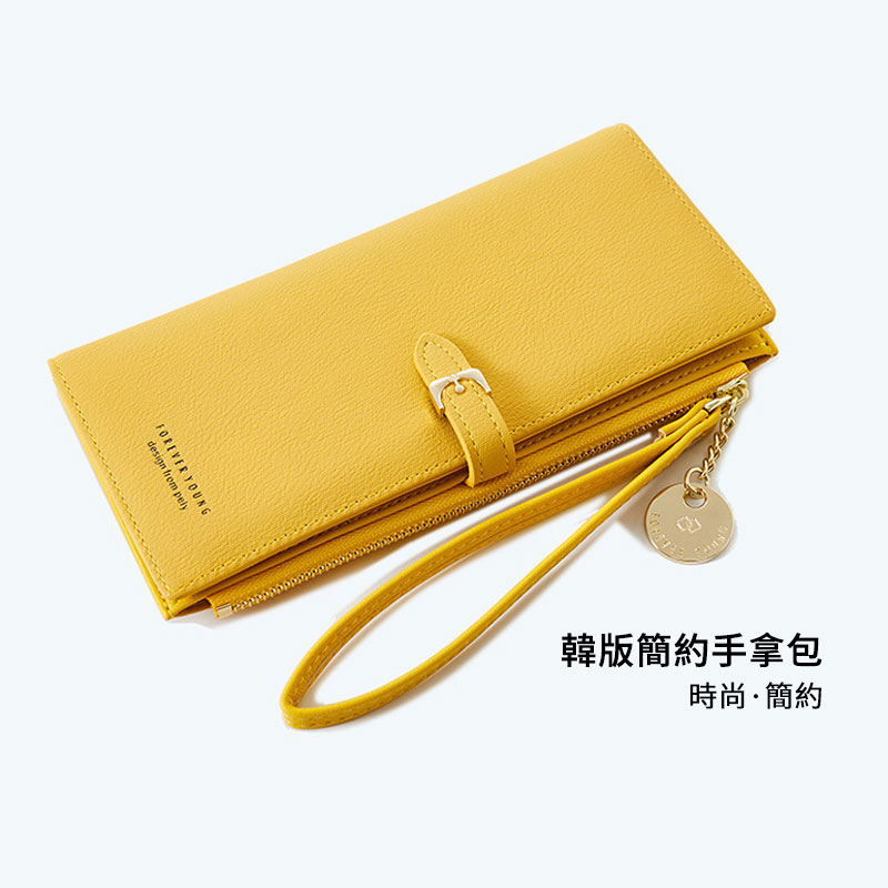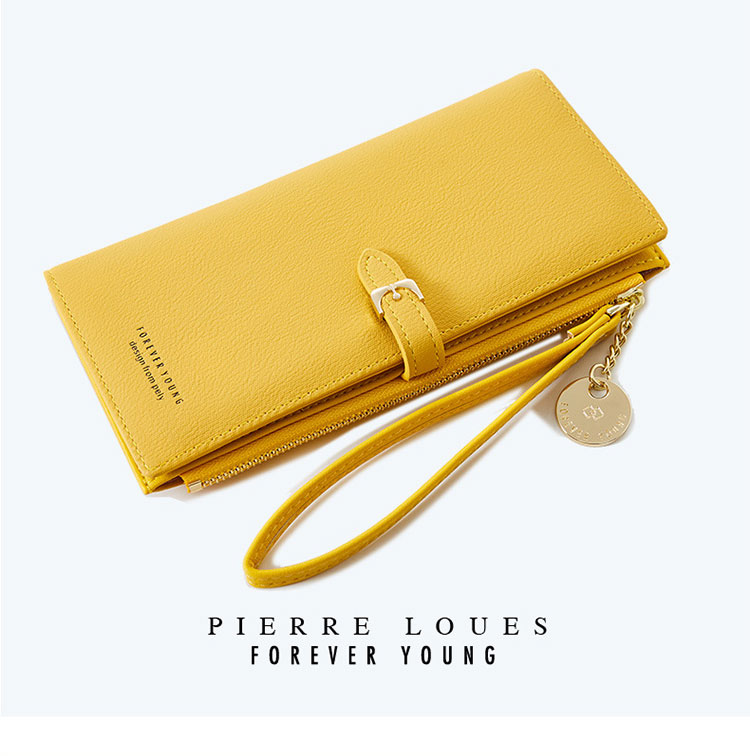 高級感PIERRE LOUES正韓純色百搭簡約荔枝紋理帶提手錢夾長夾