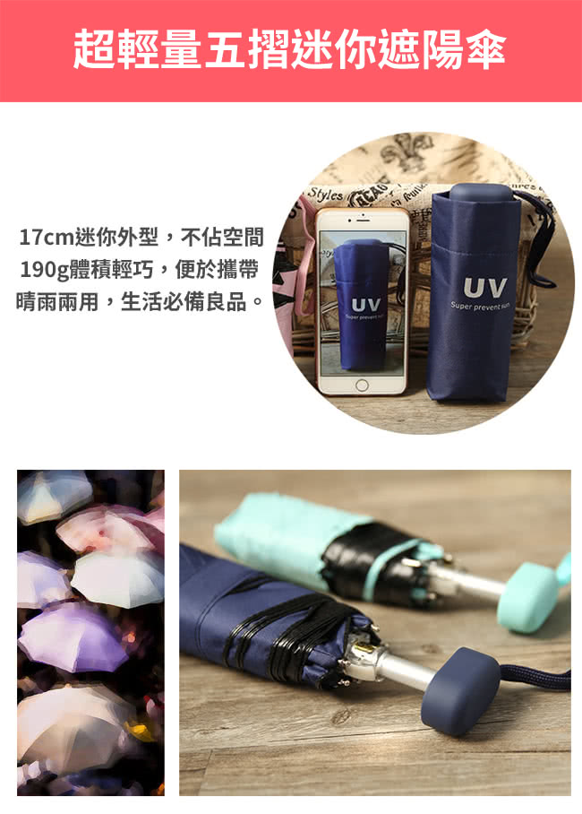 【超輕】日韓超火超美超輕抗UV小巧五摺傘黑膠隔熱款馬卡龍色