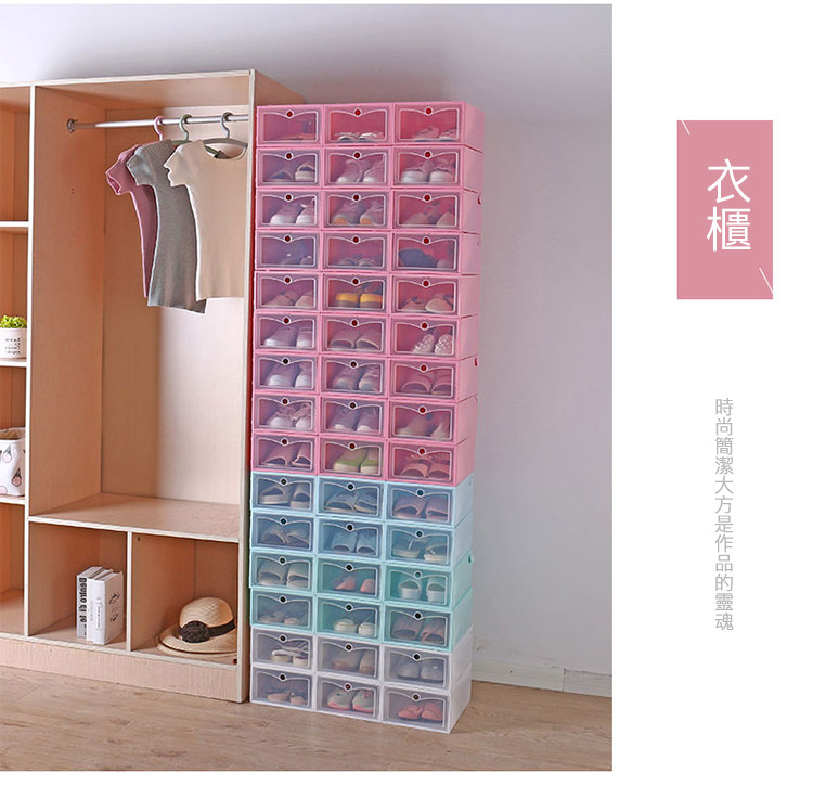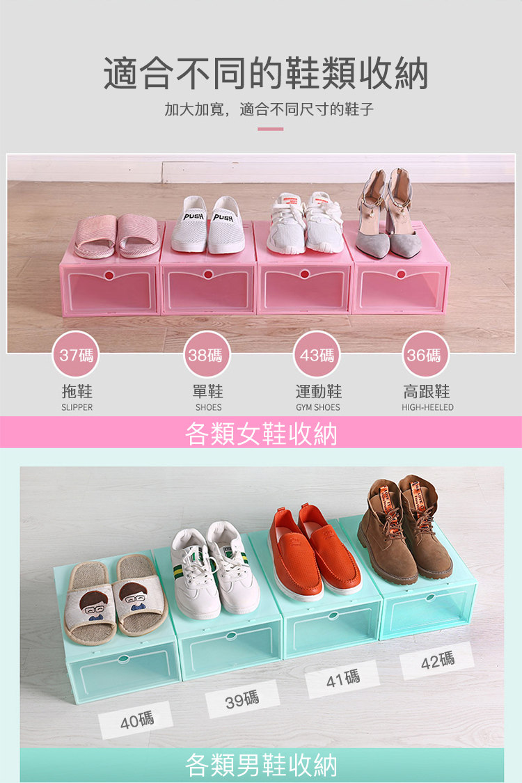 【六入】【DIY組合式收納鞋盒】日式設計透明創意DIY組合抽屜式收納鞋盒