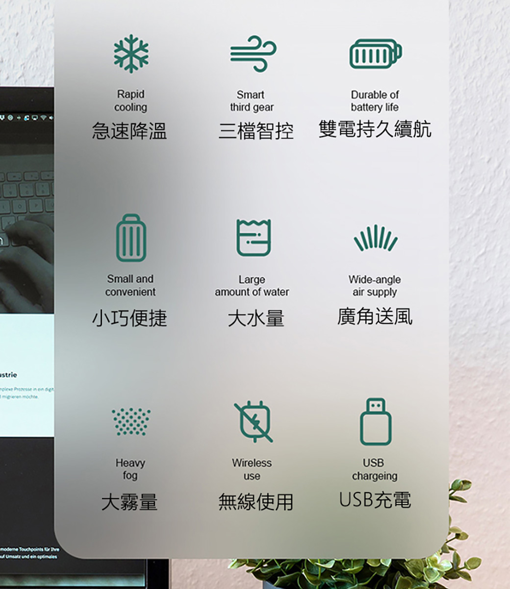 【極速廣角降溫】【無線超便攜】【雙電芯持久續航】【三檔智控】桌面水冷式無線便攜移動空調水冷扇迷你冷氣機
