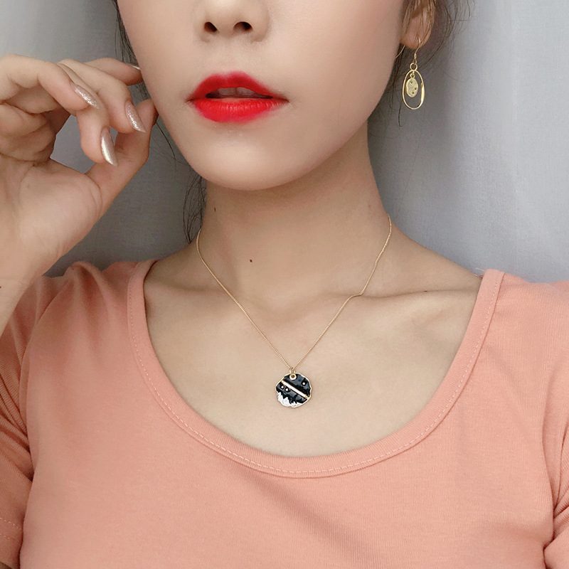 S925純銀鍍金輕奢設計師款星辰大海吊墜手工項鍊鎖骨鍊 (925純銀)