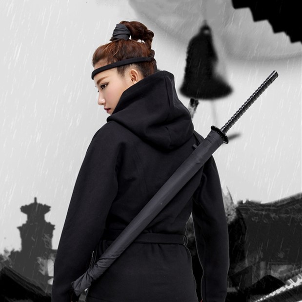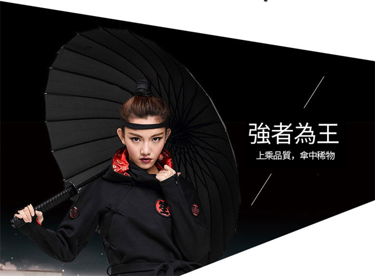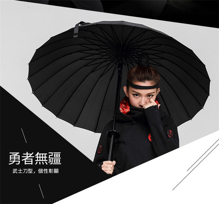 【日式武士刀傘】【堅韌24骨】【暴雨級】【一鍵開啟】24骨強韌抗風擋雨武士刀造型長柄雨傘