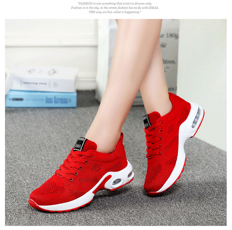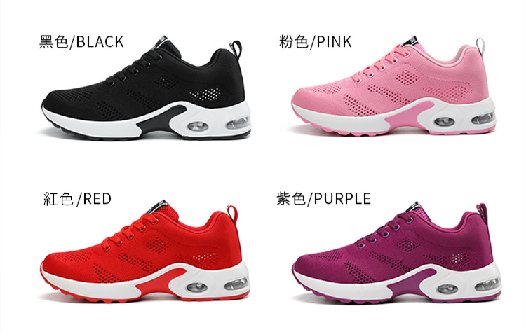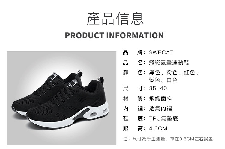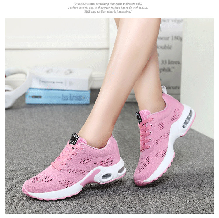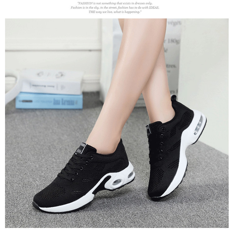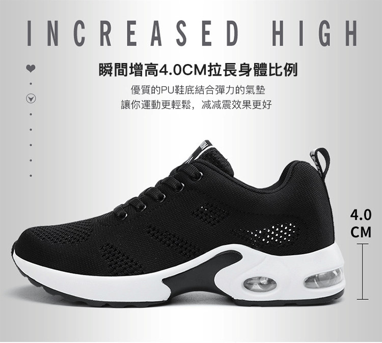 【緩震氣墊運動健身鞋】【透氣飛織鞋面】【4cm跟高】原創設計舒適厚底顯瘦氣墊緩震飛織透氣健身運動女鞋