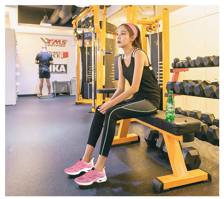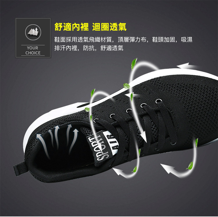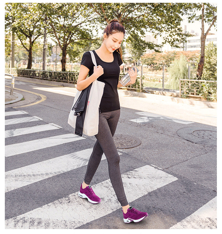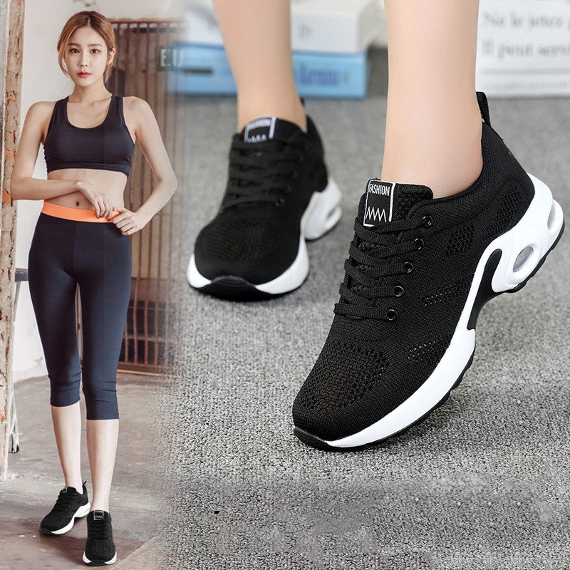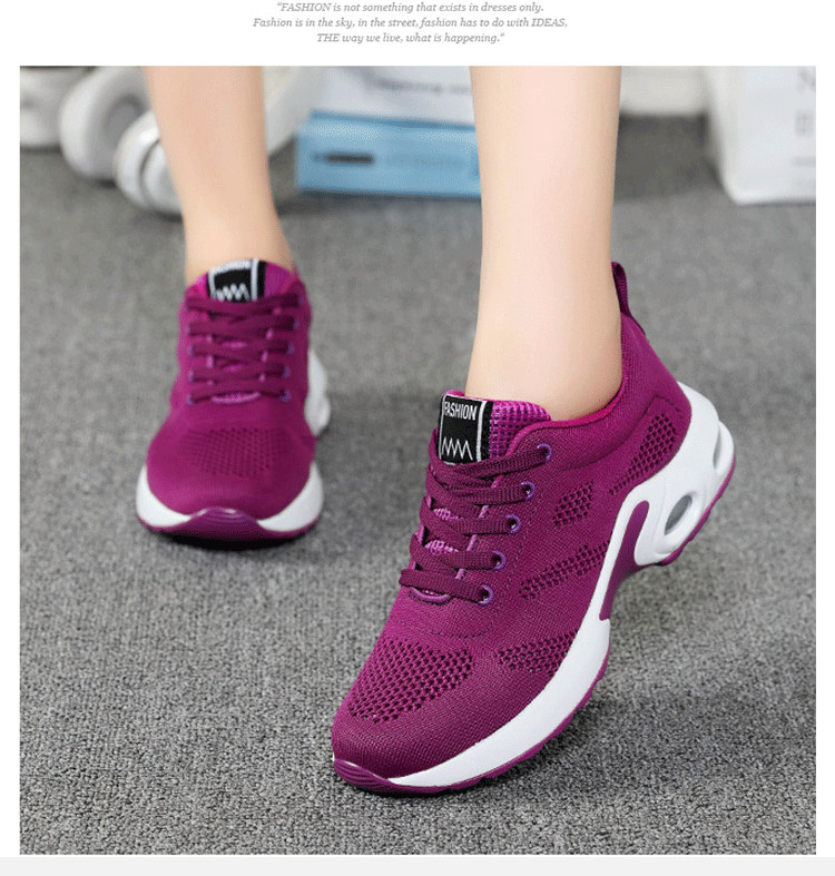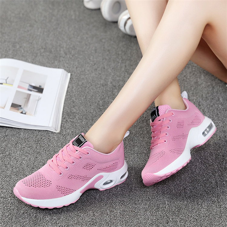 【緩震氣墊運動健身鞋】【透氣飛織鞋面】【4cm跟高】原創設計舒適厚底顯瘦氣墊緩震飛織透氣健身運動女鞋