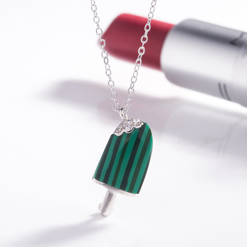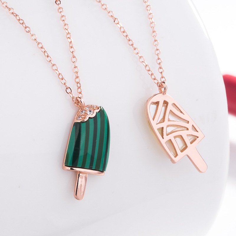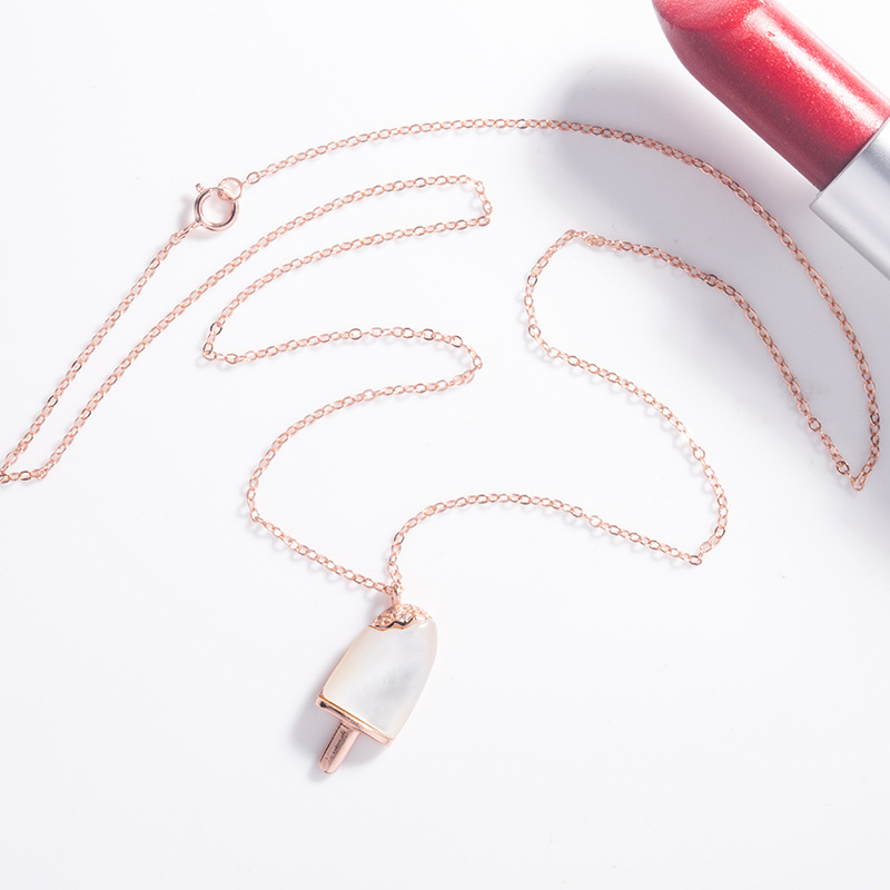 S925純銀輕奢可愛夏天的味道雪糕冰激凌造型吊墜項鍊鎖骨鍊