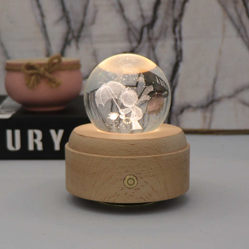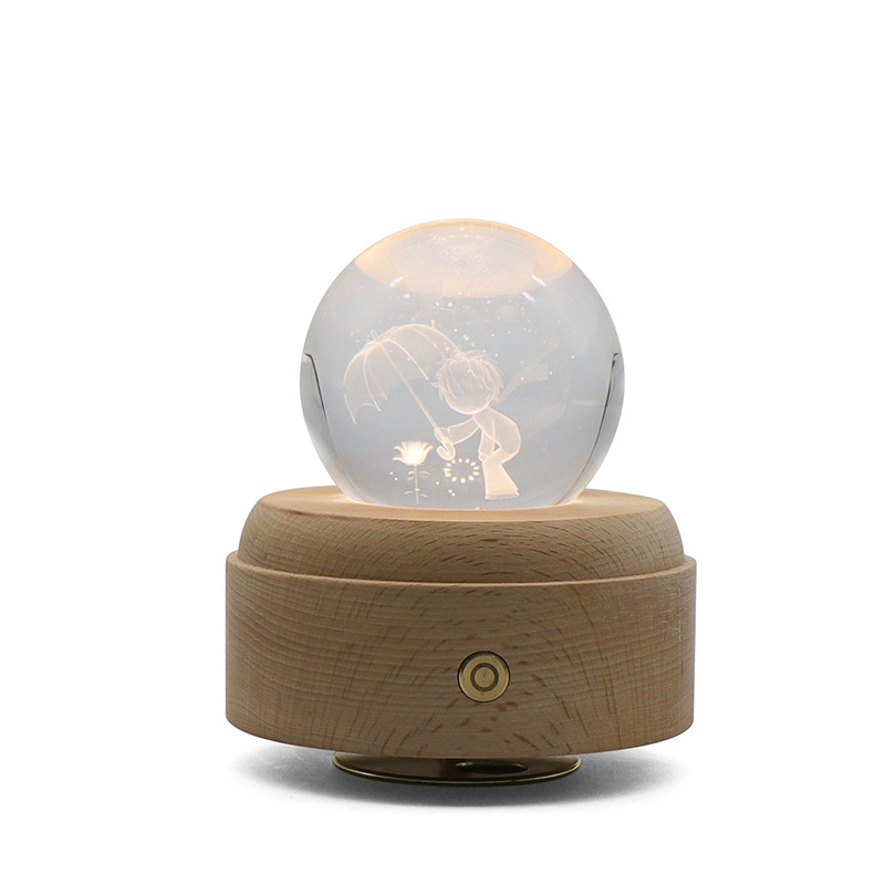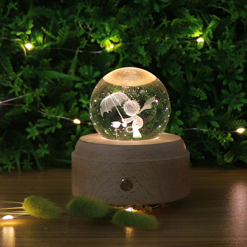 【3D小王子旋轉音樂盒】【水晶球小夜燈】【櫸木底座】日本Sankyo機芯USB鋰電式夢幻3D麋鹿水晶球音樂盒小夜燈
