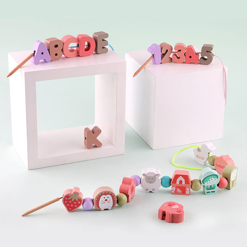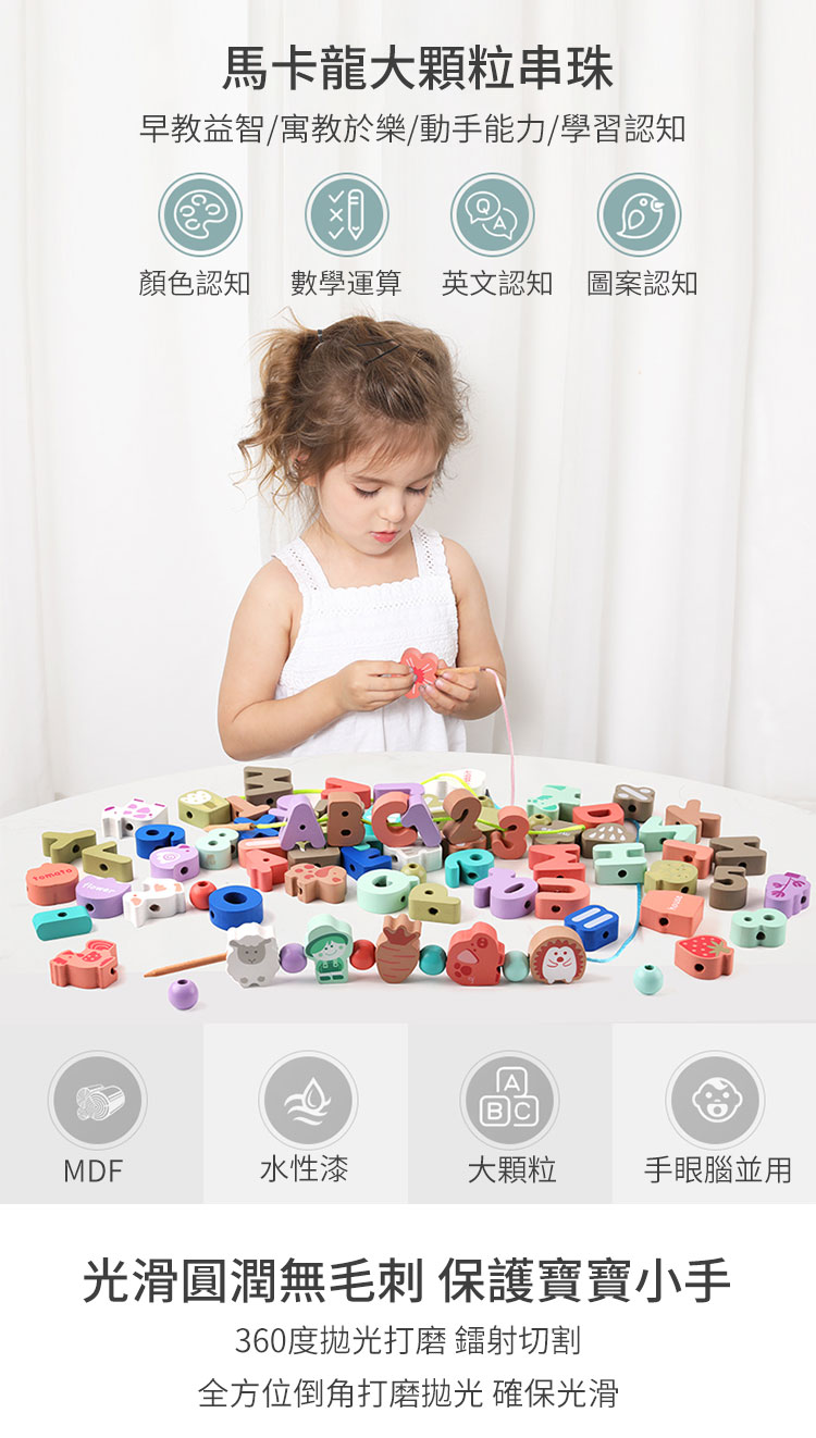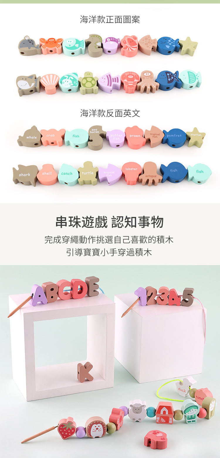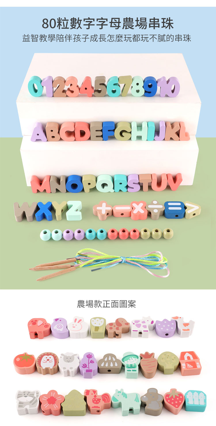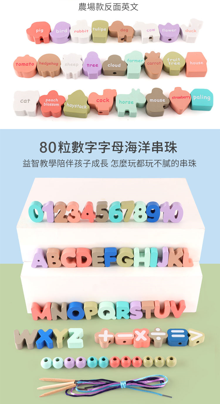 【80粒益智串珠積木豪華套組】【全環保材質】兒童趣味益智80粒馬卡龍色字母數字農場海洋動物積木串珠玩具套組