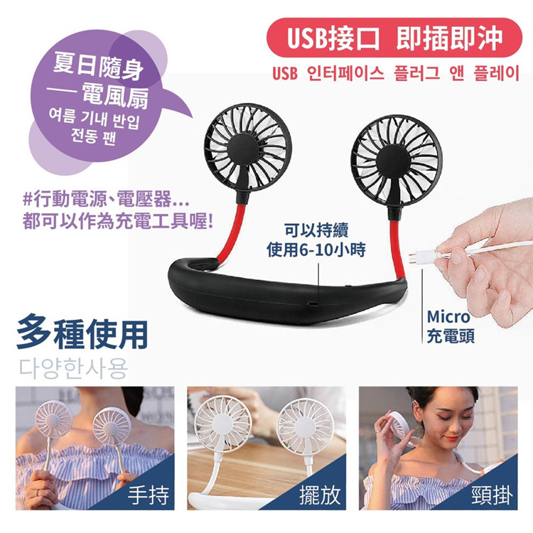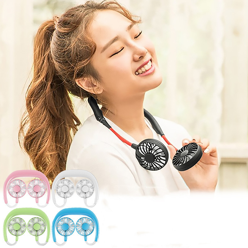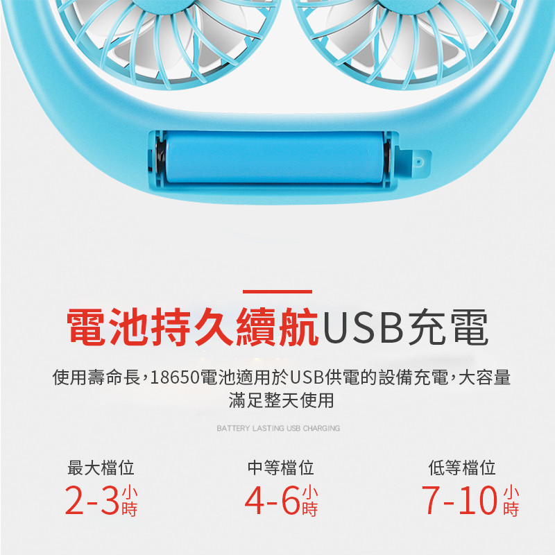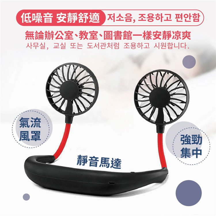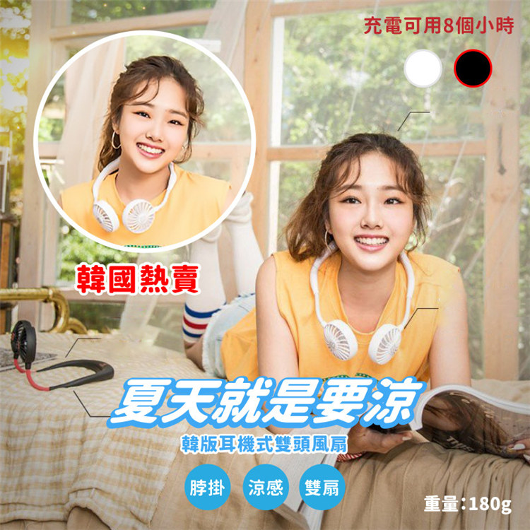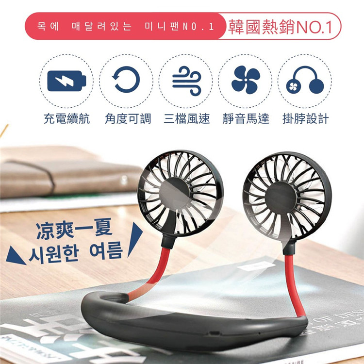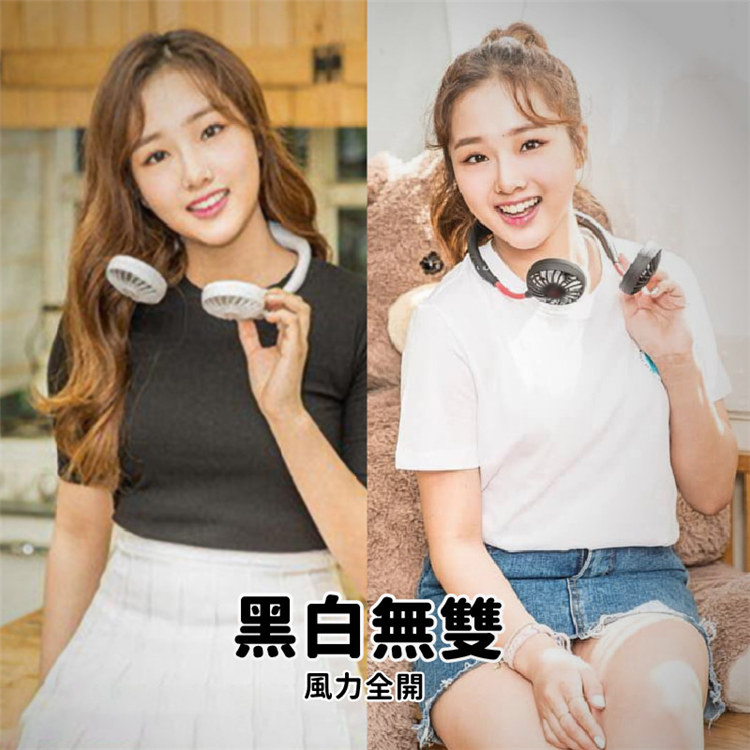 【韓國熱銷NO.1】【懶人掛脖風扇】日韓熱賣時尚掛脖雙風扇懶人USB充電運動隨身風扇