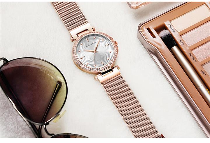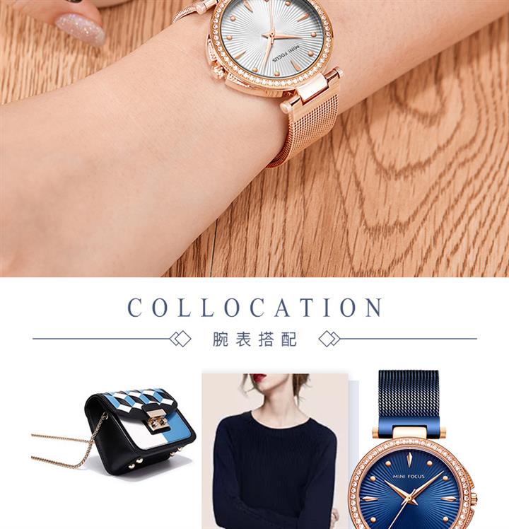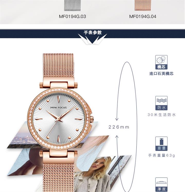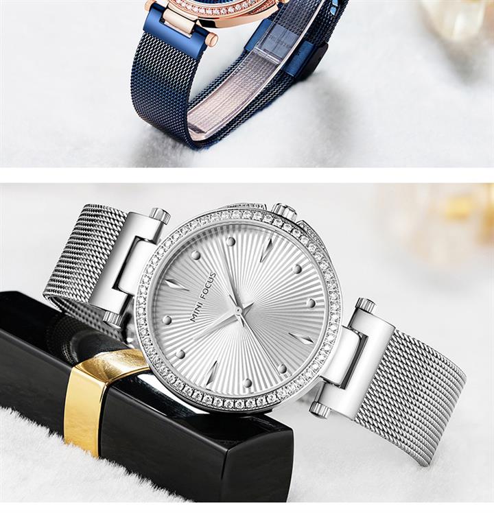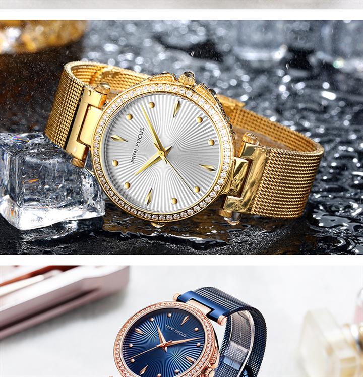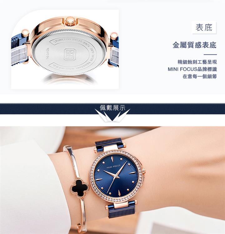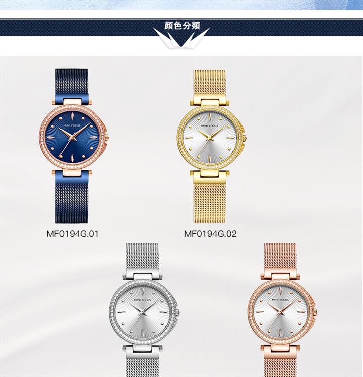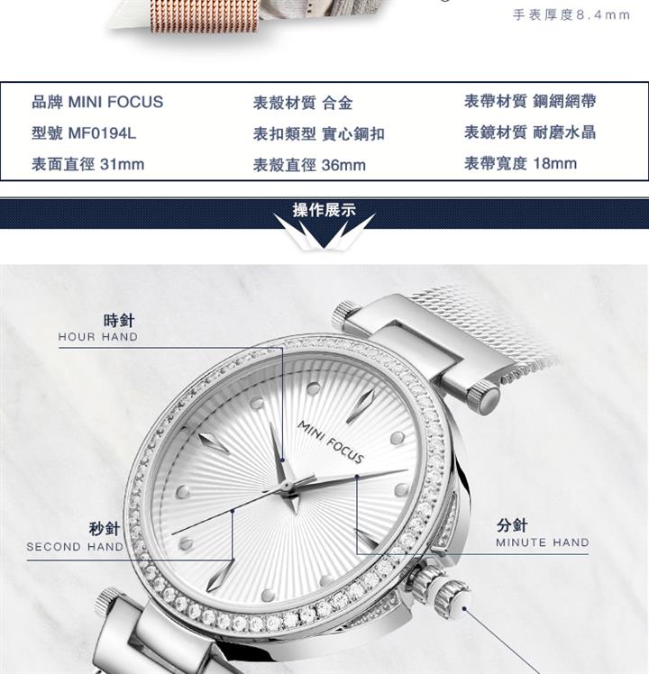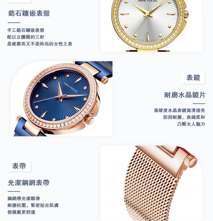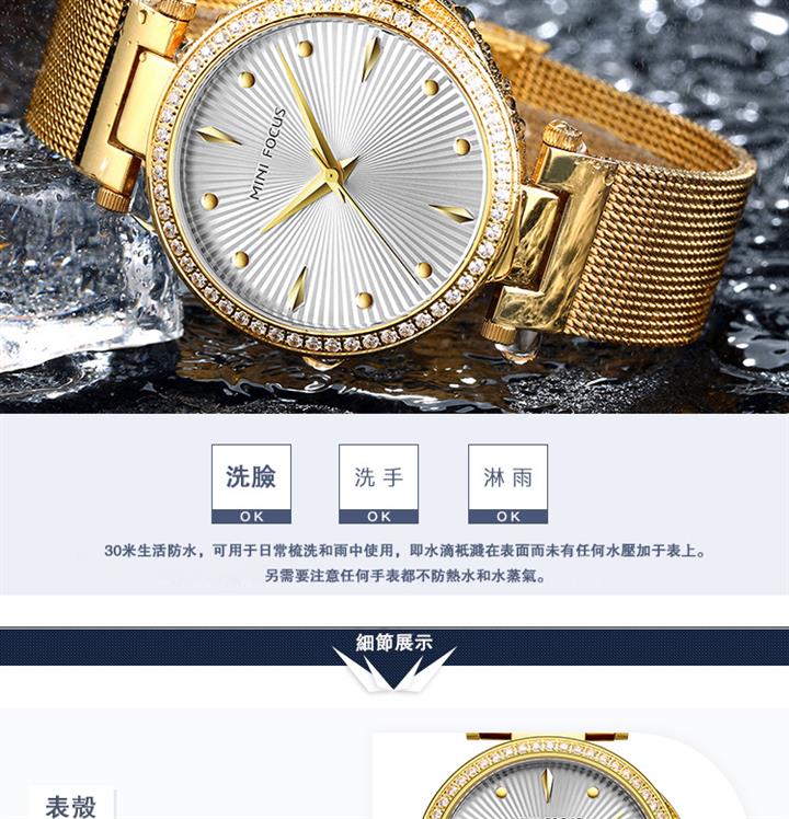 【鑲鑽圓盤】【米蘭網帶】【防水】MINI FOCUS高級感鑲鑽太陽紋小圓盤米蘭網帶優雅女士手錶