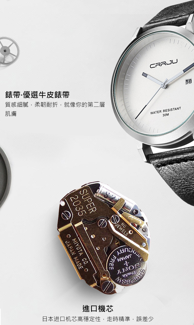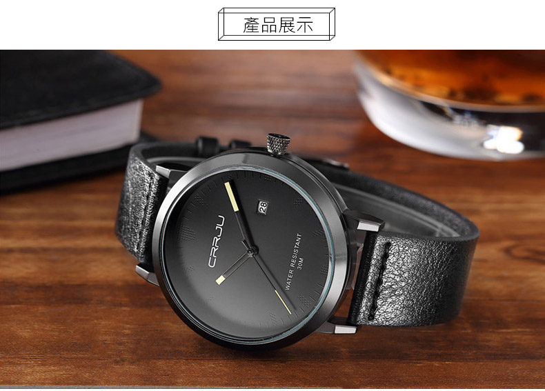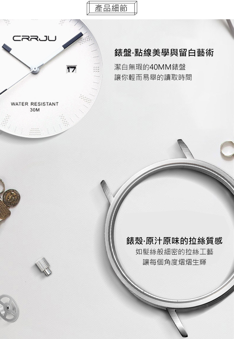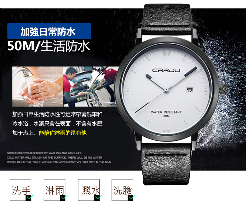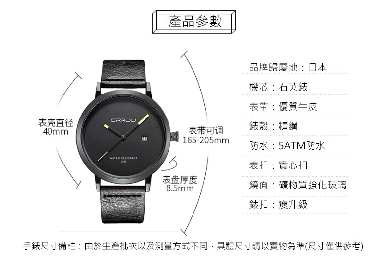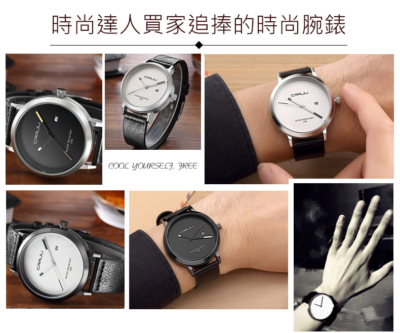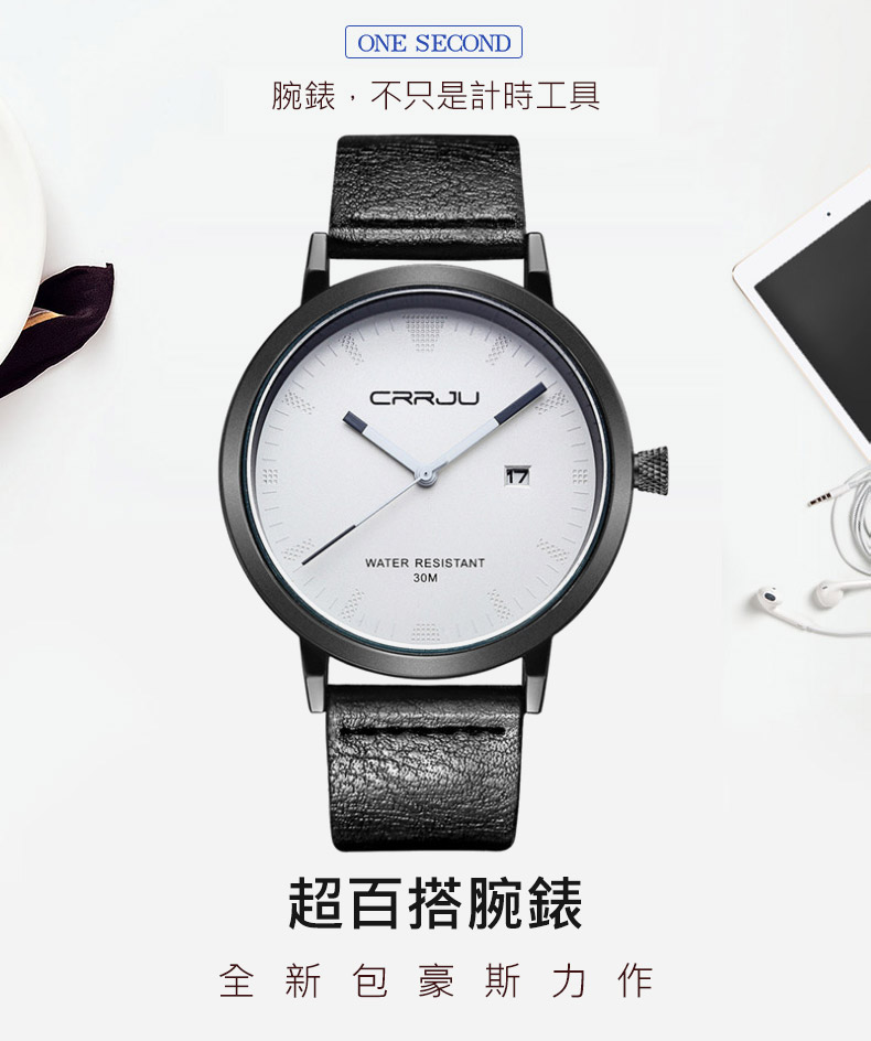 【日式原宿】【防水】CRRJU日式純色氣質簡約原宿圓盤皮帶時尚手錶