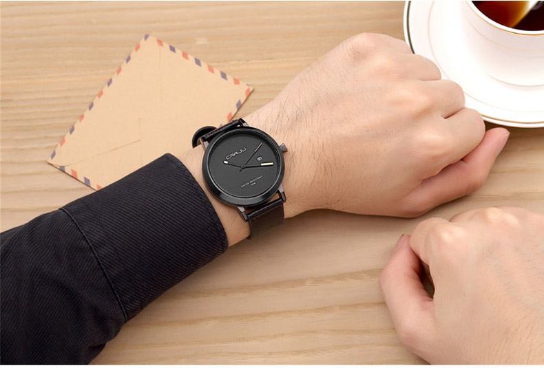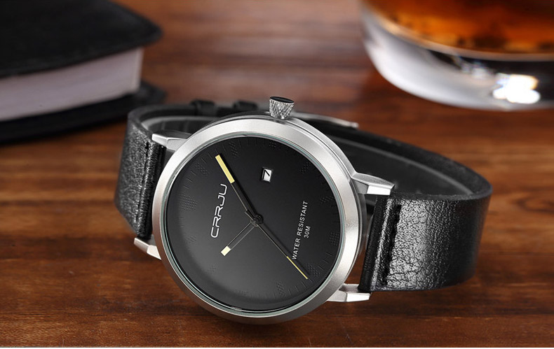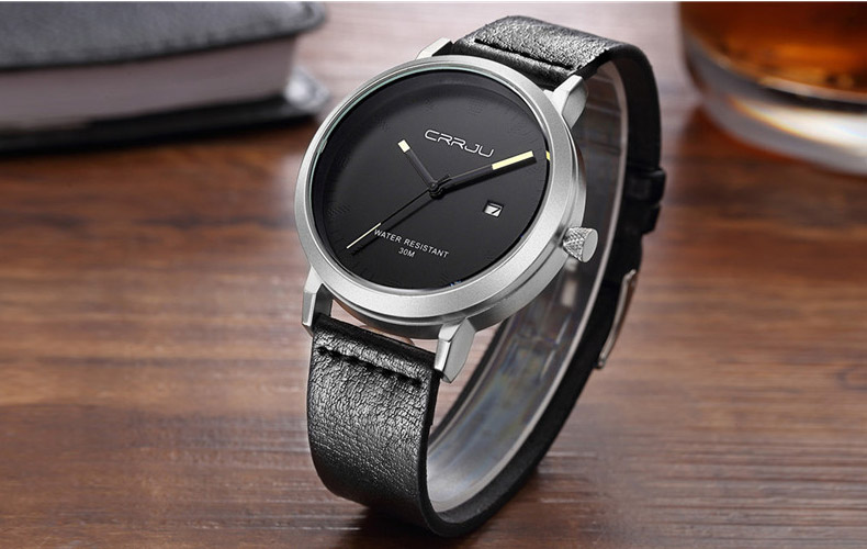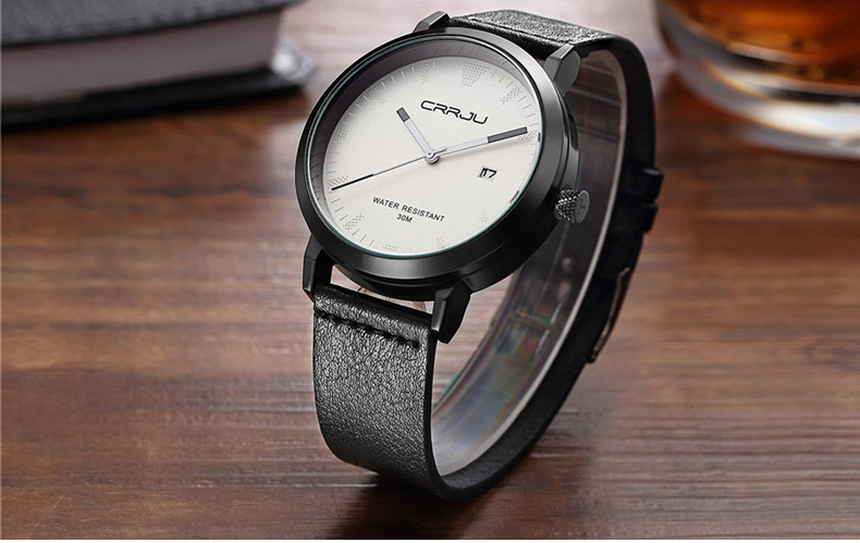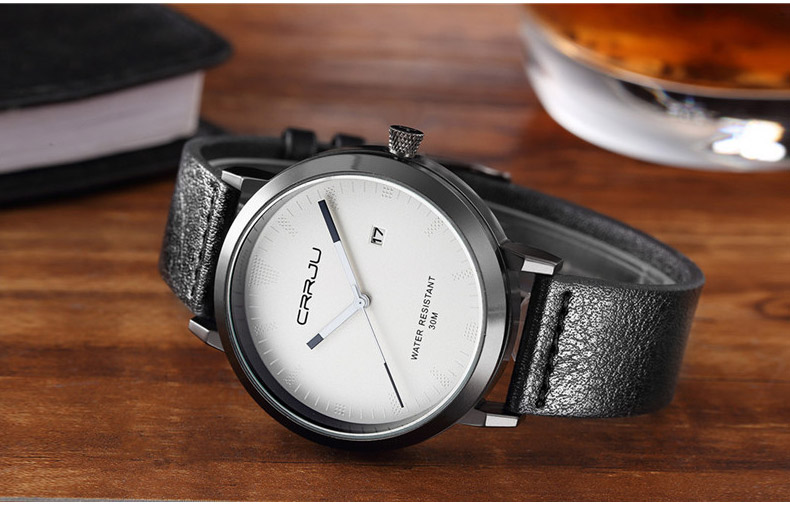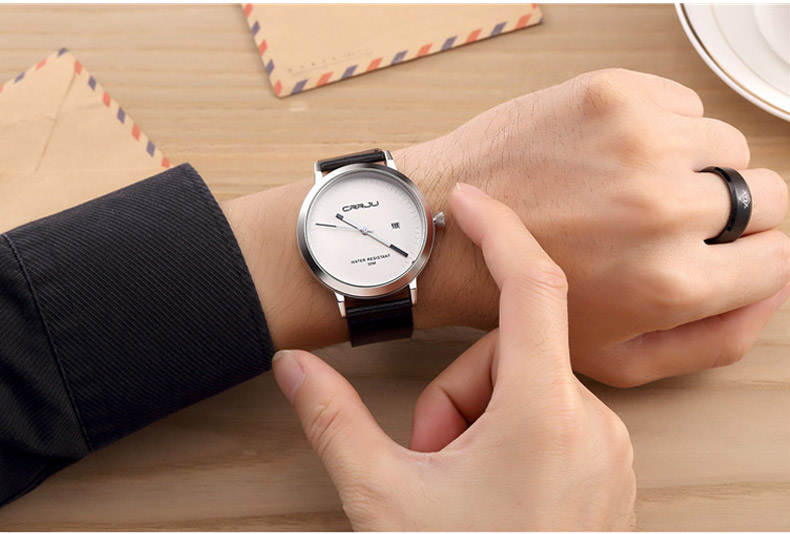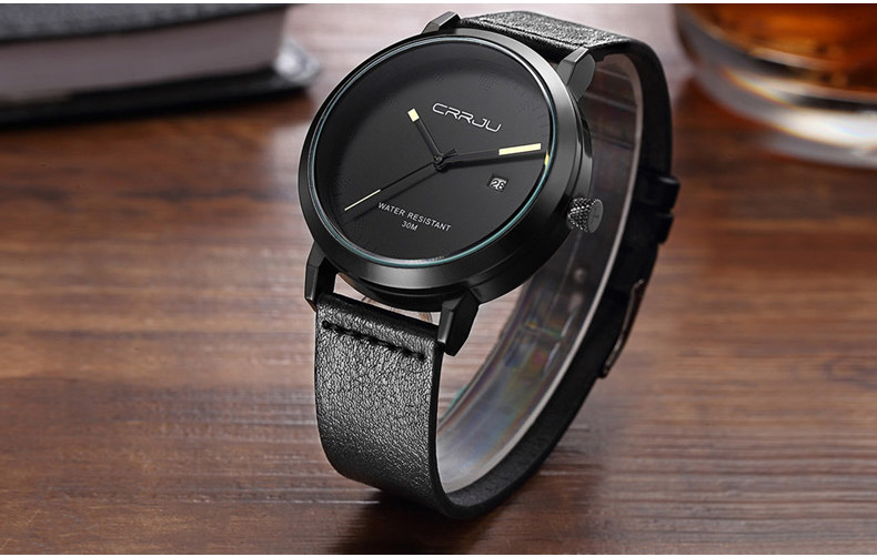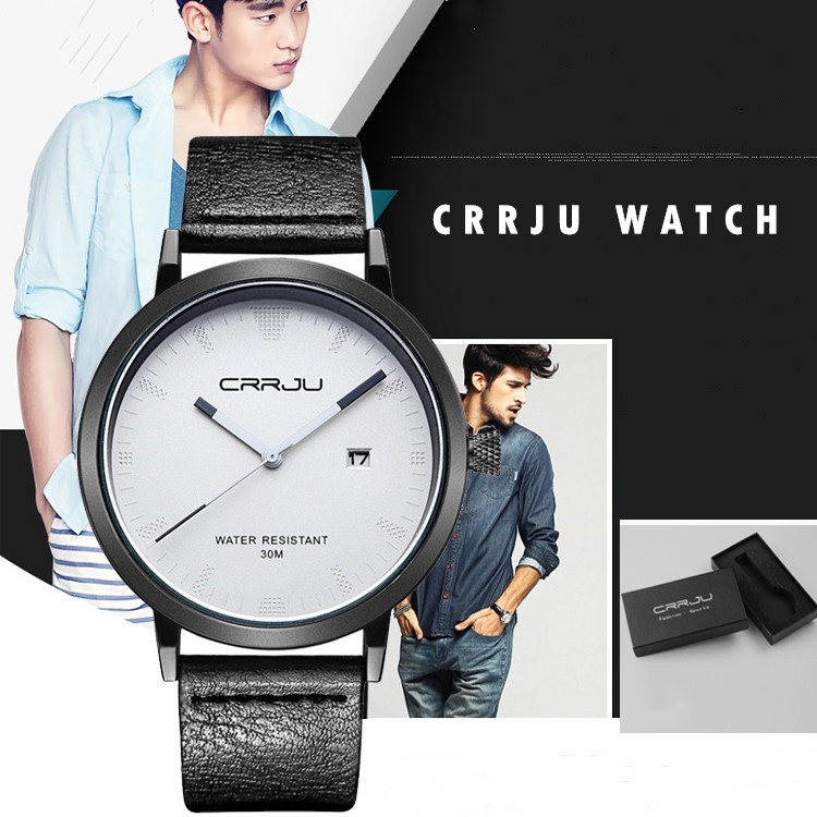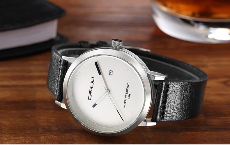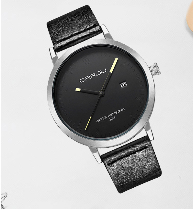 【日式原宿】【防水】CRRJU日式純色氣質簡約原宿圓盤皮帶時尚手錶
