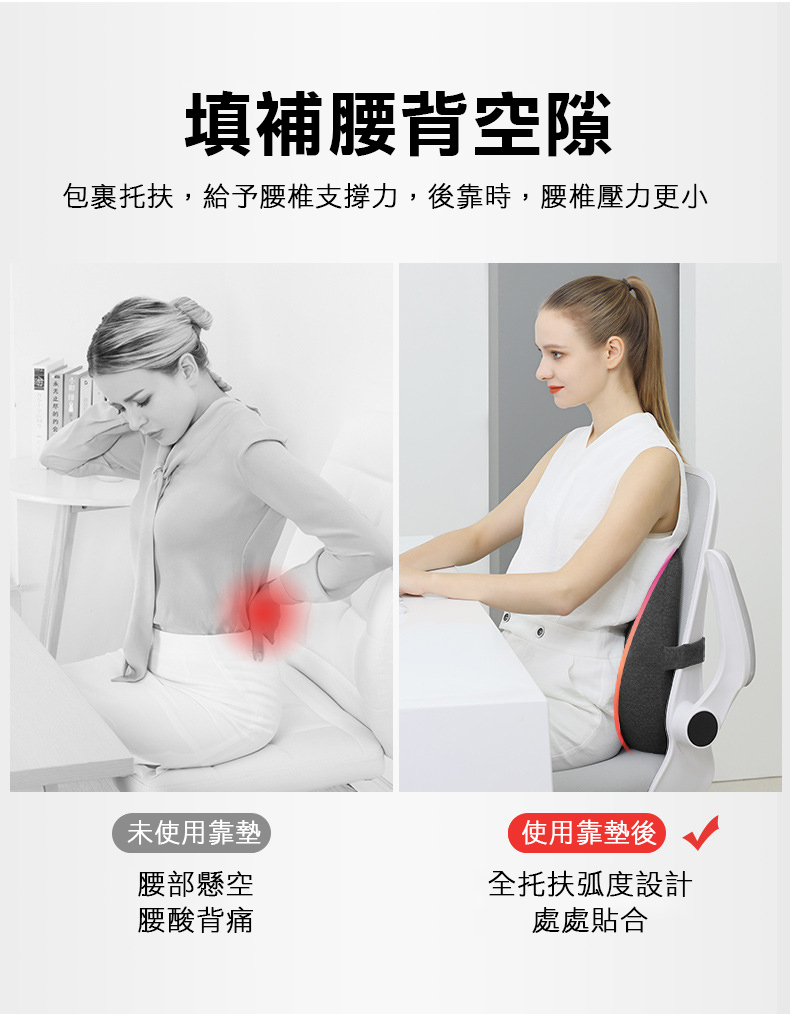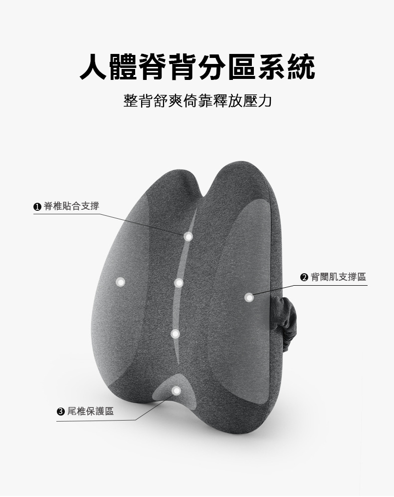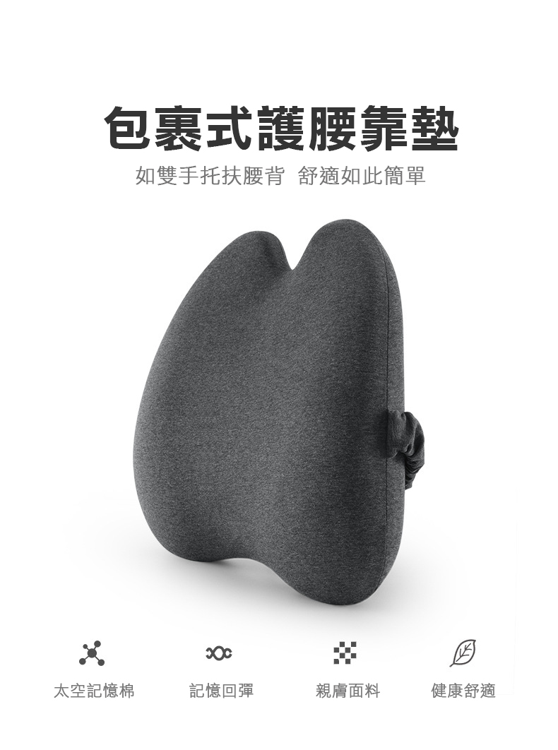 包裹式護腰靠墊 | 脊背分區呵護支撐 | NASA級太空記憶棉 | 高彈綁帶固定 | 人體工學設計包裹式分區支撐系統太空記憶棉靠墊座椅靠背腰靠