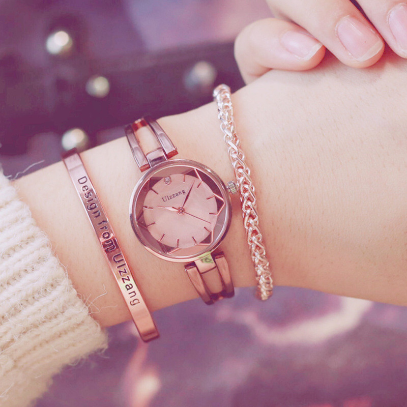 【鑽石切割錶盤】【玫金手鐲錶帶】【贈送手鍊手環】小資氣質OL風格簡約百搭全金屬小圓盤女手鍊手環手錶禮盒