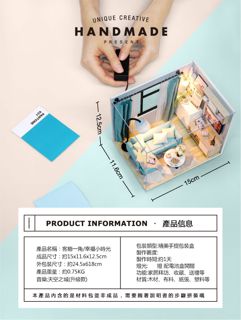 【DIY手工拼裝積木小屋】【帶音樂機芯】日本熱銷創意禮物DIY手作甜蜜音樂積木小屋
