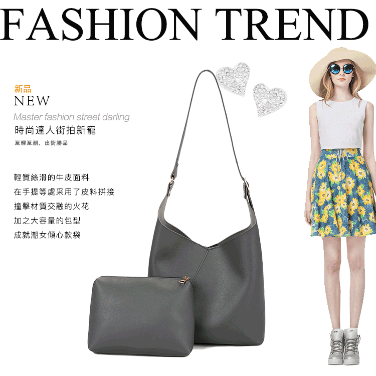 【韓版簡約】氣質韓版簡約皮料拼接肩背包