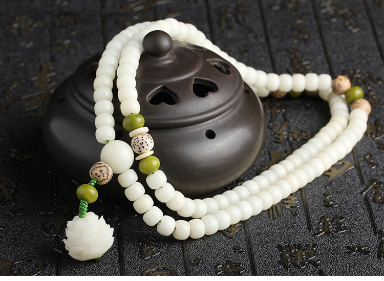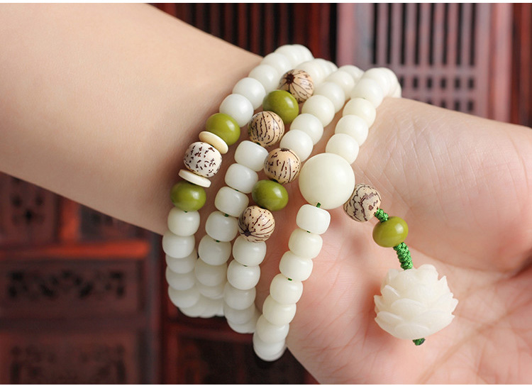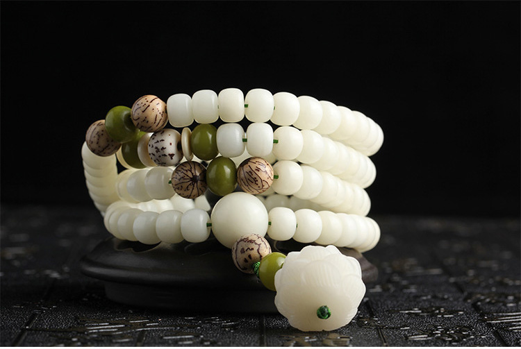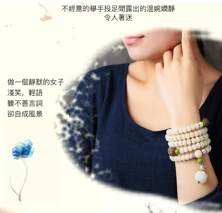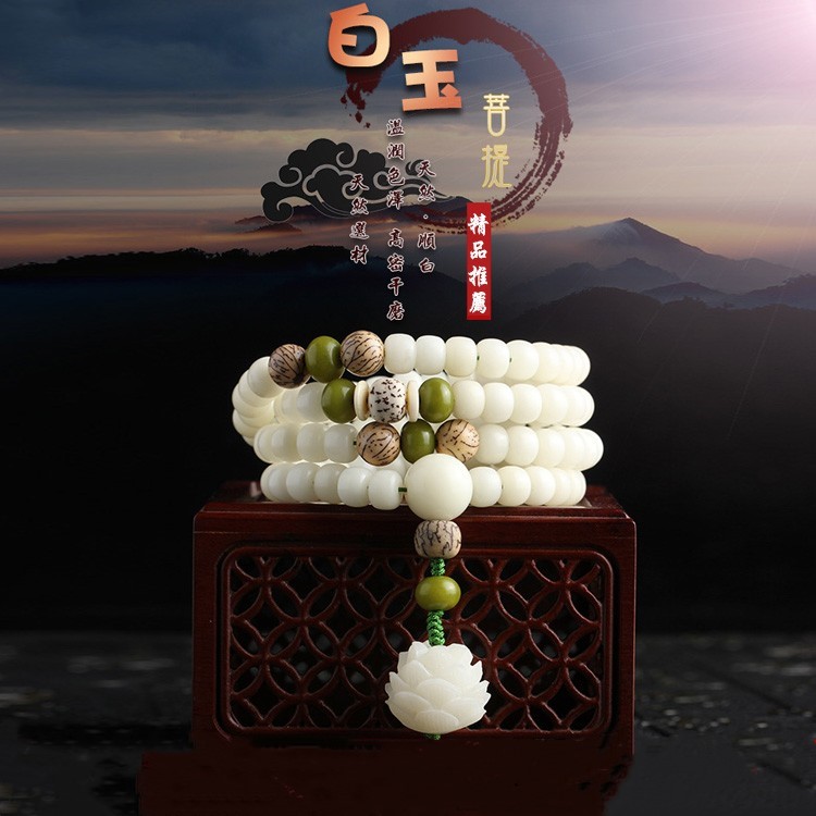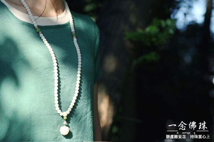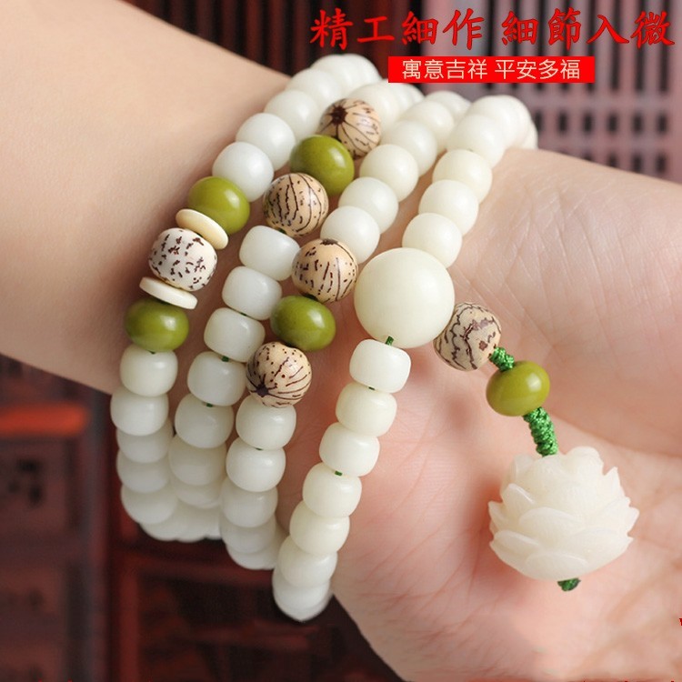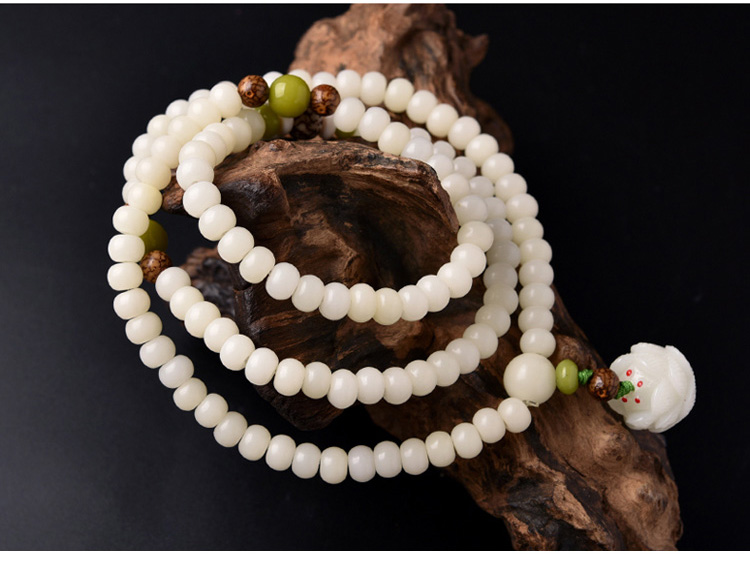 【108顆白玉菩提念珠】【福佑平安】珍品溫潤108顆天然白玉菩提多圈念珠佛珠手串