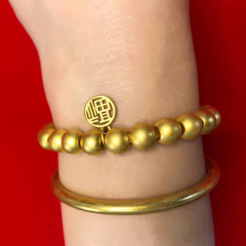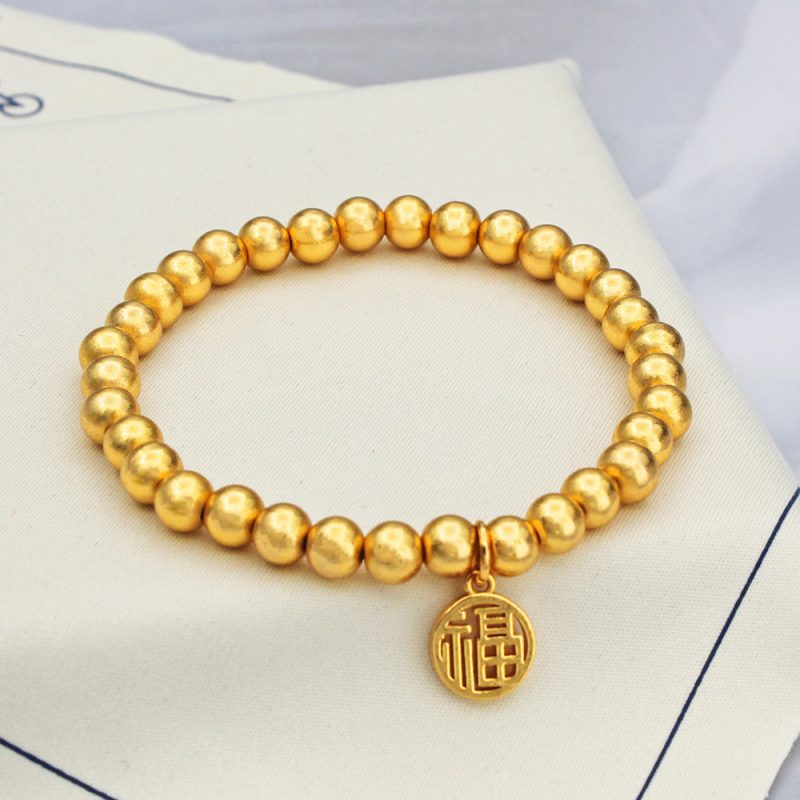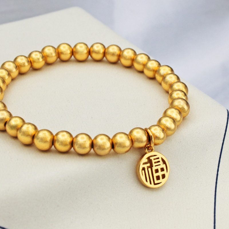 納福開運 | 黃銅鍍24K黃金 | 5D硬金古法壓鑄工藝福字日常平替女手鍊