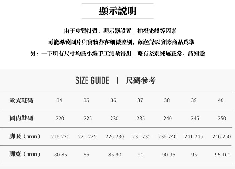 | 尺碼 | 35, 36, 37, 38, 39 |