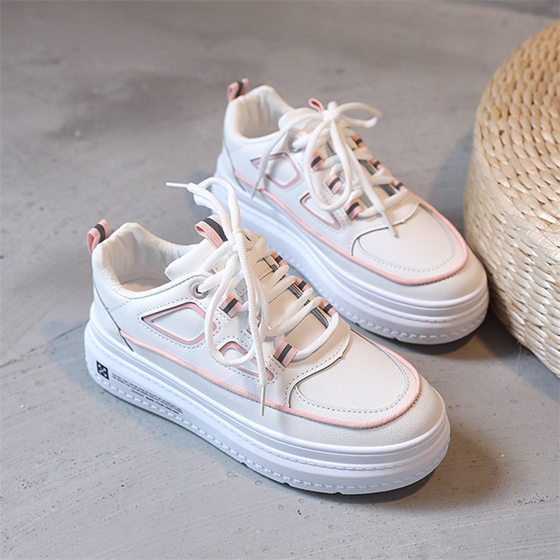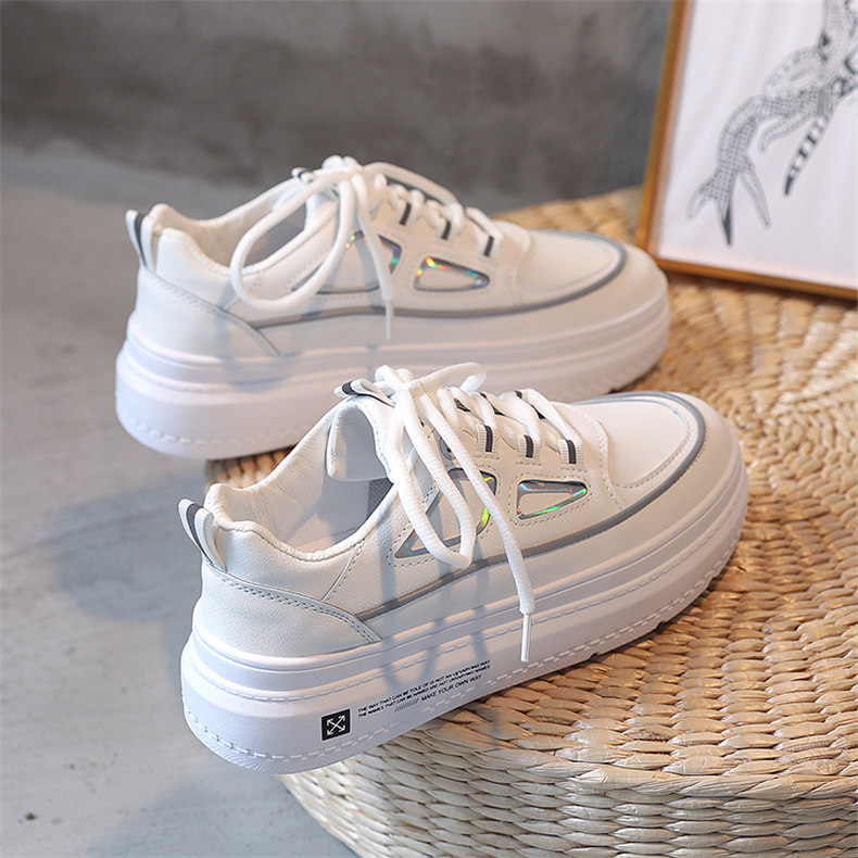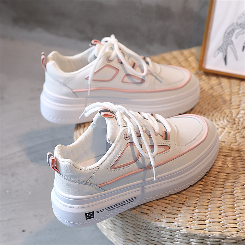 【正韓清爽厚底小白鞋餅乾鞋】【跟高5cm】【超纖皮面】設計師款韓版百搭厚底增高女鞋休閒運動鞋小白鞋